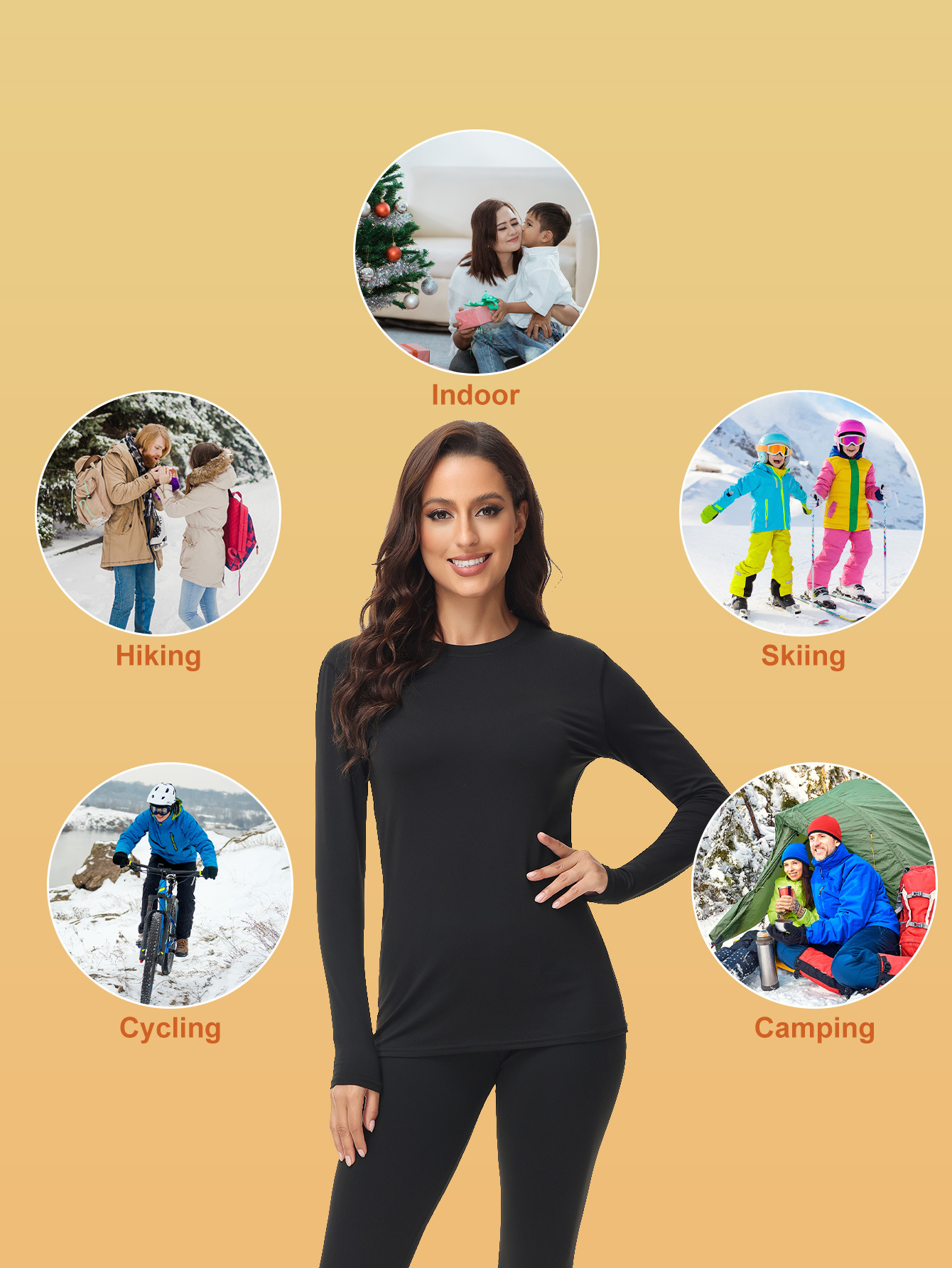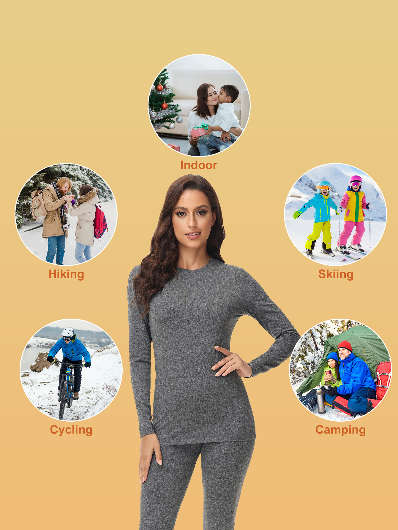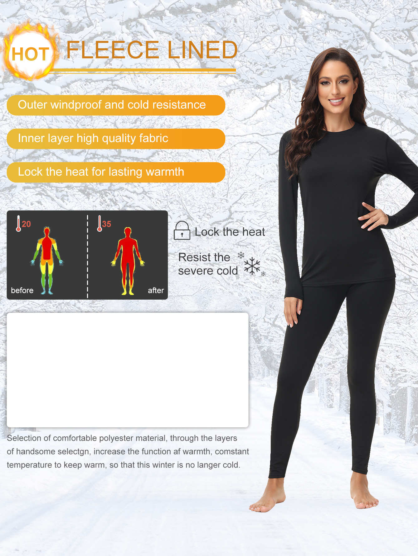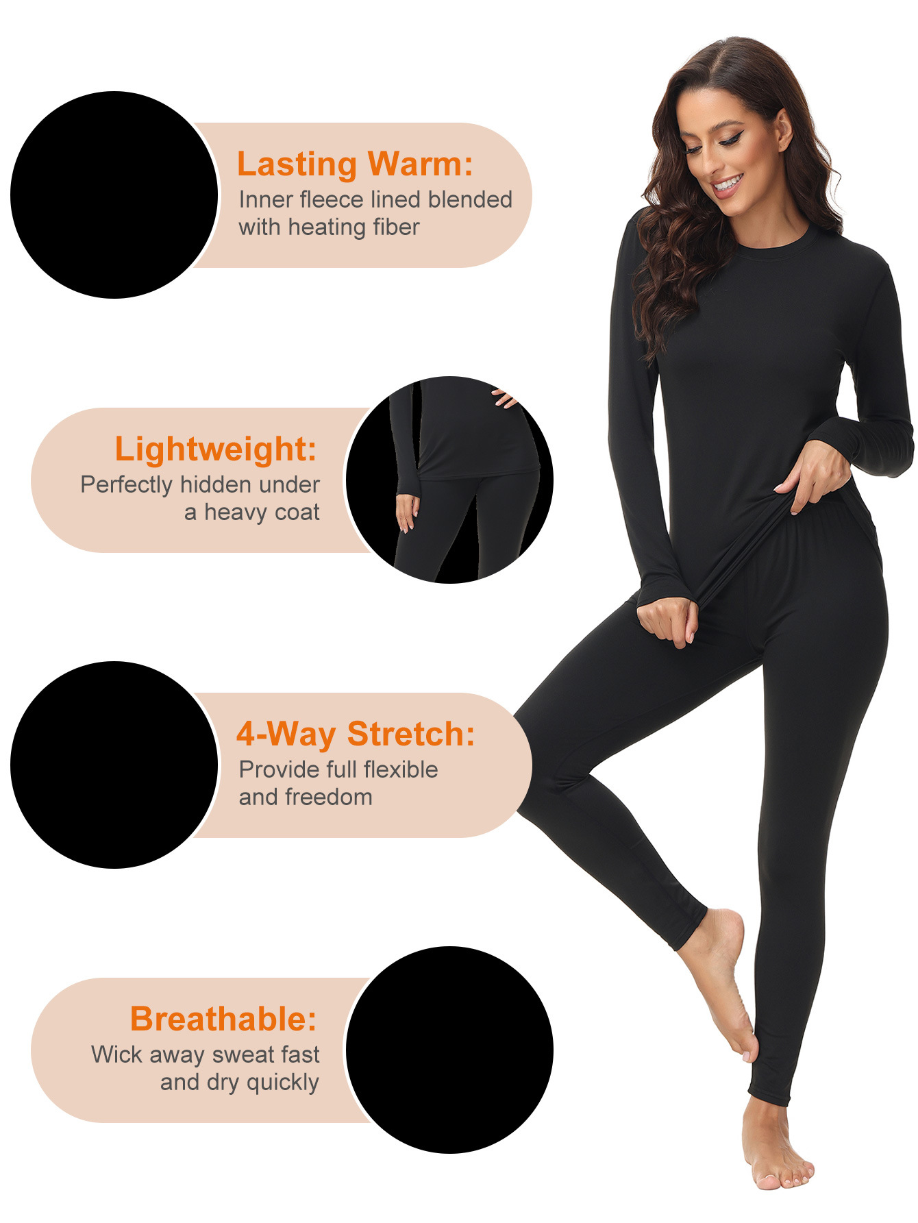 1201 크로스보더 라운드넥 여성용 보온 내의 세트 (가을/겨울용)