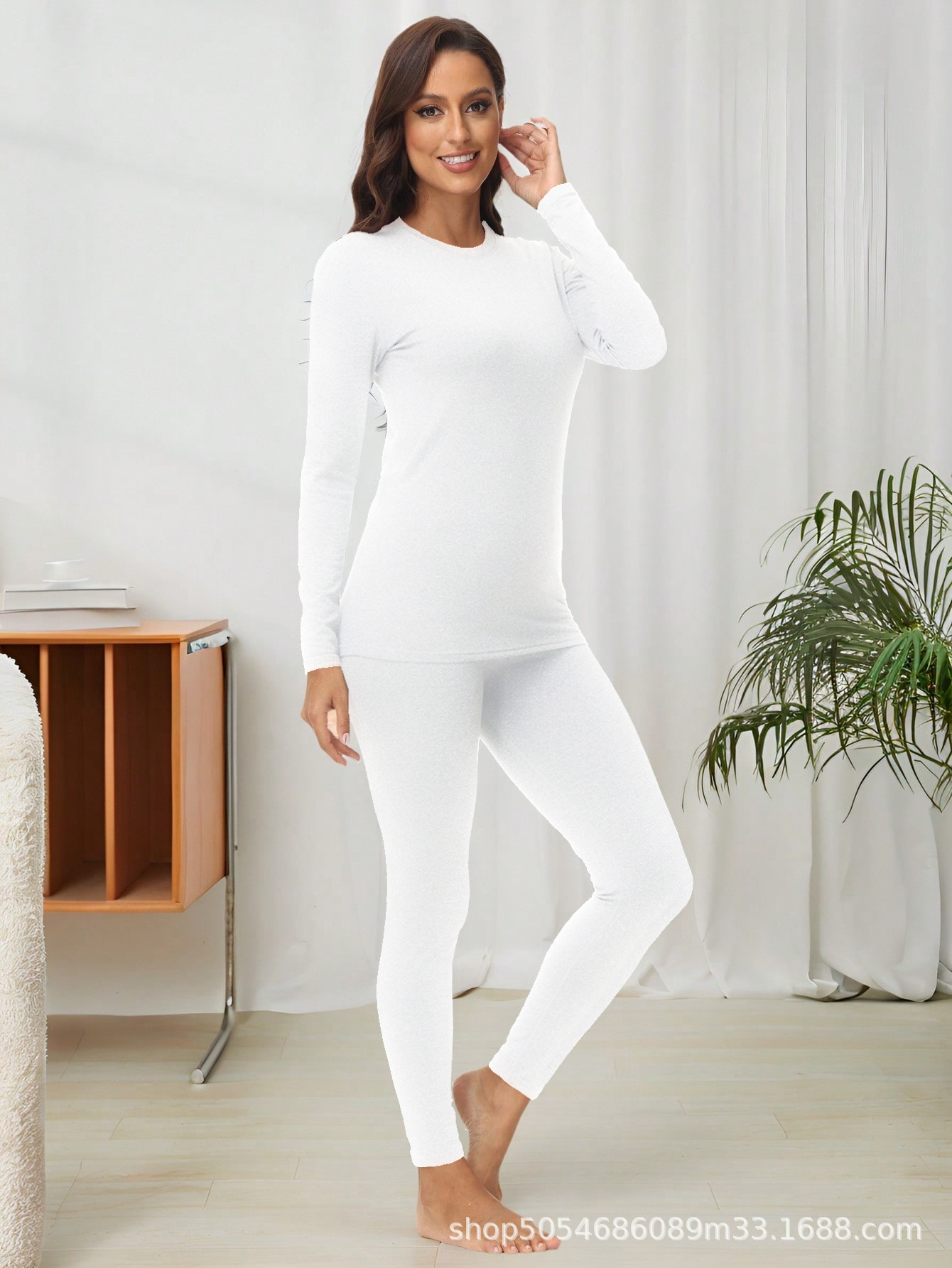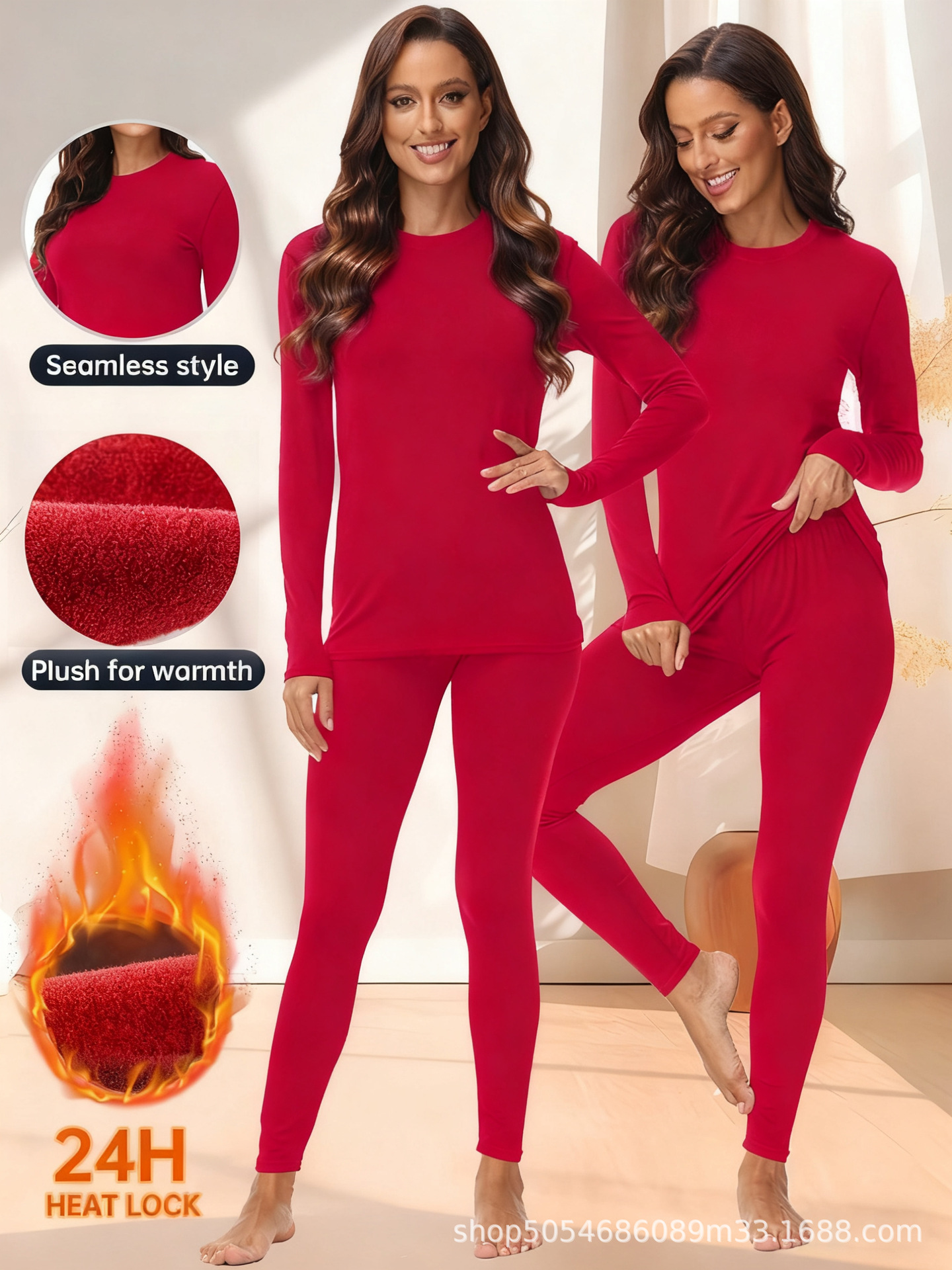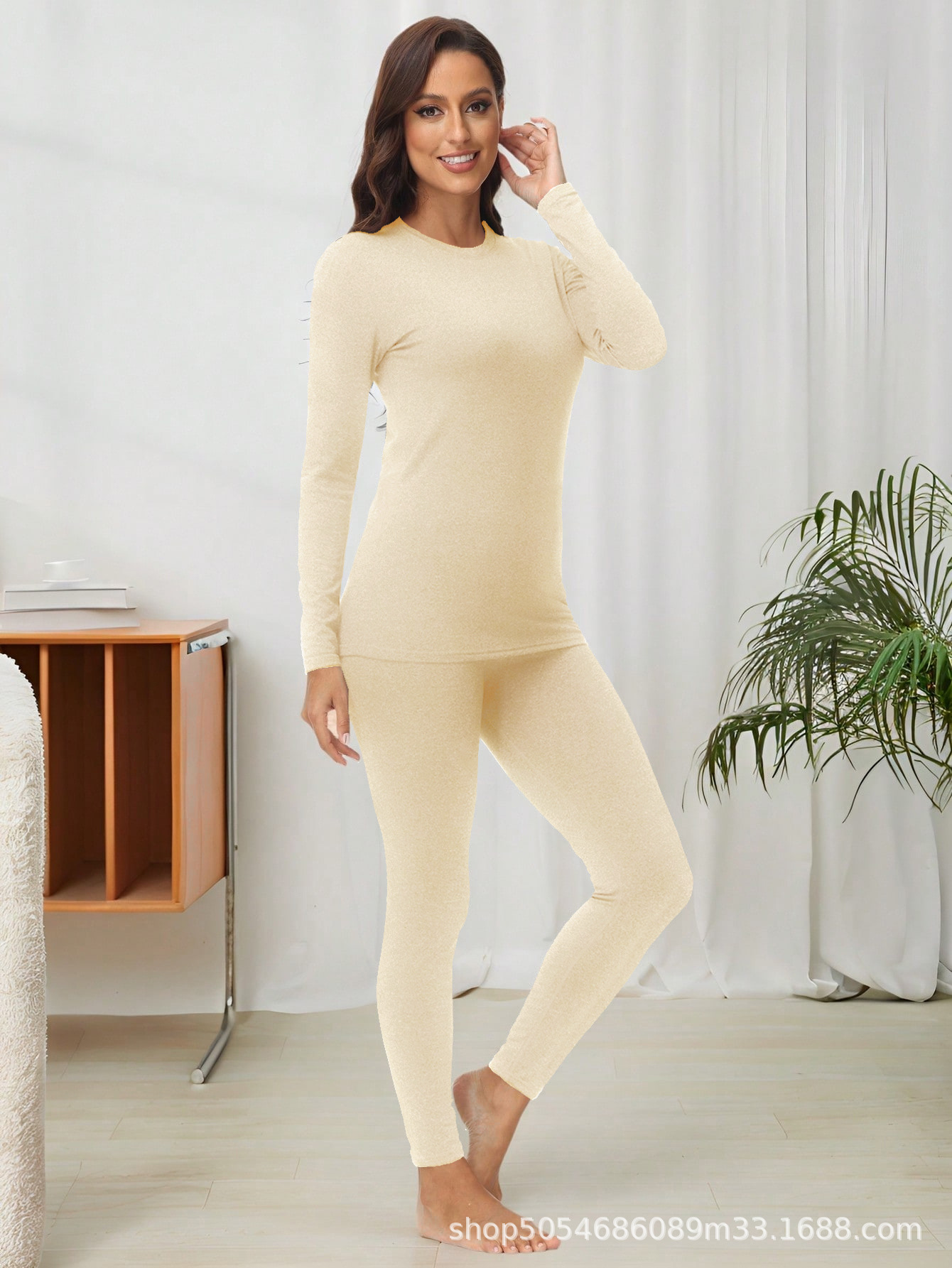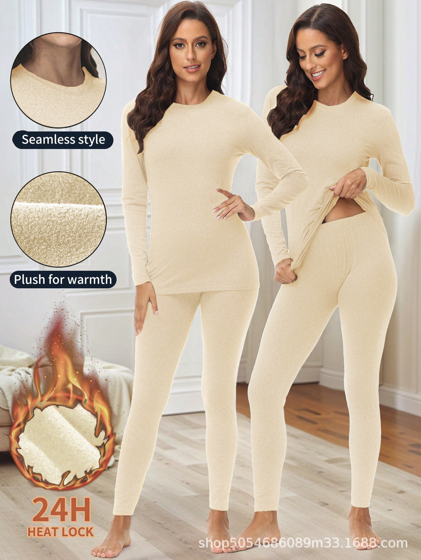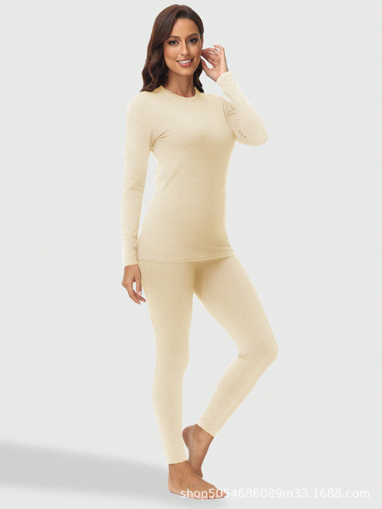 1201 크로스보더 라운드넥 여성용 보온 내의 세트 (가을/겨울용)스토어 가기