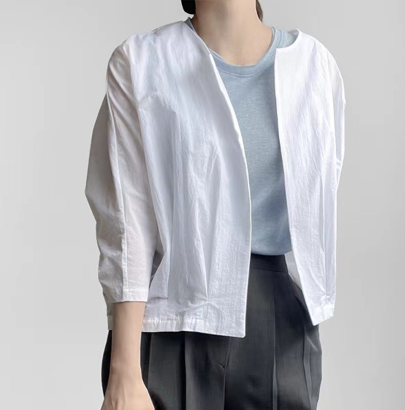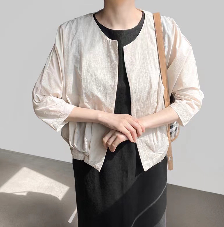 한국 시크2026 여름 신상 심플 솔리드 컬러 라운드넥 얇은 재킷 가디건 숏 7부 소매 여성용 아우터스토어 가기