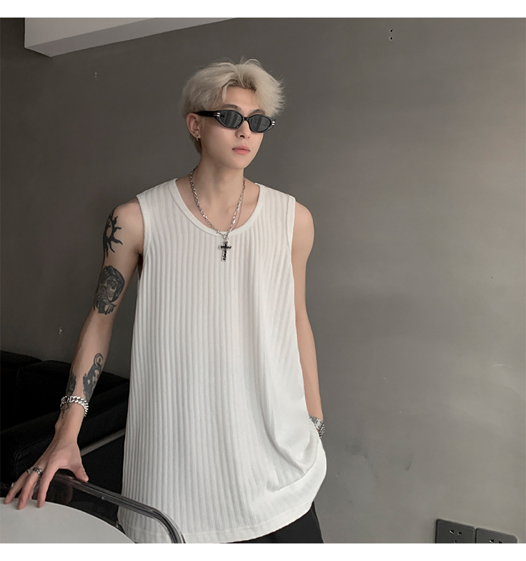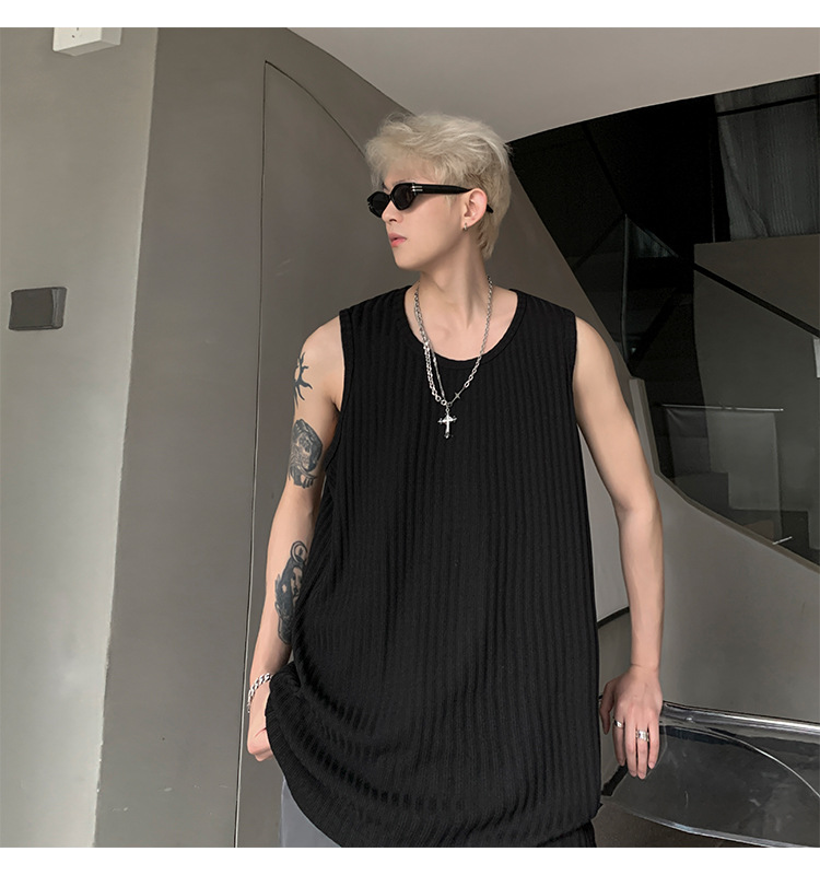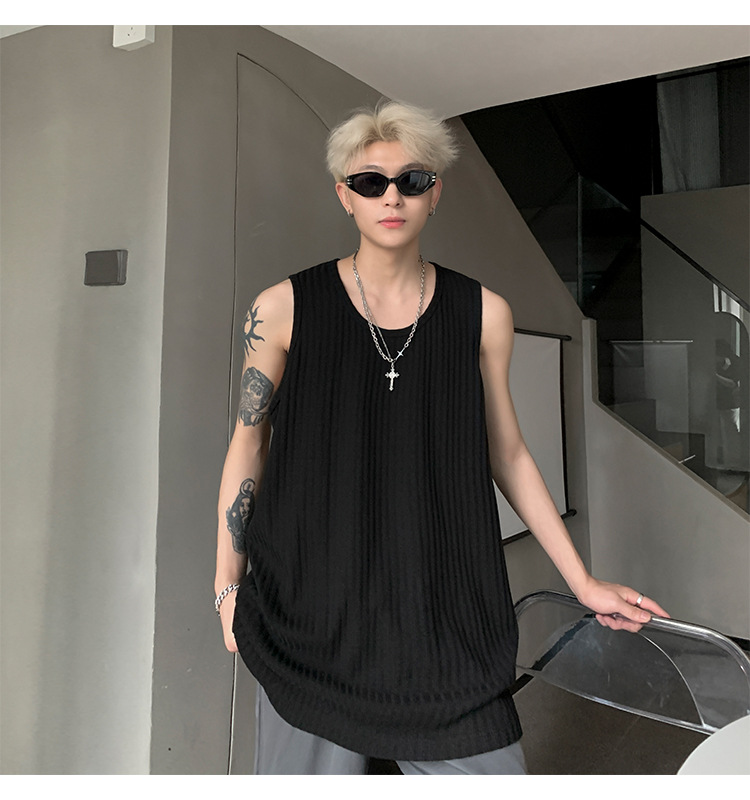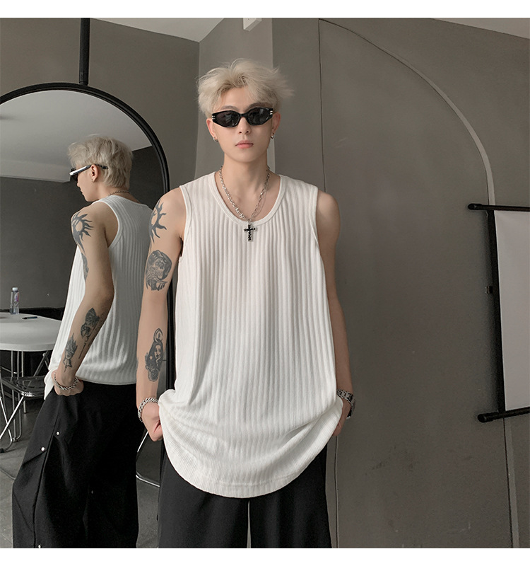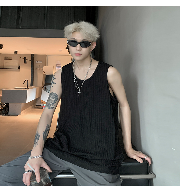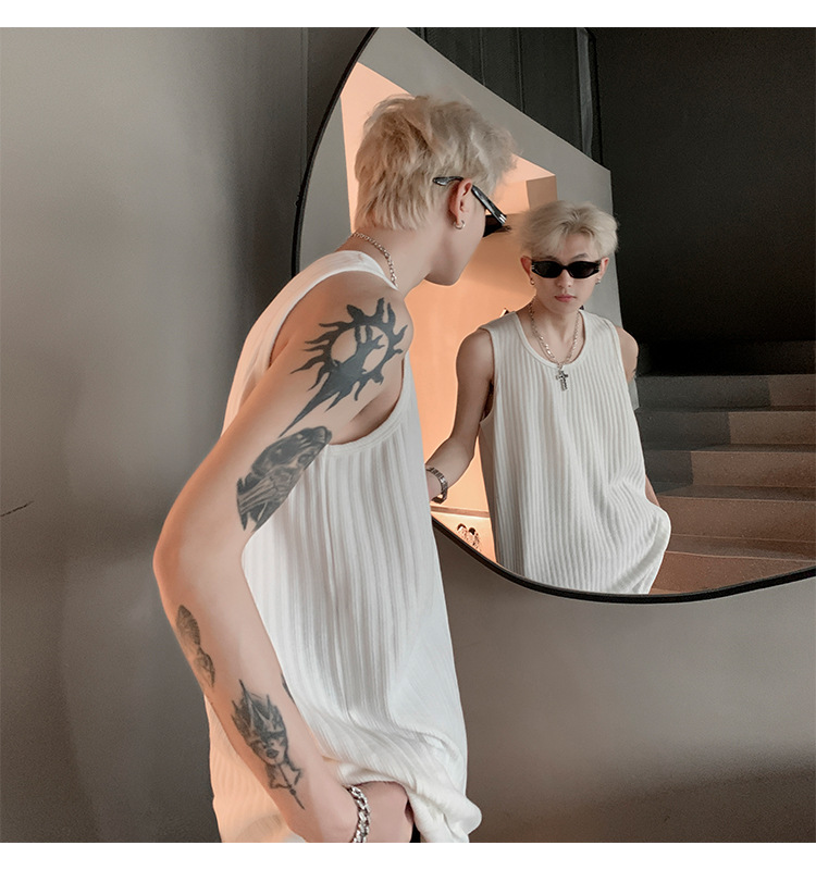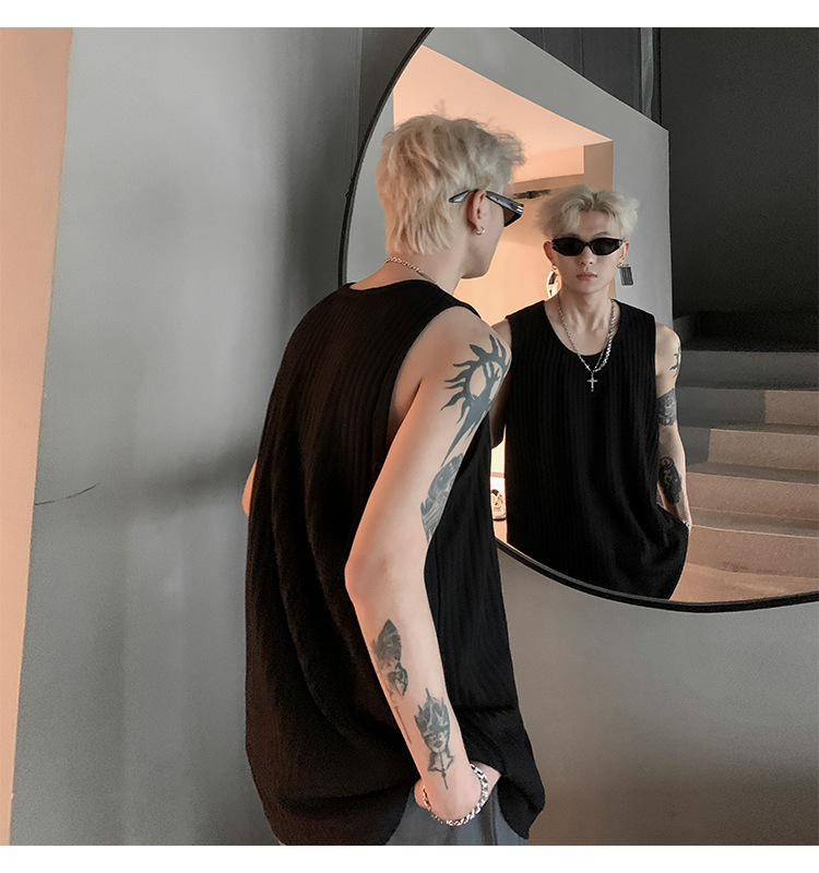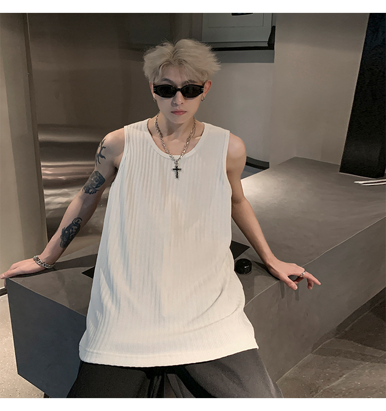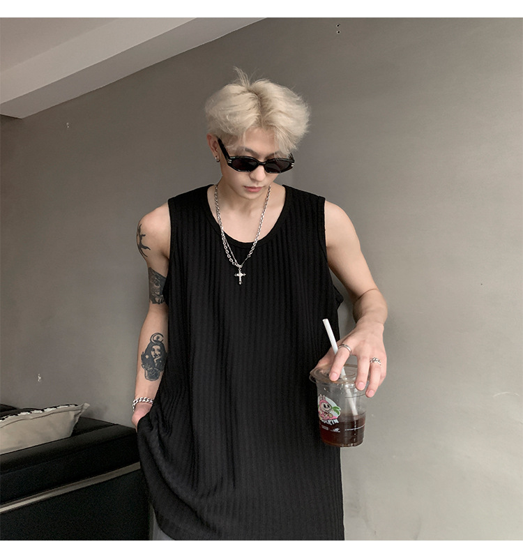 민소매 조끼 남성용 여름 트렌디 브랜드 웨이스트 코트 하이 스트리트 커플 인 스웨트 셔츠 캐주얼 올 매치 트렌디 반팔 티셔츠