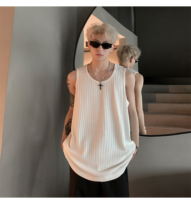 민소매 조끼 남성용 여름 트렌디 브랜드 웨이스트 코트 하이 스트리트 커플 인 스웨트 셔츠 캐주얼 올 매치 트렌디 반팔 티셔츠스토어 가기