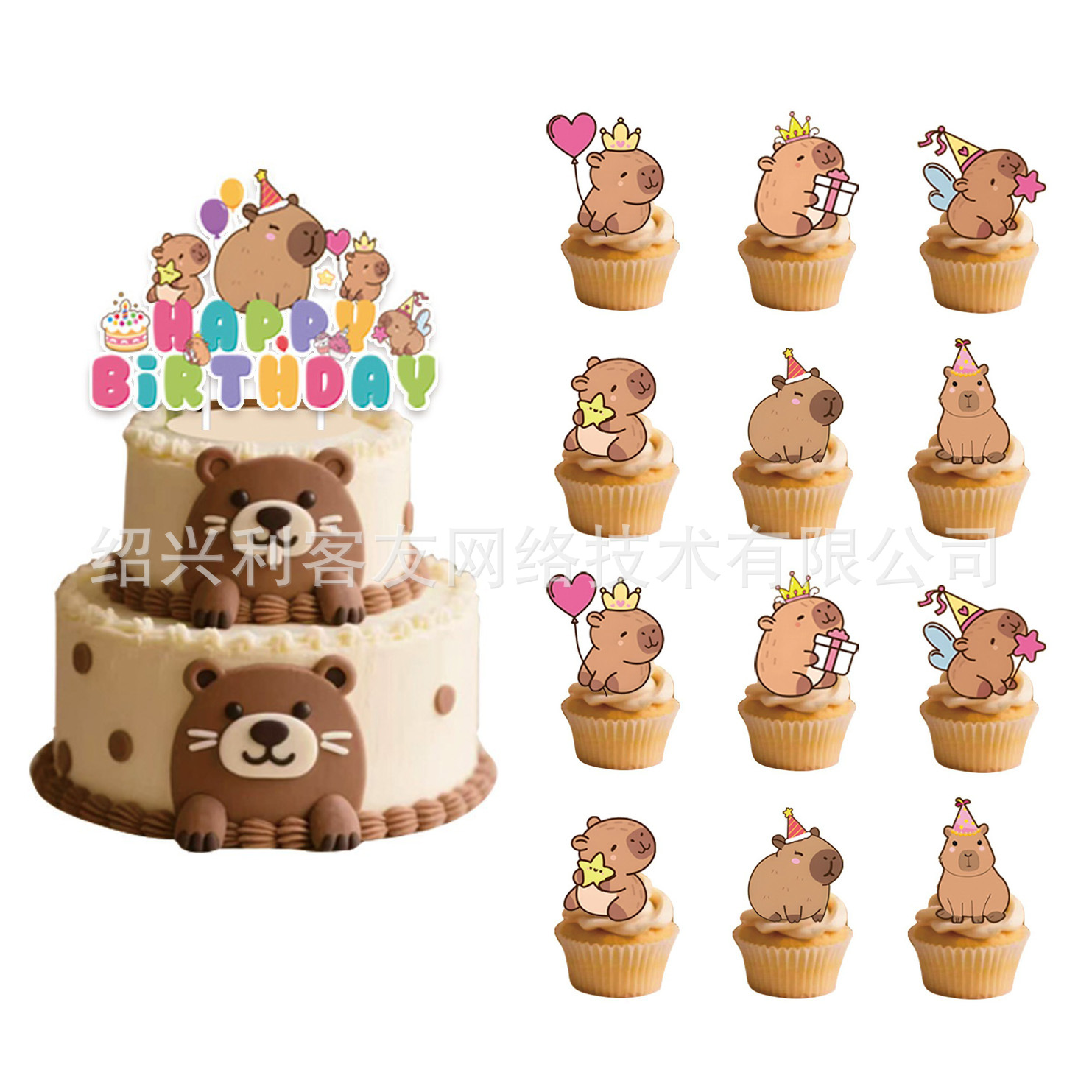 다크 브라운 카비발라 생일 장식 풍선 만화 동물 물 기니 돼지 파티 풀 플래그 배너 종이 트레이
