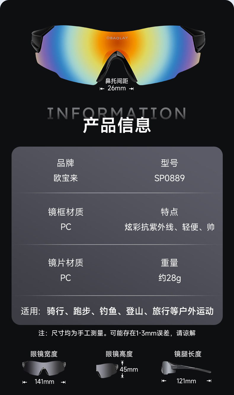 OBAOLAY 마라톤 러닝 안경 전문 야외 방풍 고글 남성 하이킹 및 등산 여성 승마 안경스토어 가기