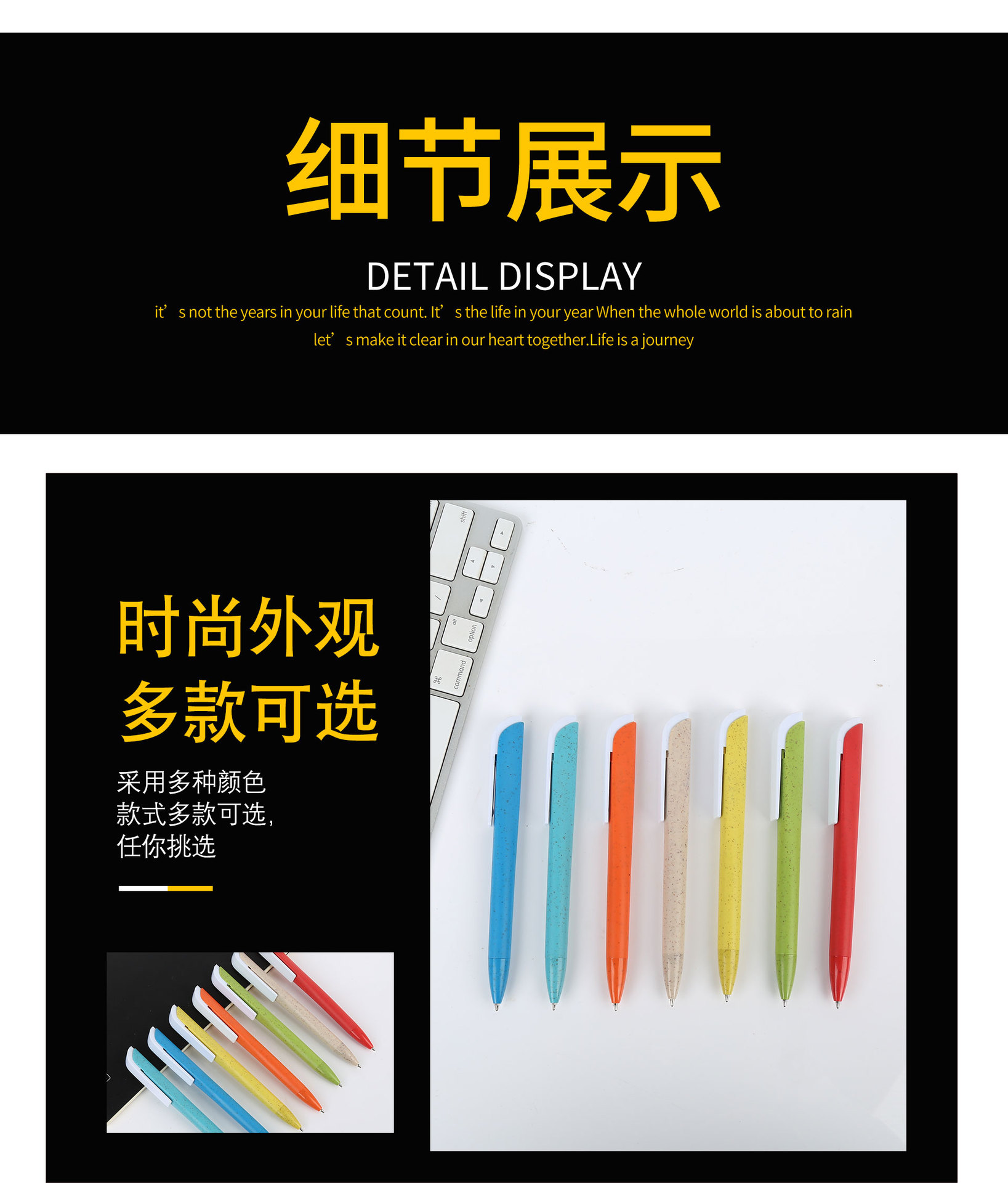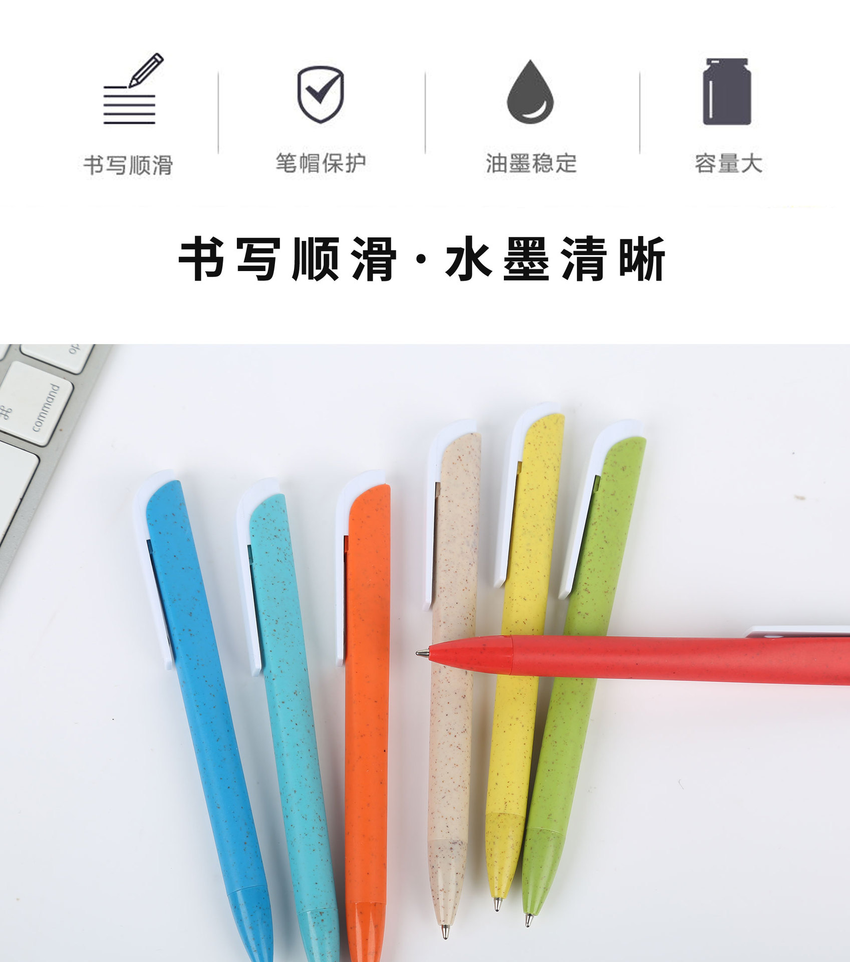 밀 밀짚 볼펜 창조적 인 삼각형 파괴 가능한 환경 보호 밀 밀짚 광고 펜 인쇄 가능한 로고 볼펜스토어 가기