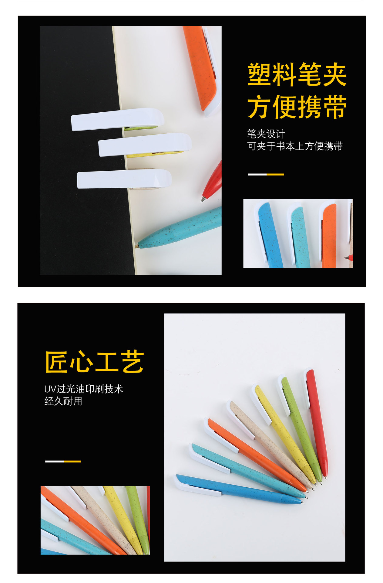 밀 밀짚 볼펜 창조적 인 삼각형 파괴 가능한 환경 보호 밀 밀짚 광고 펜 인쇄 가능한 로고 볼펜