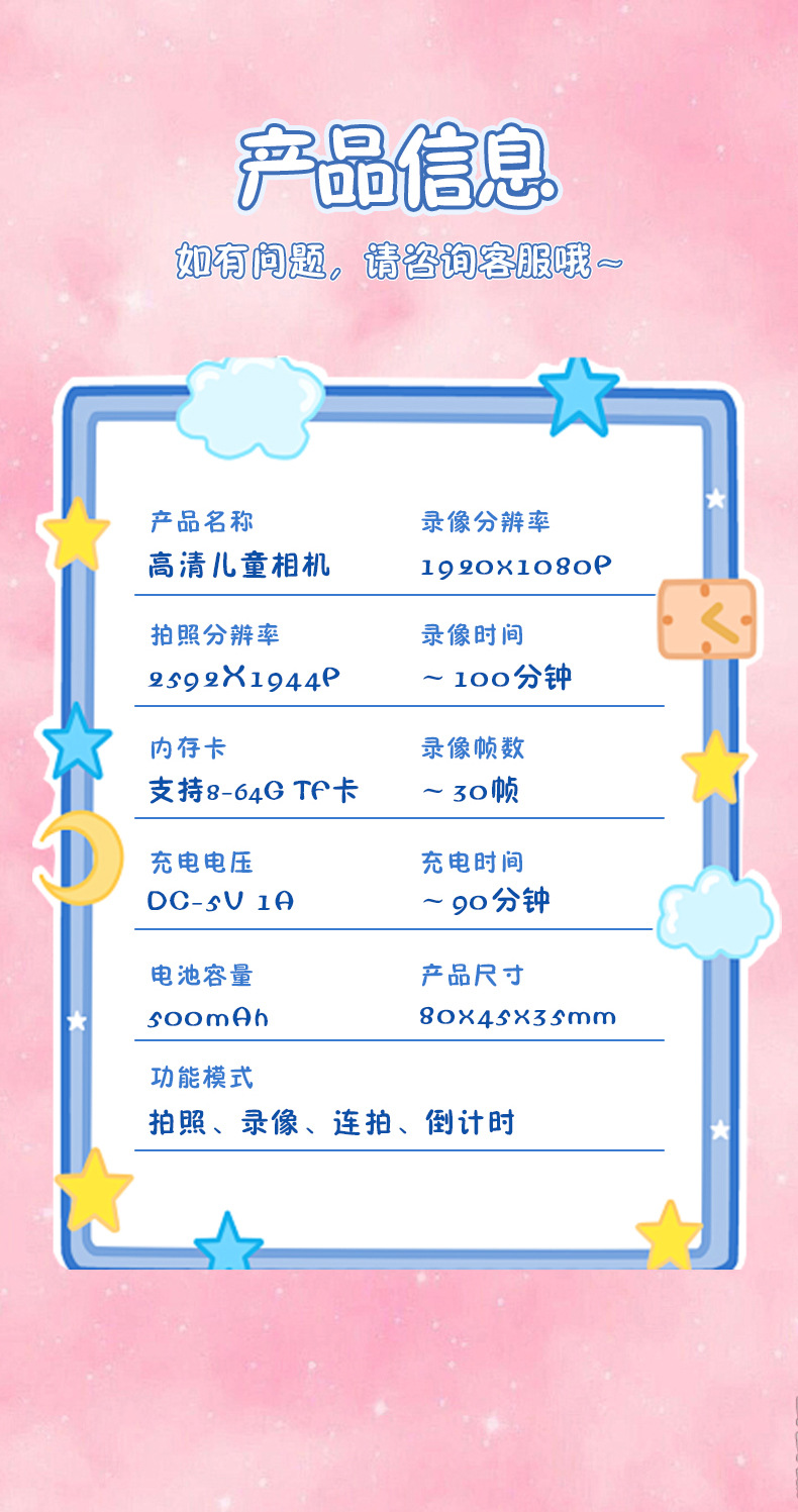 어린이 카메라 HD 카메라 사진 디지털 장난감 학생 선물 캠퍼스 만화 미니 카메라