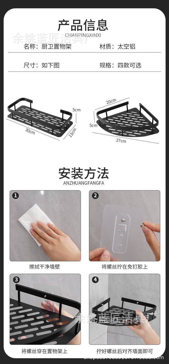펀치없는 화장실 욕실 보관 랙 플라스틱 새로운 삼각대 다기능 바닥 보관 랙