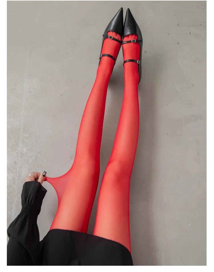 레드 원피스 스타킹 매트 벨벳 봄, 가을, 겨울 동물의 해 레깅스 겉옷 타이트 쉐이핑 레깅스스토어 가기