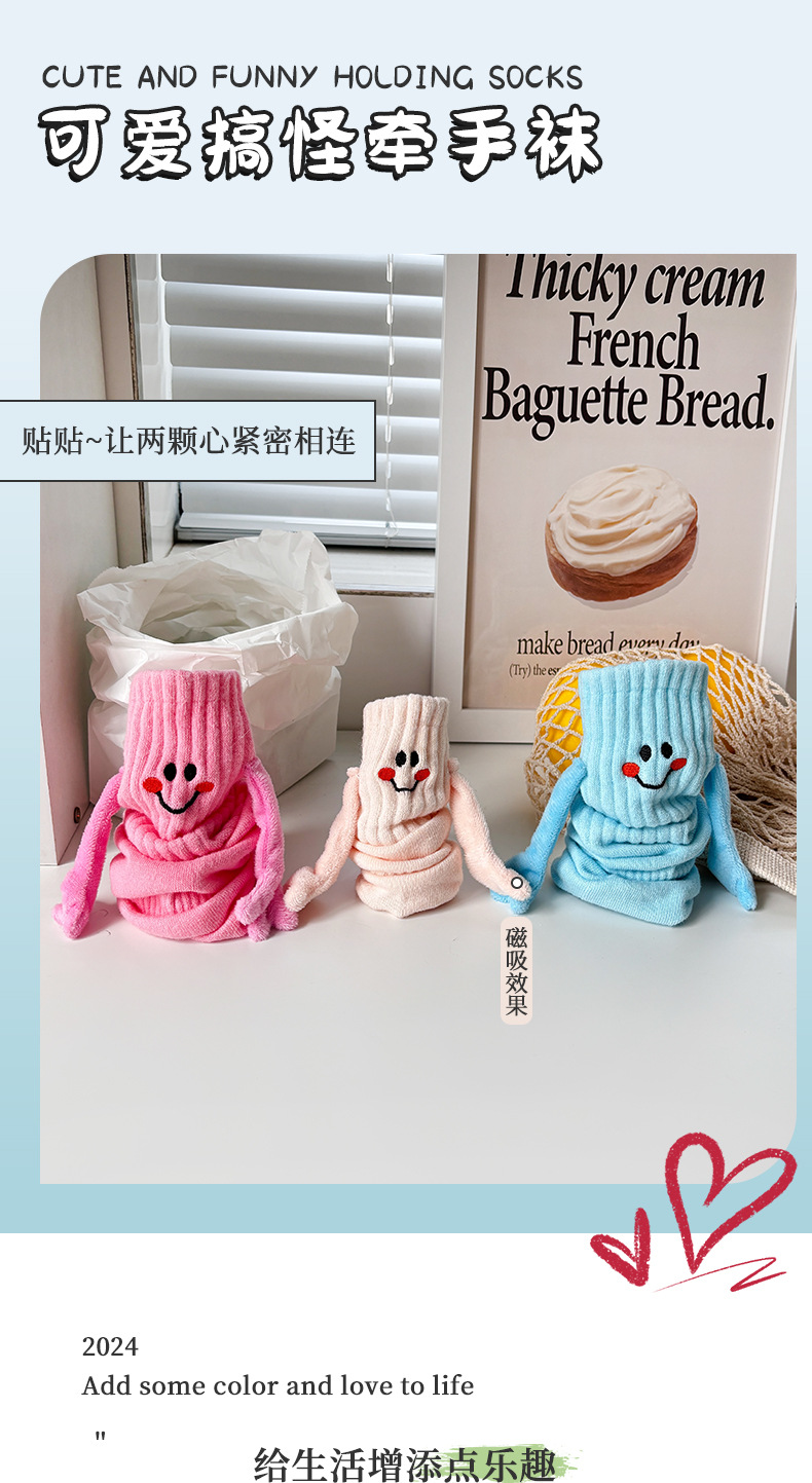 손 양말 자기 흡입 아기 양말 남성과 여성을위한 귀여운 웃긴 웃는 얼굴 색상 인터넷 빨간 손 양말스토어 가기