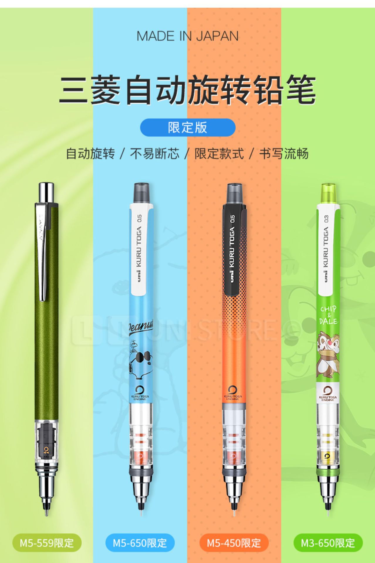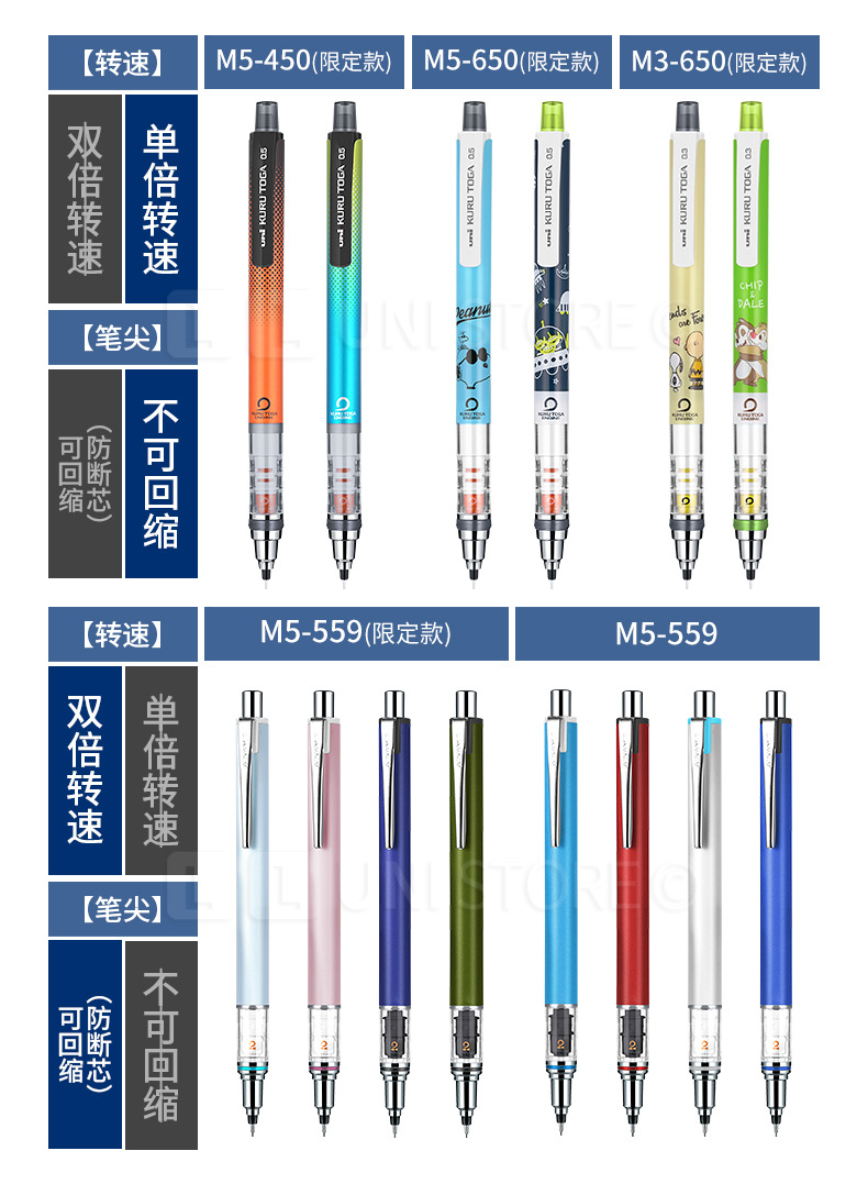 일본 UNI 미쓰비시 559 자동 연필 자동 회전 학생들은 연속 리드 쓰기 (대량 연락처 고객 서비스)스토어 가기