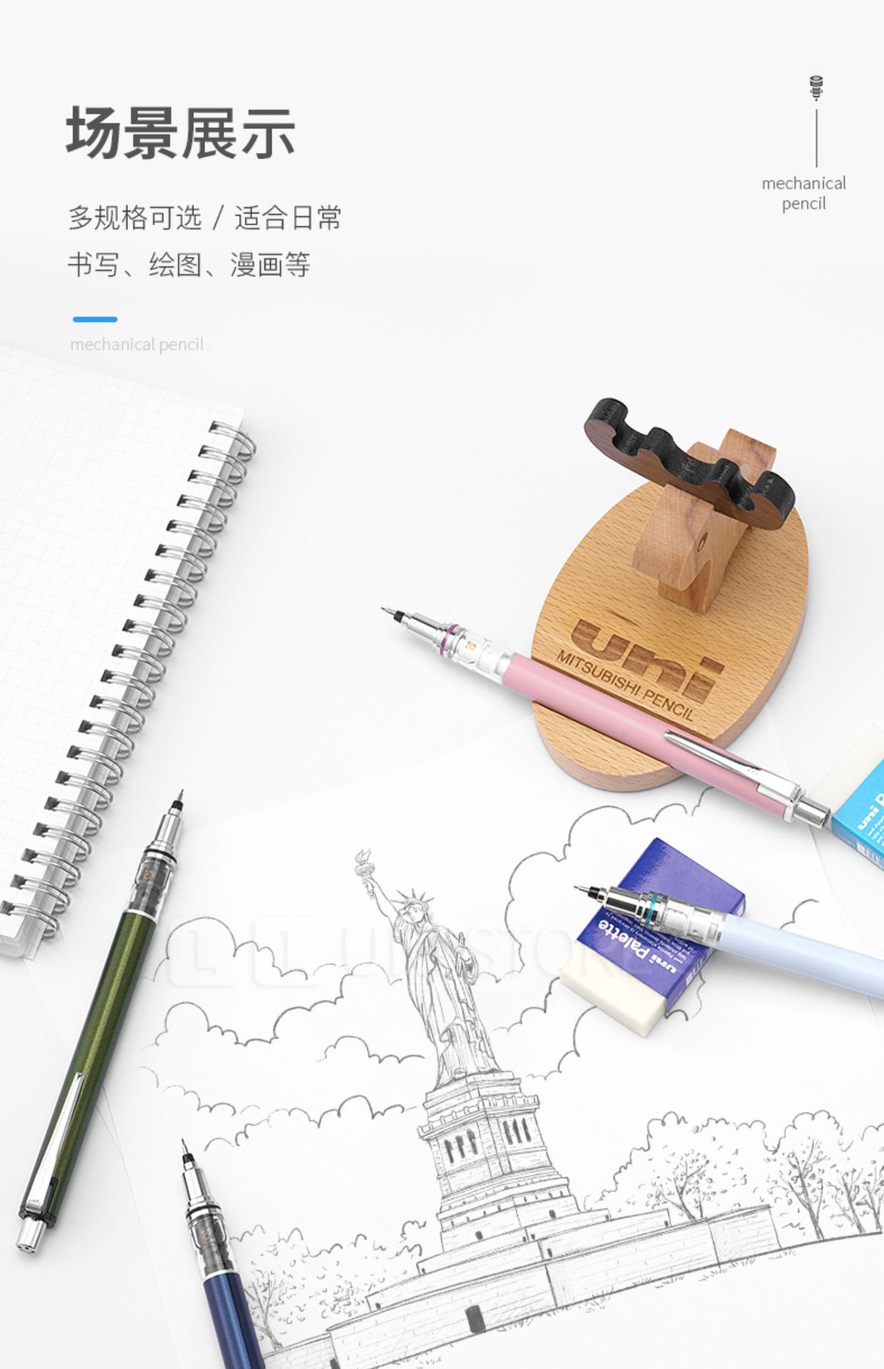 일본 UNI 미쓰비시 559 자동 연필 자동 회전 학생들은 연속 리드 쓰기 (대량 연락처 고객 서비스)