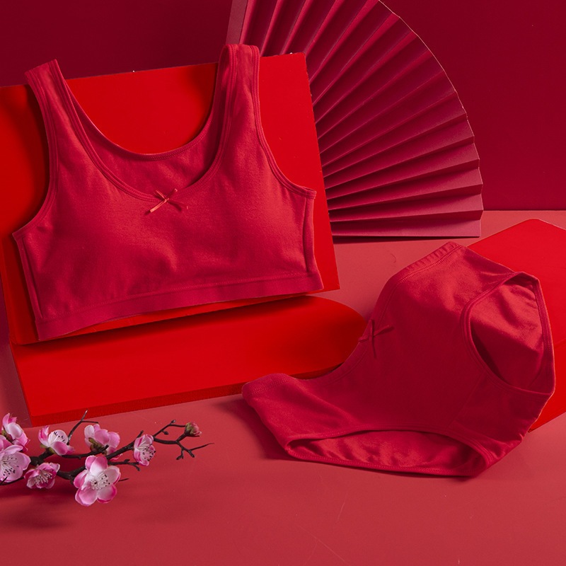 어린 소녀의 속옷 빅 레드 세트 12 세 13 세 어린이 브라 발달 소녀 면 조끼스토어 가기