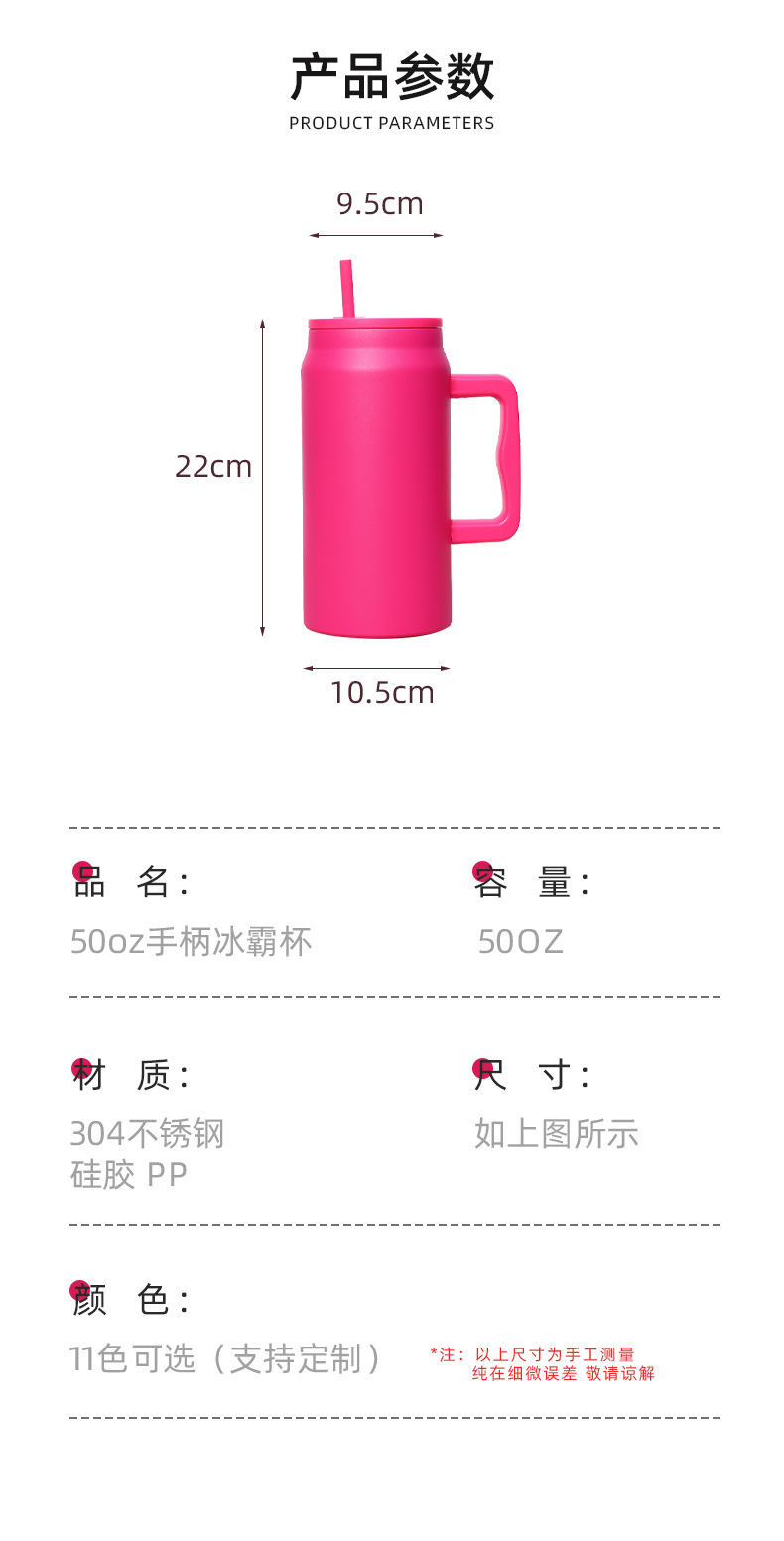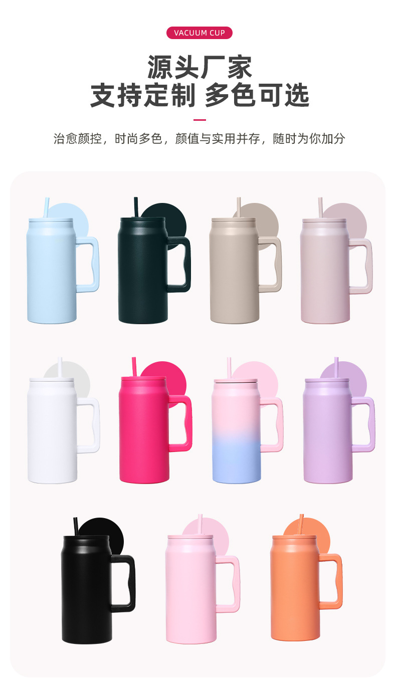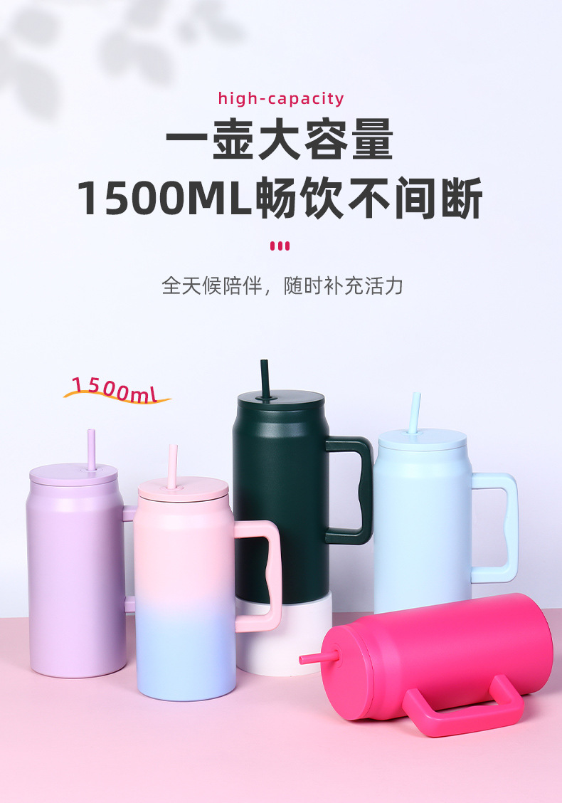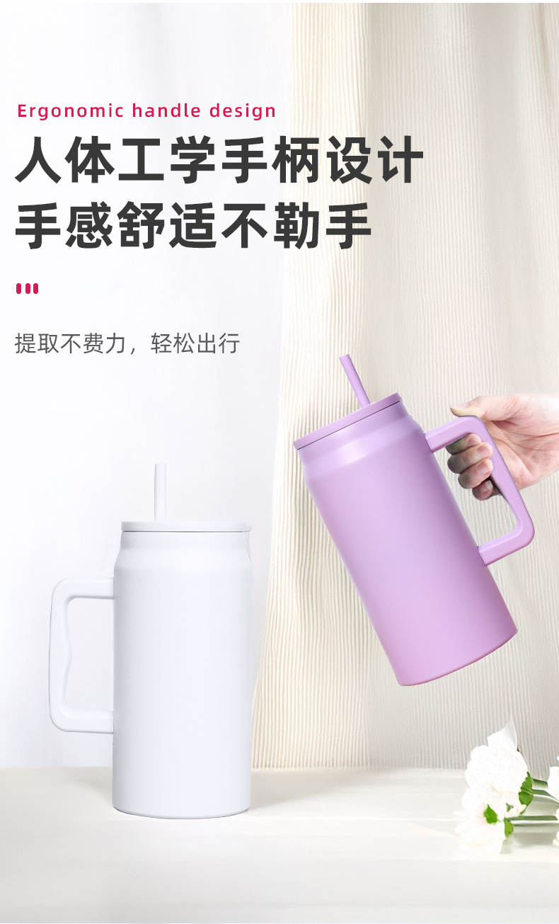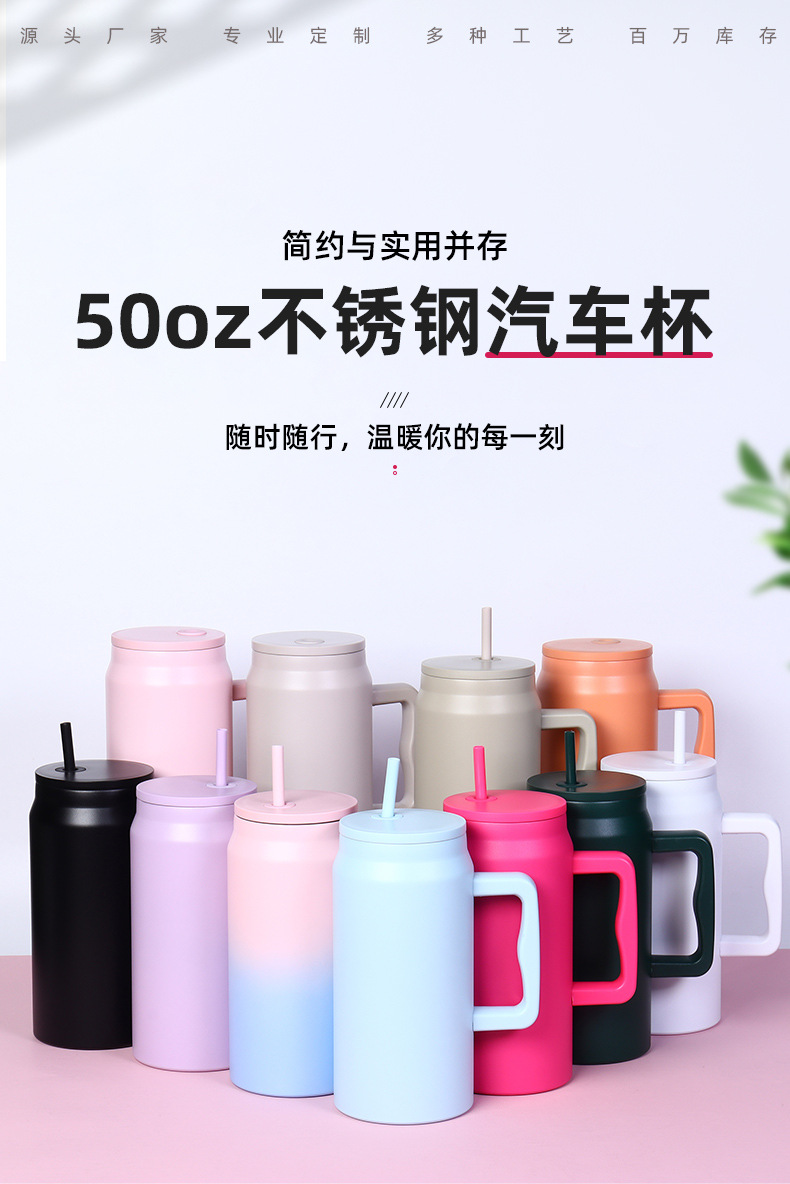 재고 50oz 스테인레스 스틸 자동차 컵 더블 레이어 진공 핸들 보온병 컵 휴대용 빅 맥 아이스 컵