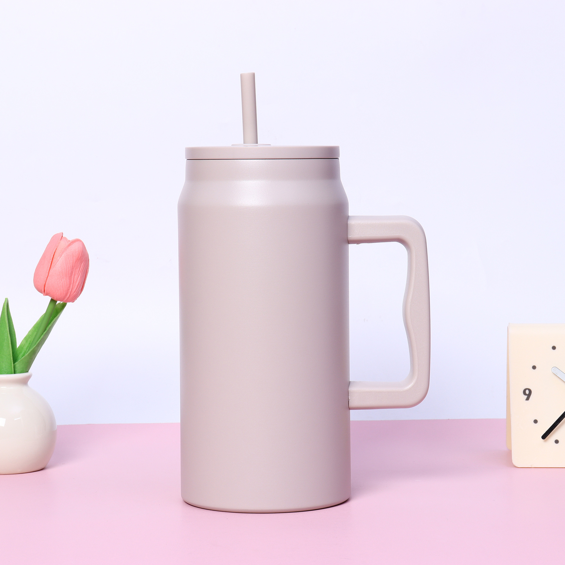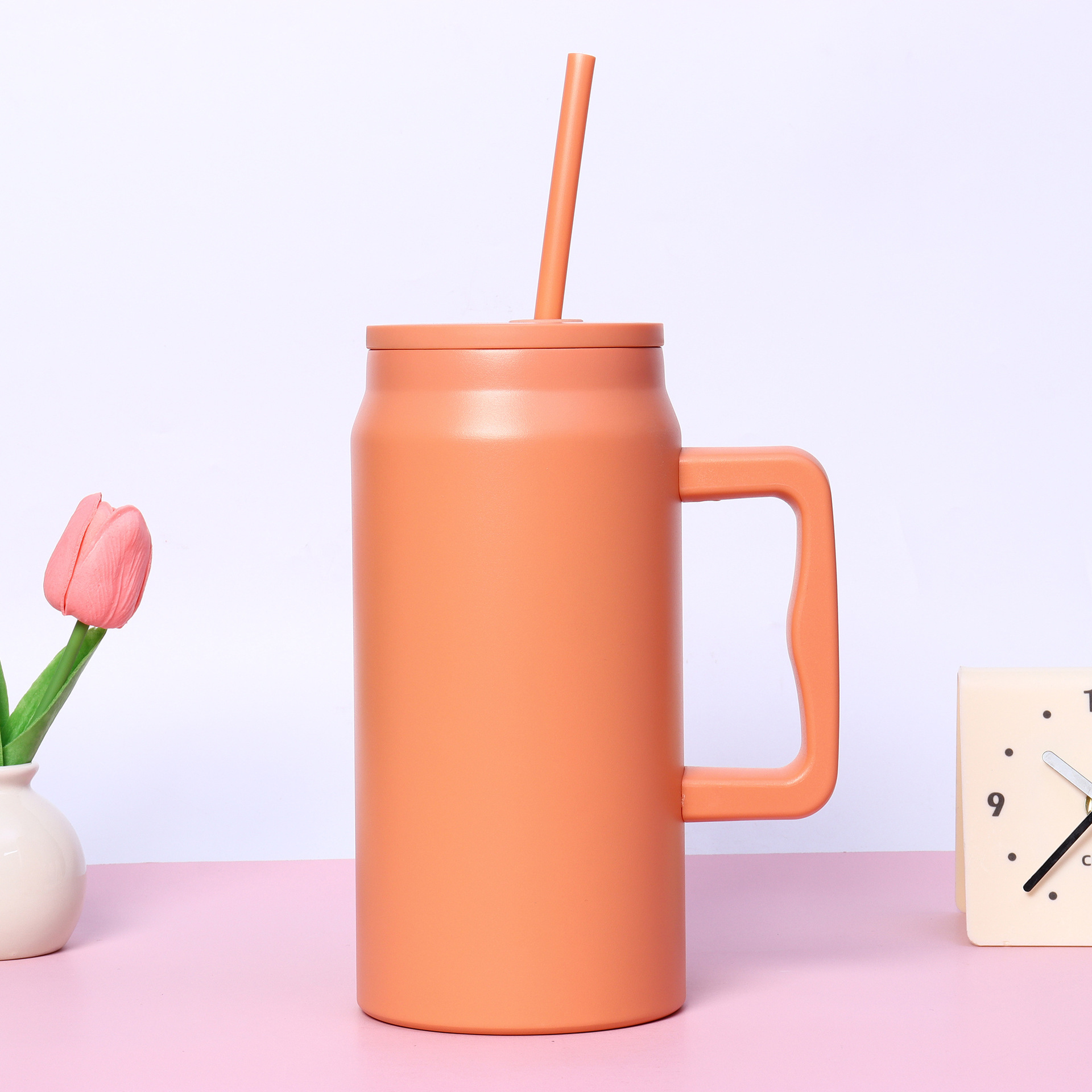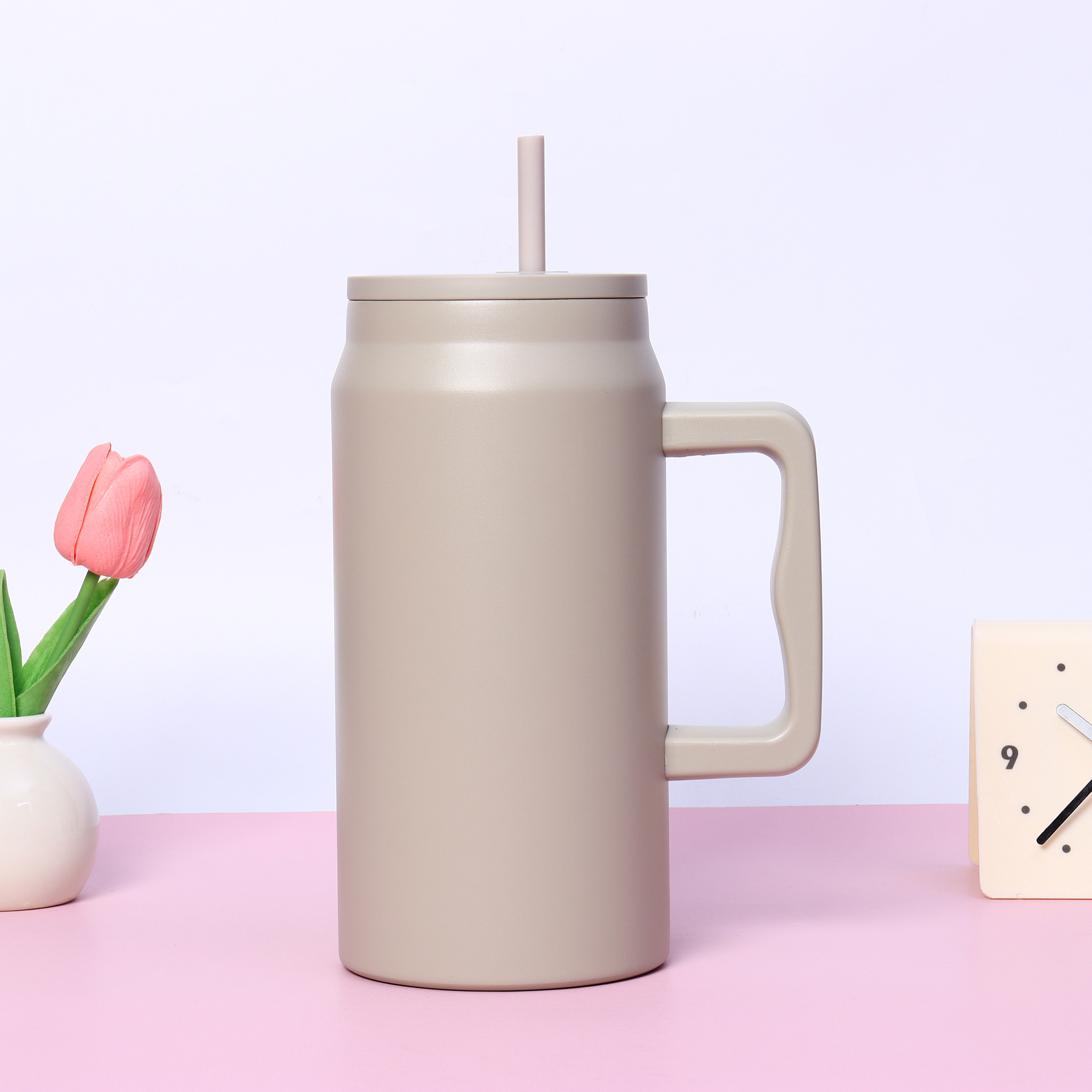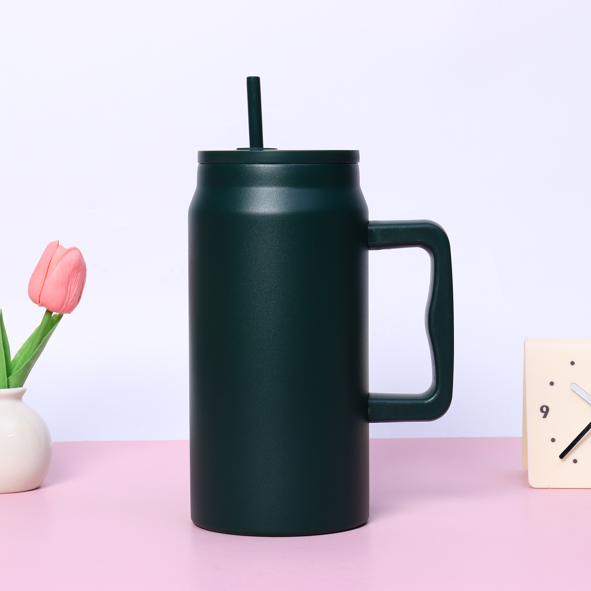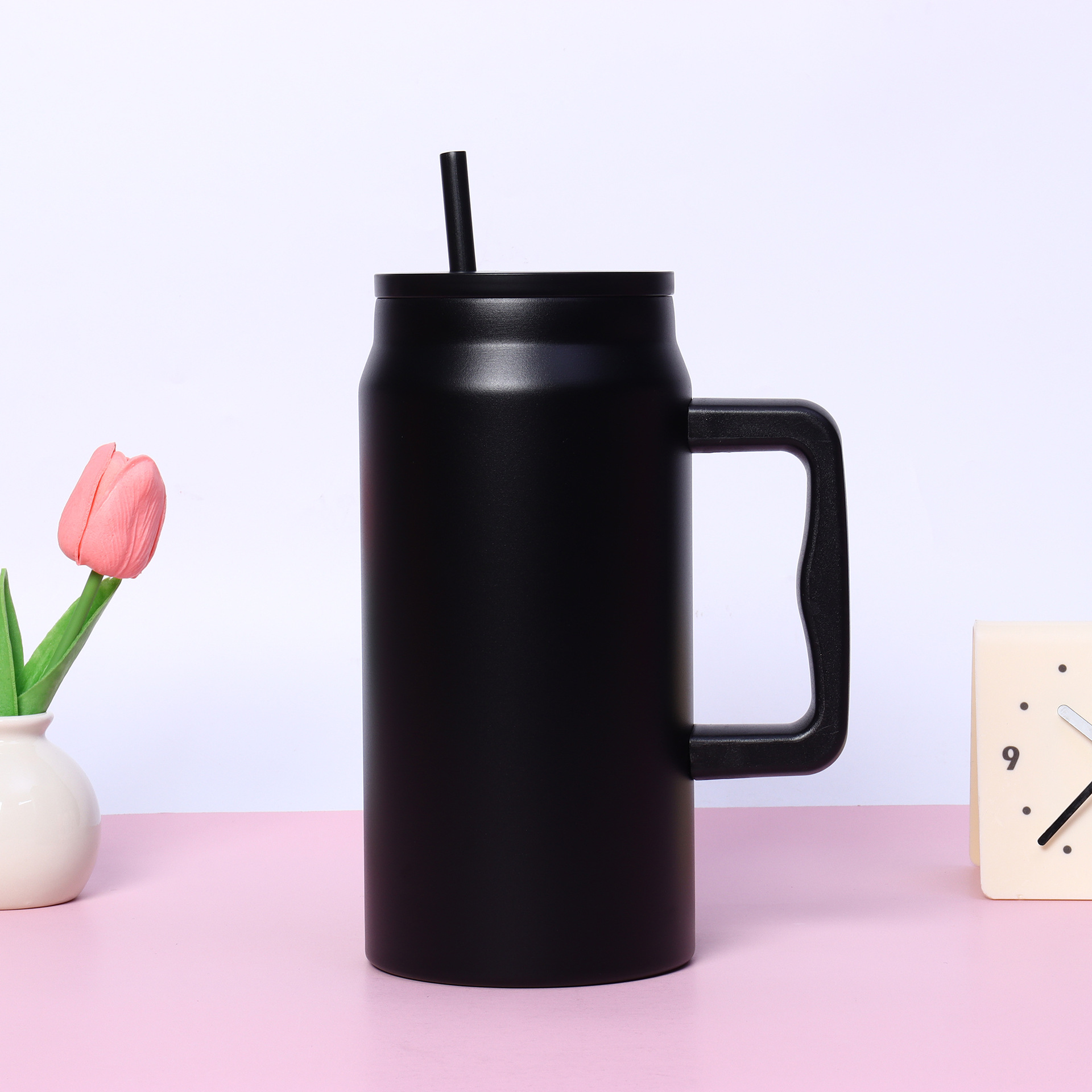 재고 50oz 스테인레스 스틸 자동차 컵 더블 레이어 진공 핸들 보온병 컵 휴대용 빅 맥 아이스 컵