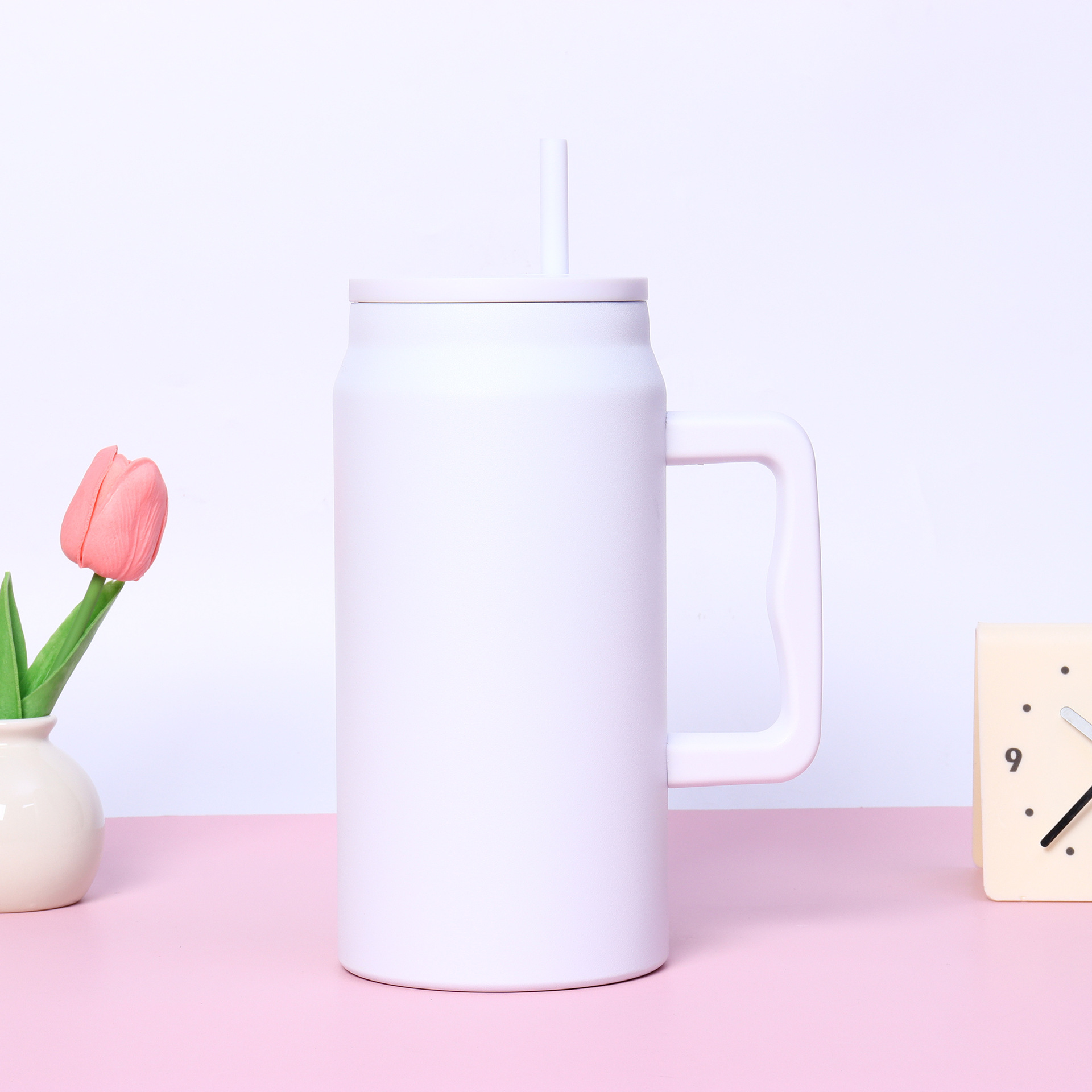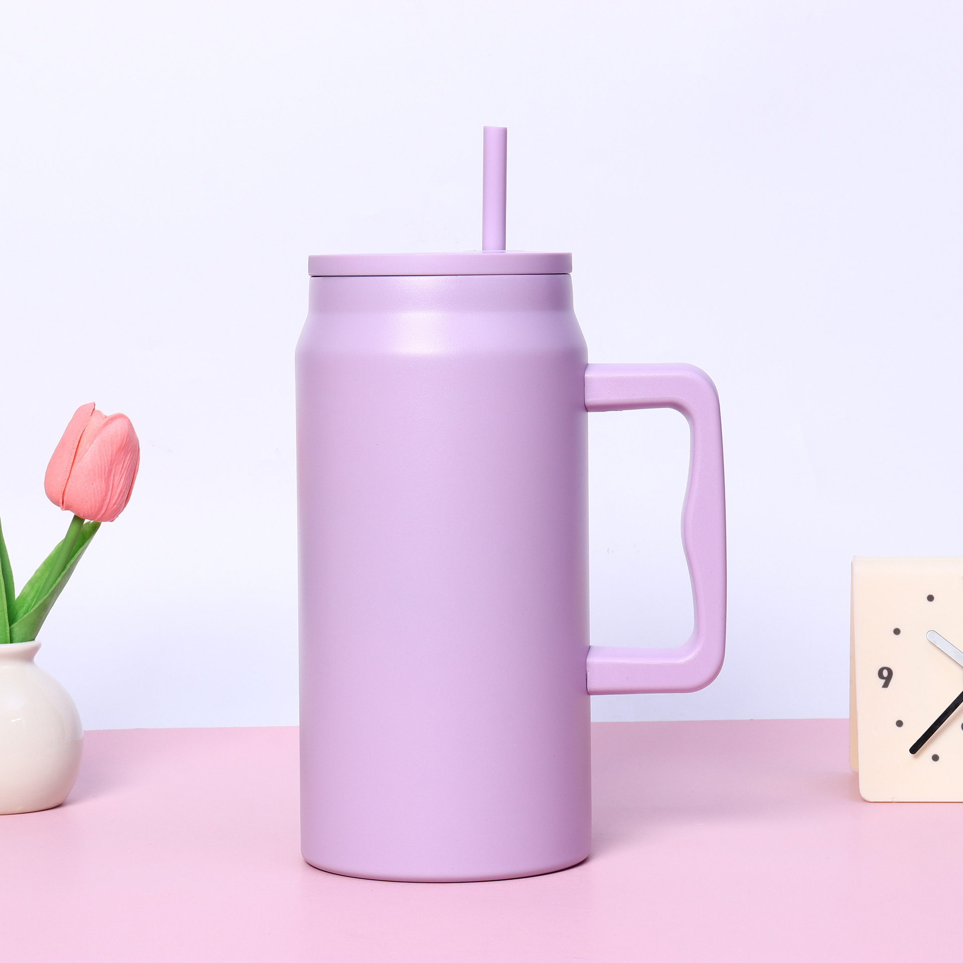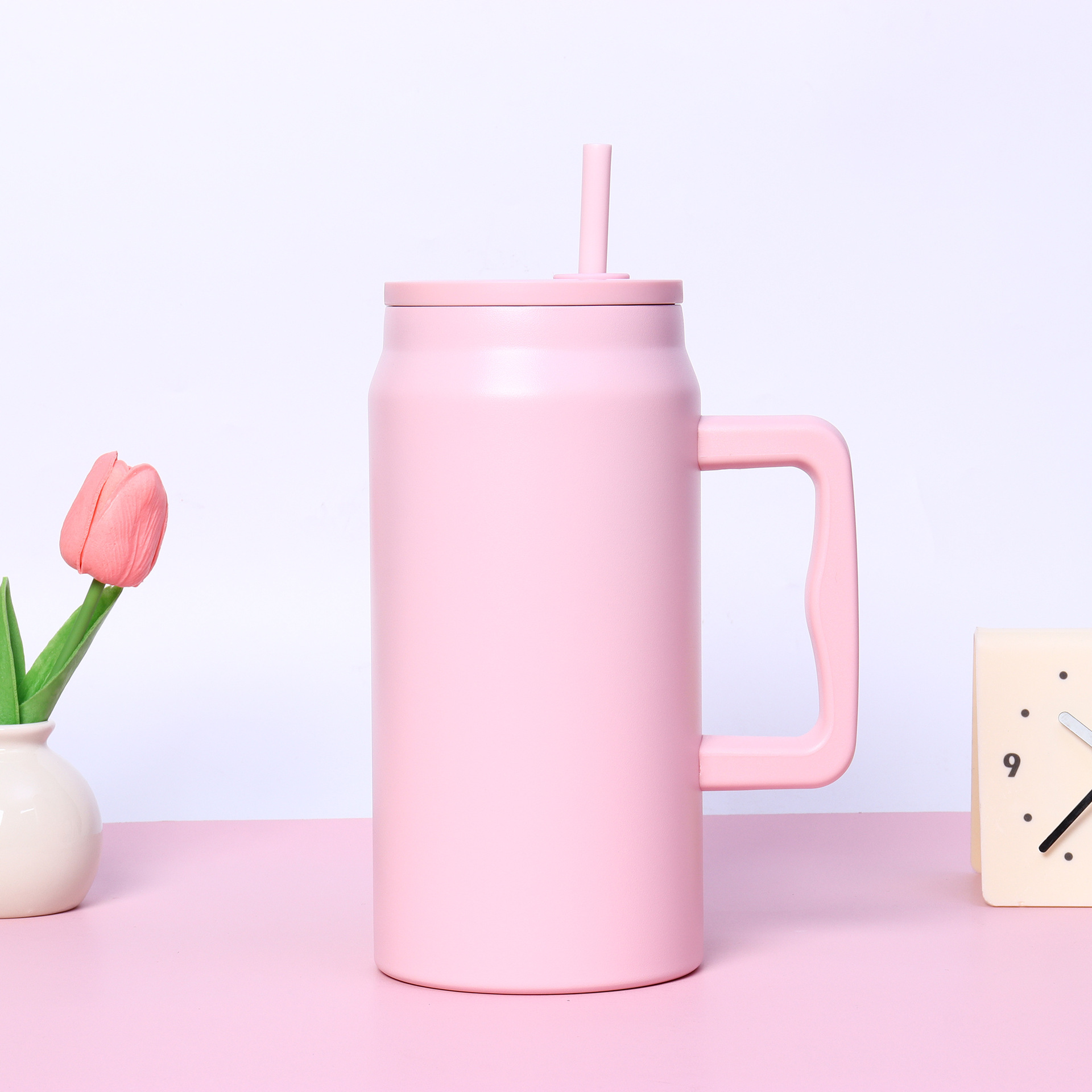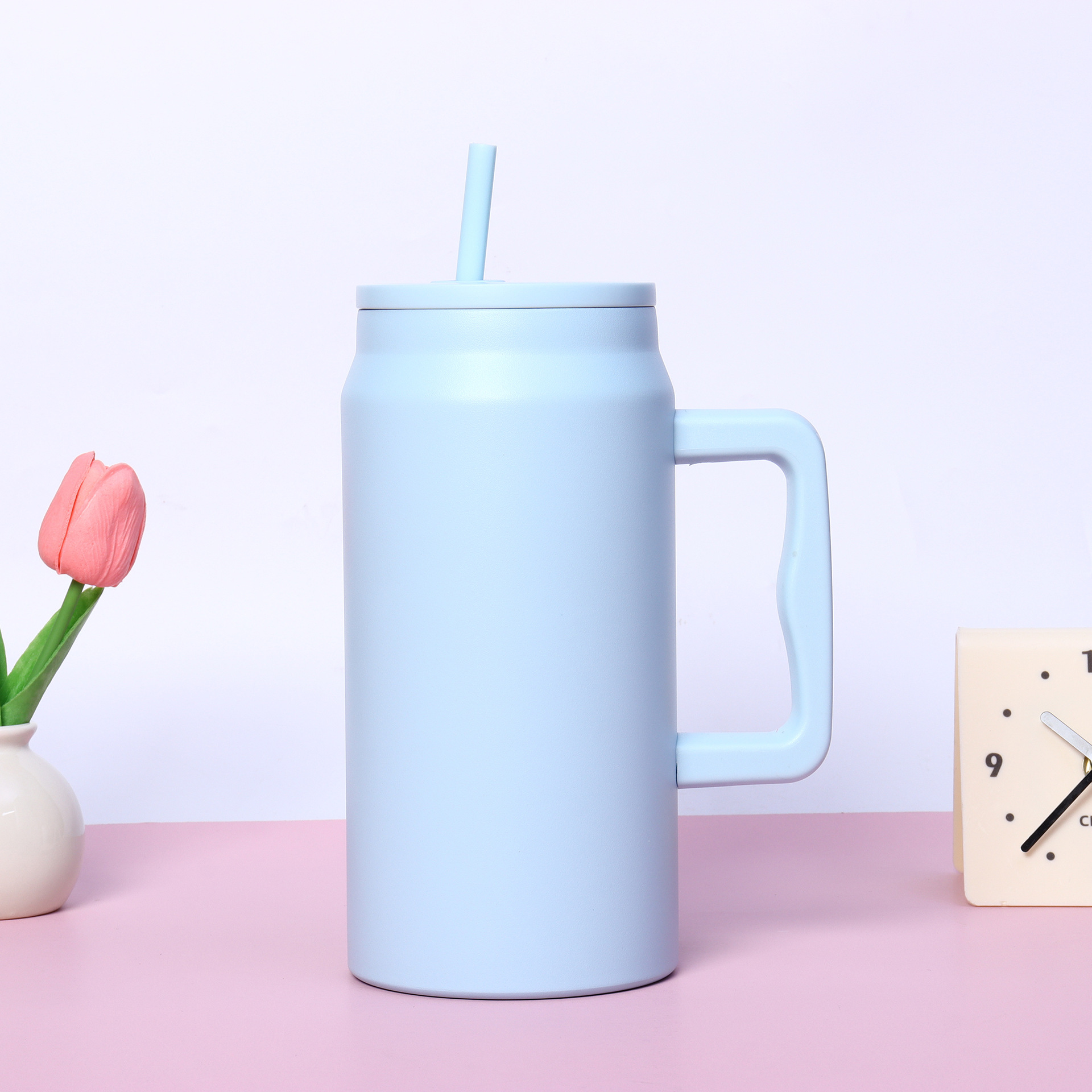 재고 50oz 스테인레스 스틸 자동차 컵 더블 레이어 진공 핸들 보온병 컵 휴대용 빅 맥 아이스 컵