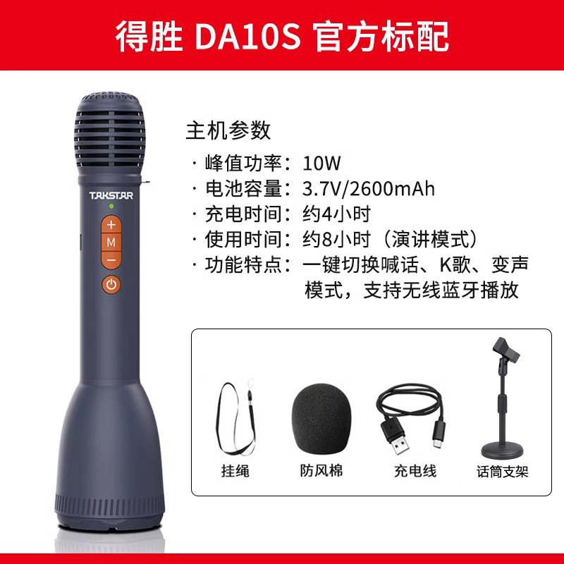 승리 DA10s 무선 블루투스 휴대용 마이크 확성기 교사의 수업 연설