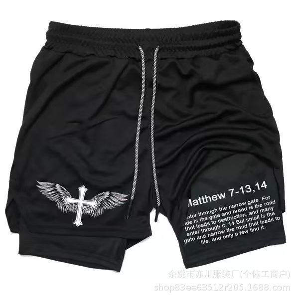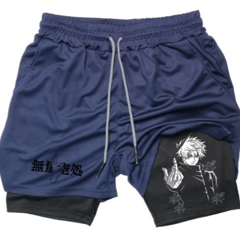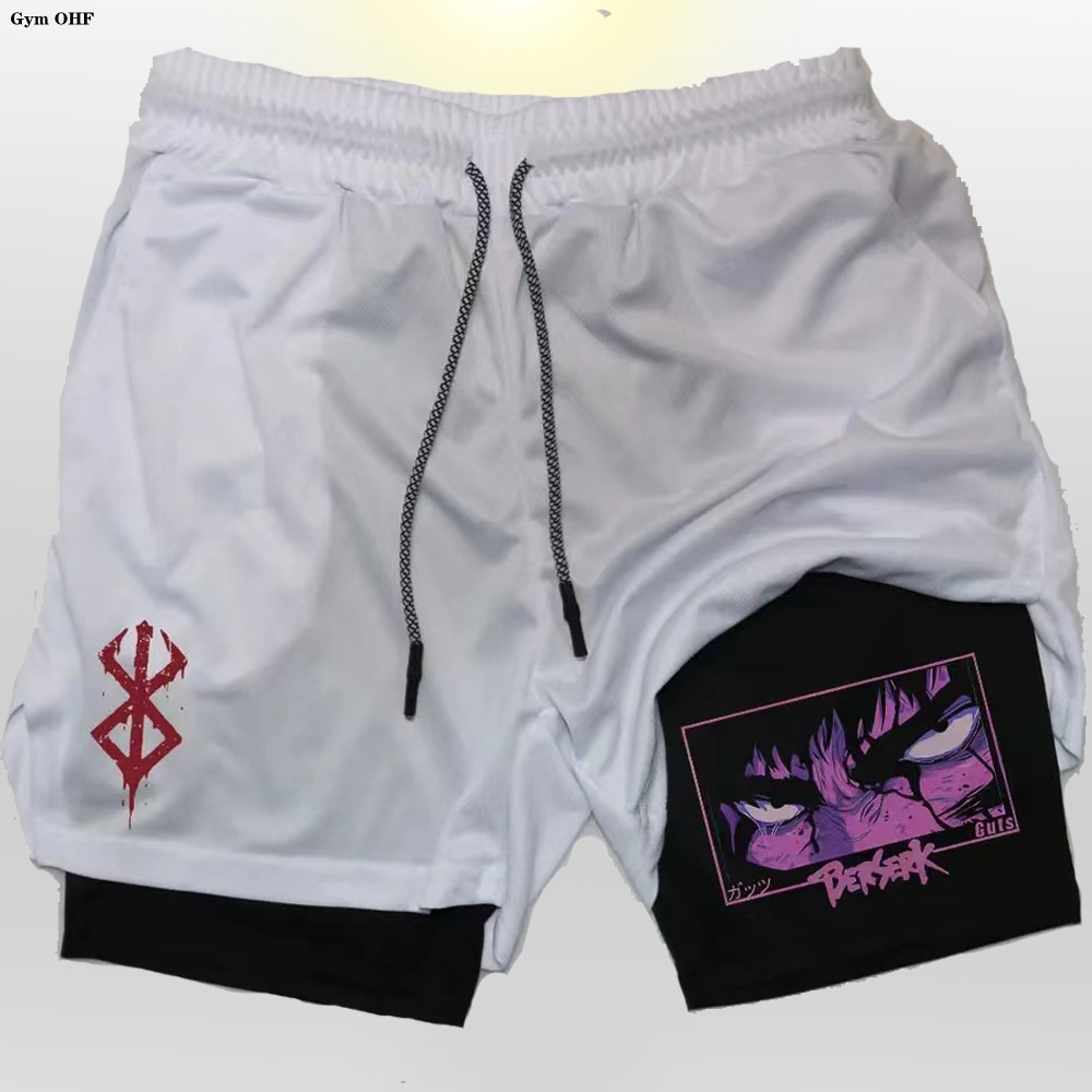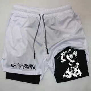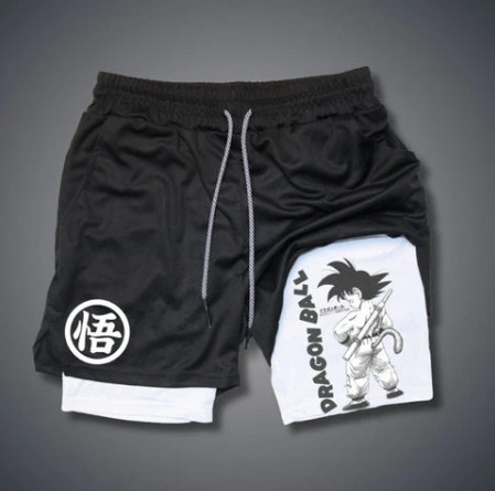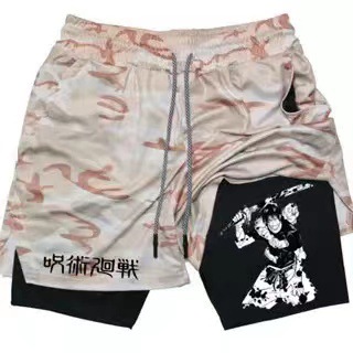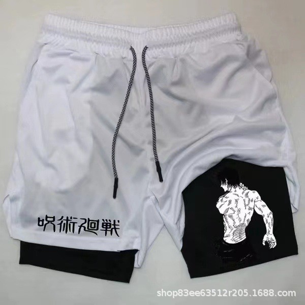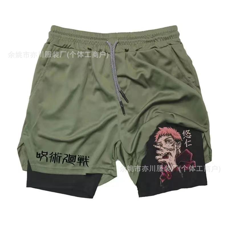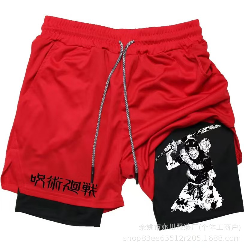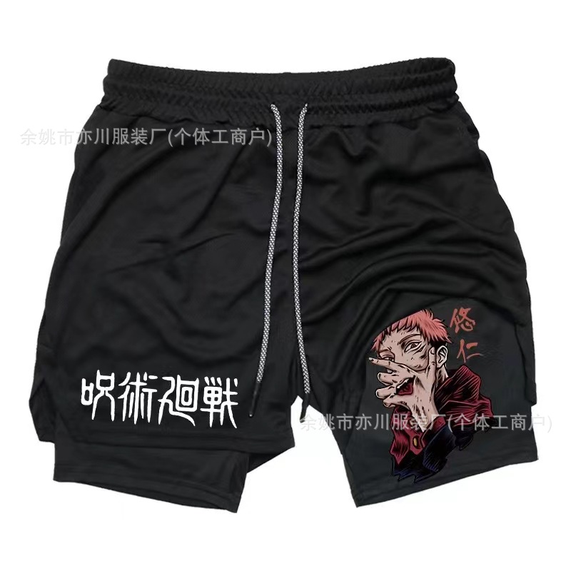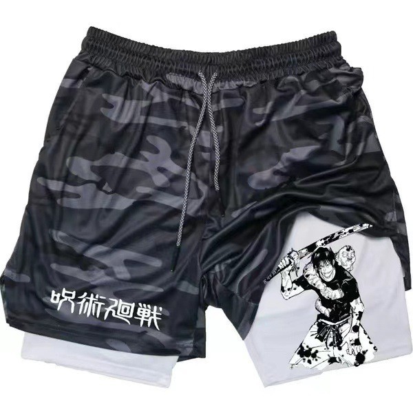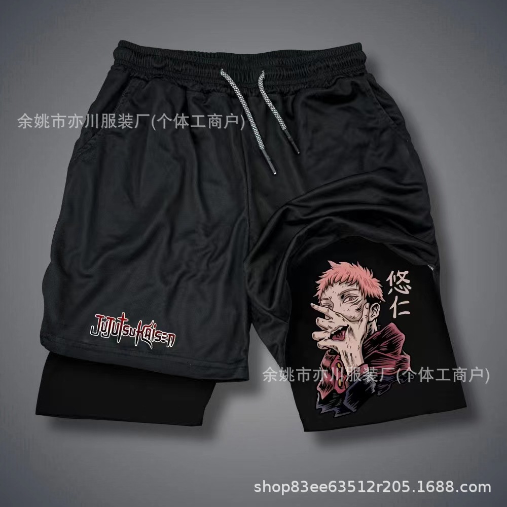 유럽과 미국의 국경 간 핫 애니메이션 인쇄 스포츠 남녀 더블 레이어 피트니스 반바지 여름 통기성 피트니스 반바지
