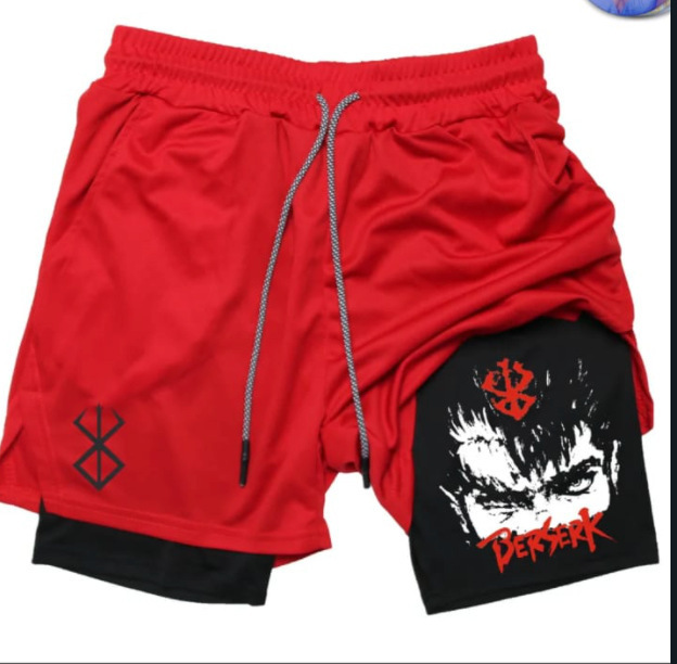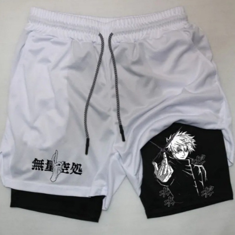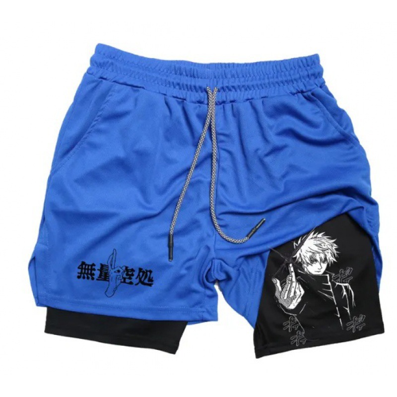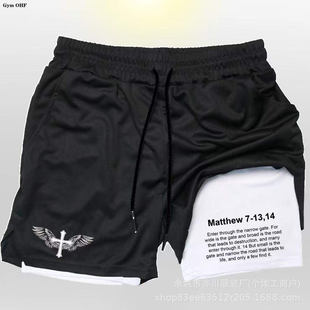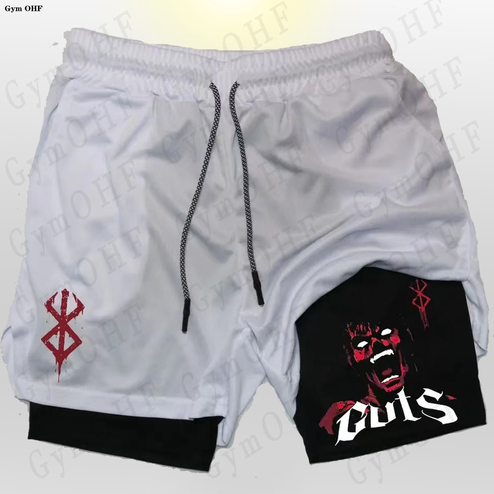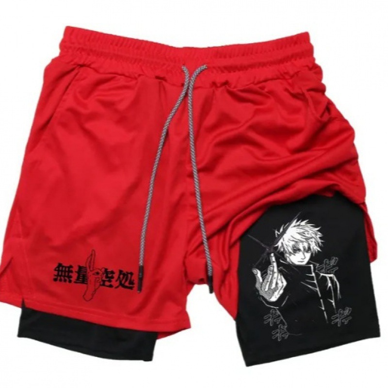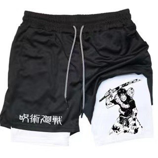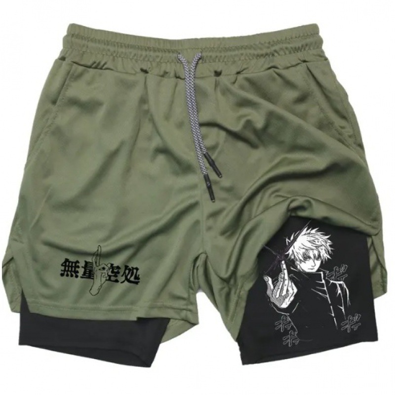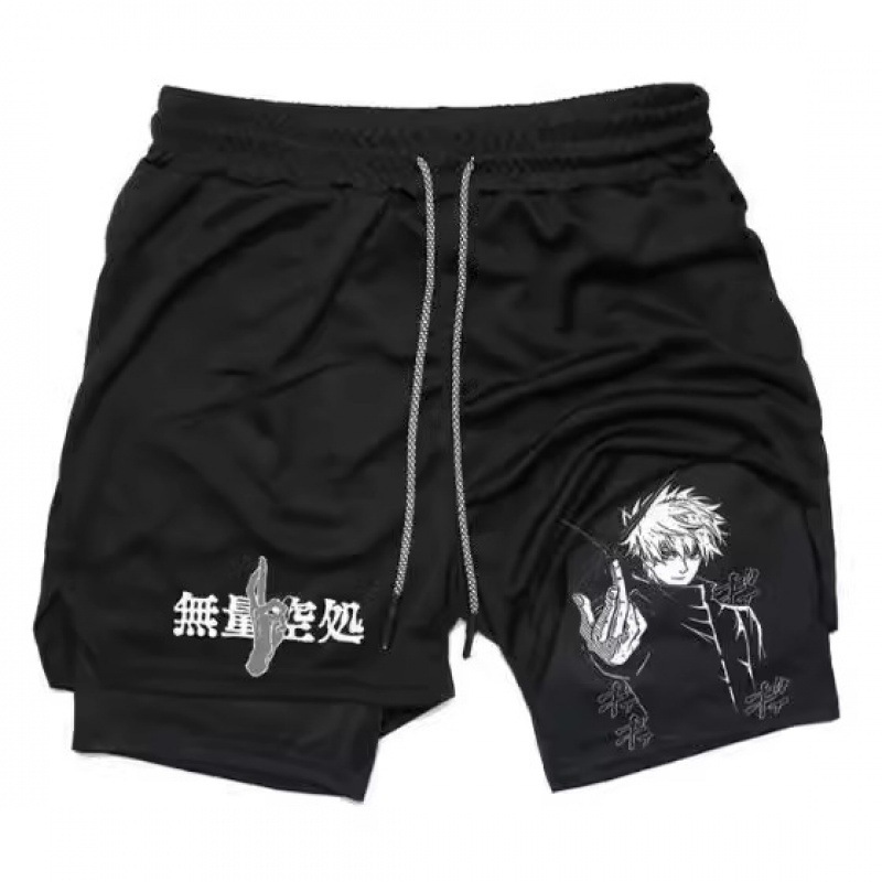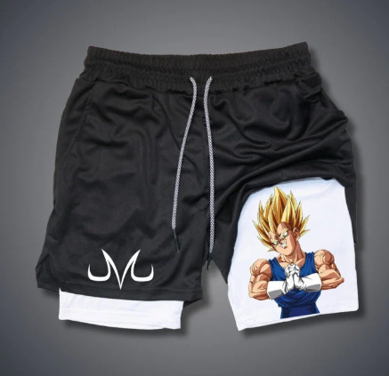 유럽과 미국의 국경 간 핫 애니메이션 인쇄 스포츠 남녀 더블 레이어 피트니스 반바지 여름 통기성 피트니스 반바지