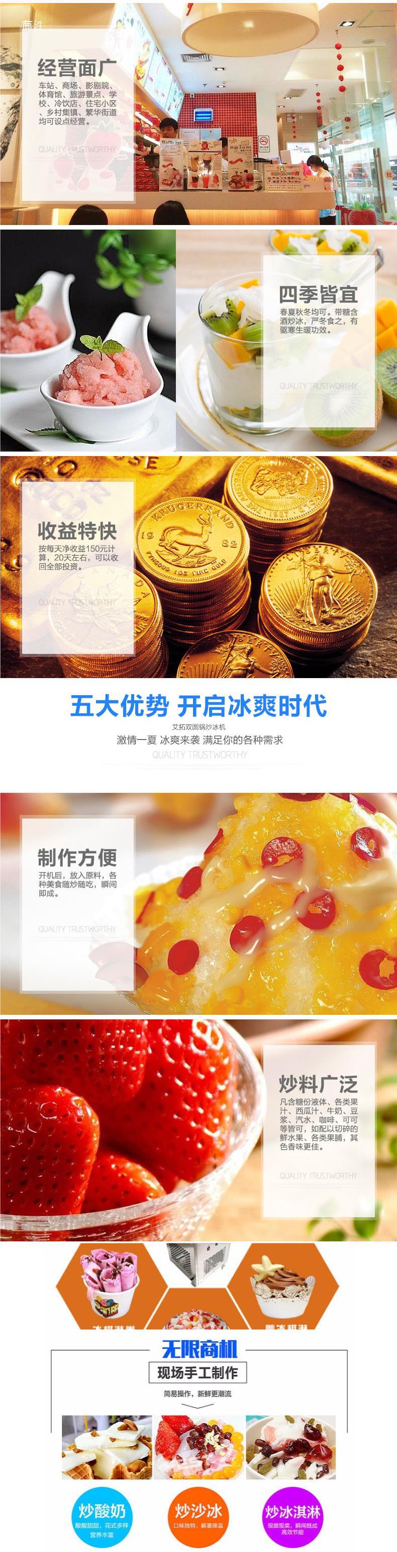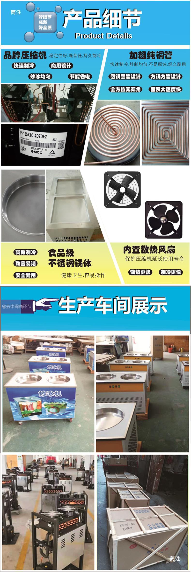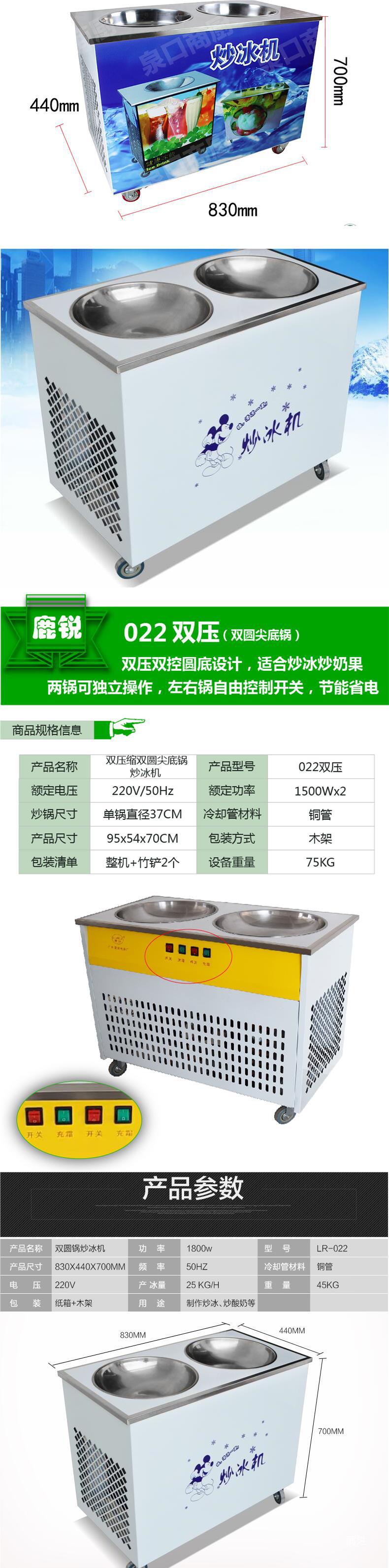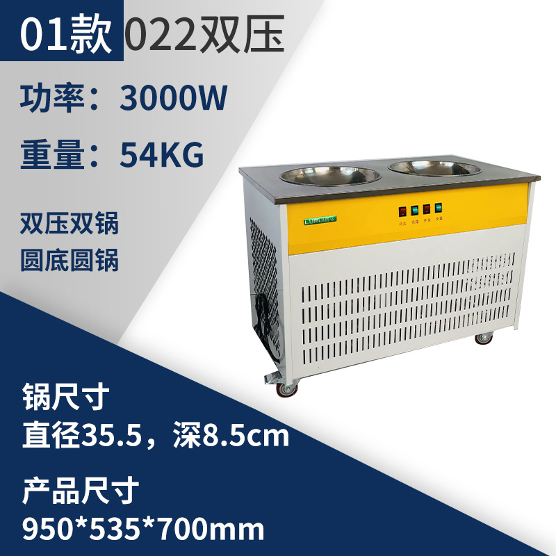 LR-022 루루리 프라이드 요구르트 상업적인 튀긴 얼음 기계 스톨 더블 라운드 포트 우유 과일 기계 아이스크림 롤 기계 구식 라운드 포트스토어 가기