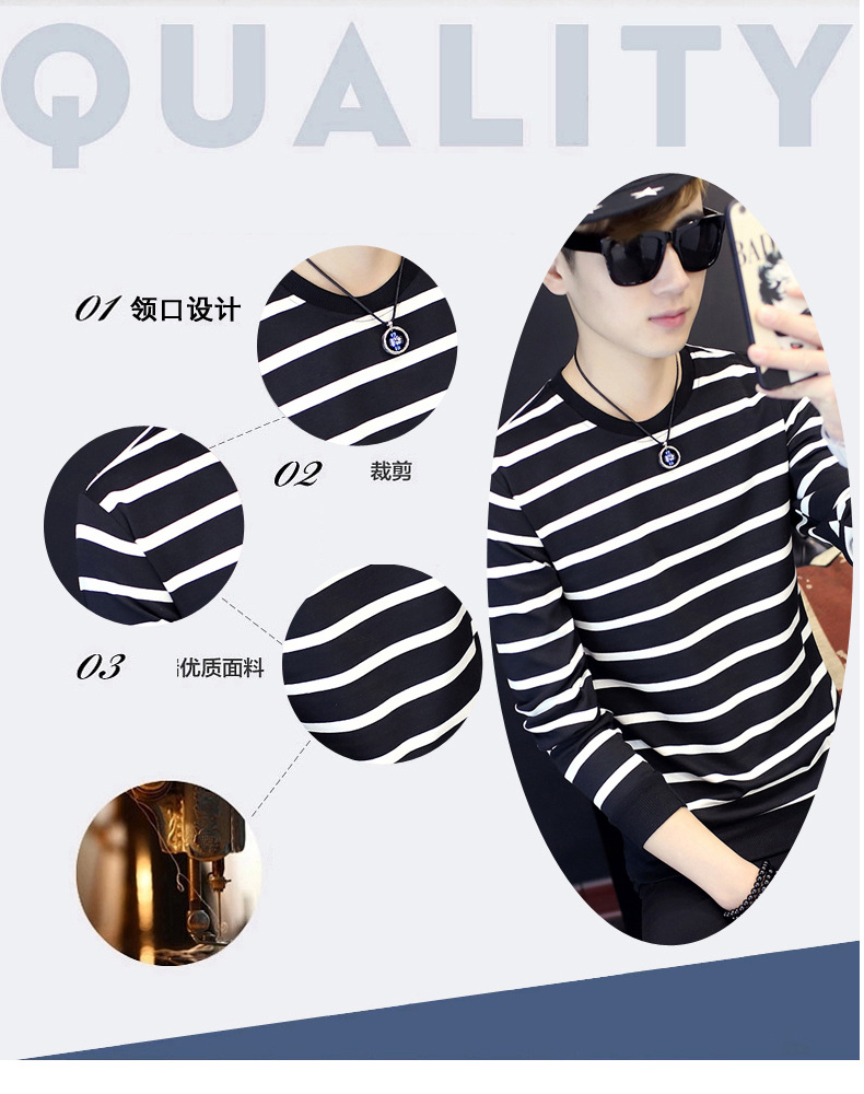 젊은 트렌디 긴팔 티셔츠 봄 스트라이프 멋진 옷 남성 가을 겨울 기모 스웨트셔츠 두꺼운 이너웨어스토어 가기