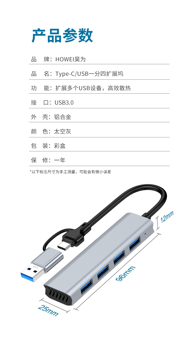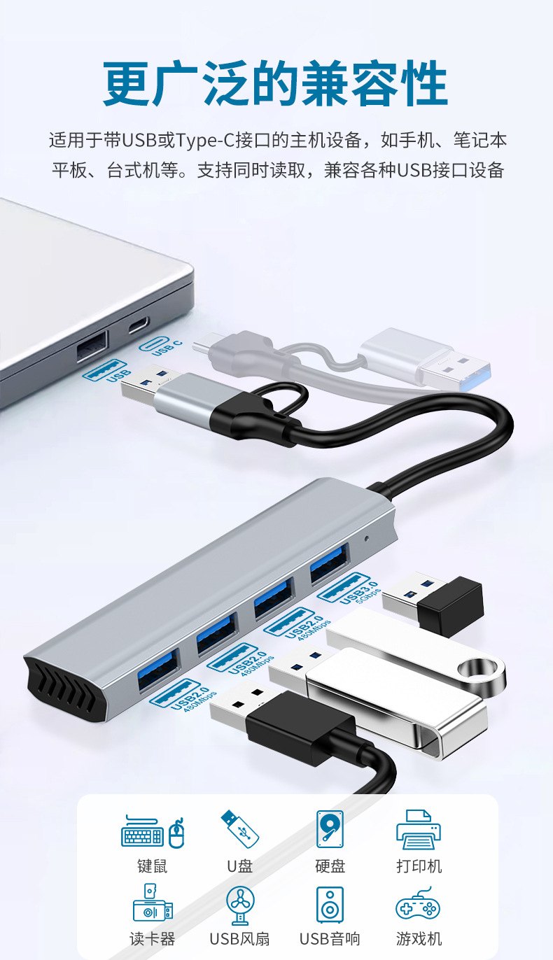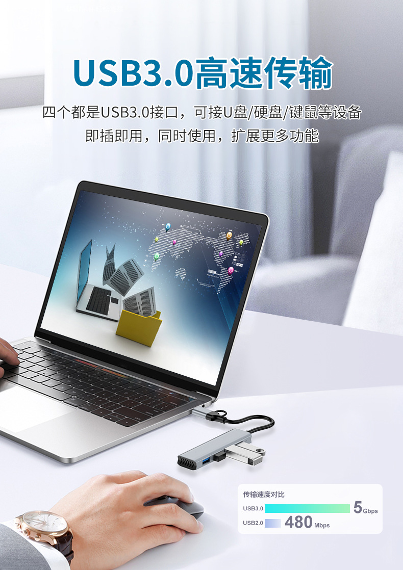 USB3.0HUB 스플리터 타입-c 도킹 스테이션 허브 휴대 전화 노트북 다기능 분할 화면 허브
