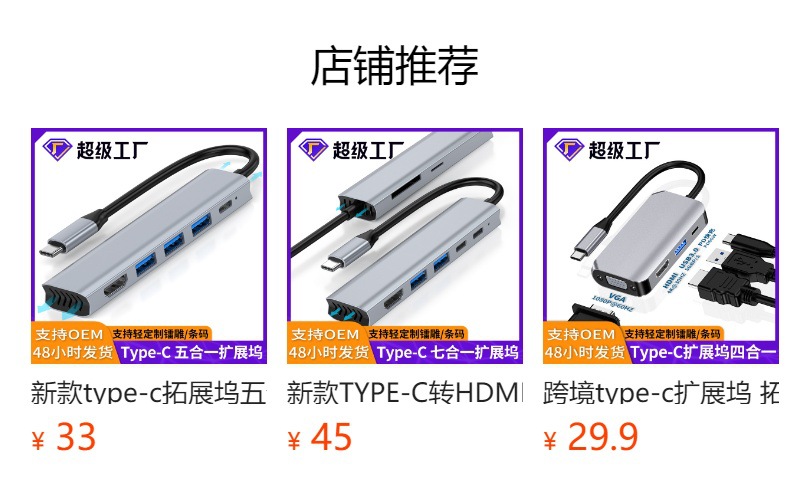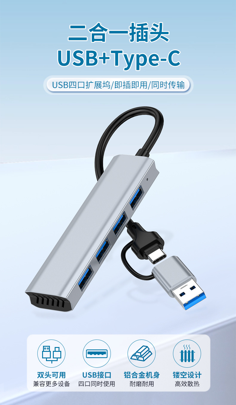 USB3.0HUB 스플리터 타입-c 도킹 스테이션 허브 휴대 전화 노트북 다기능 분할 화면 허브스토어 가기