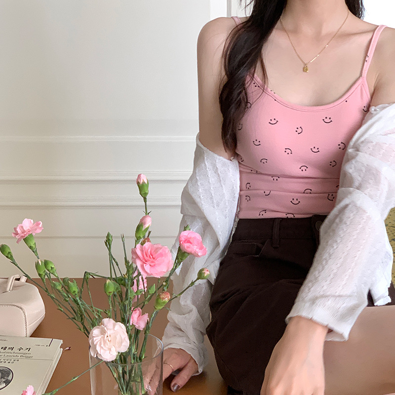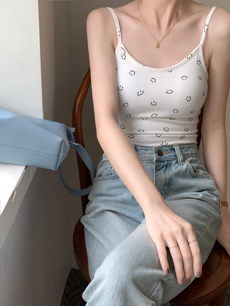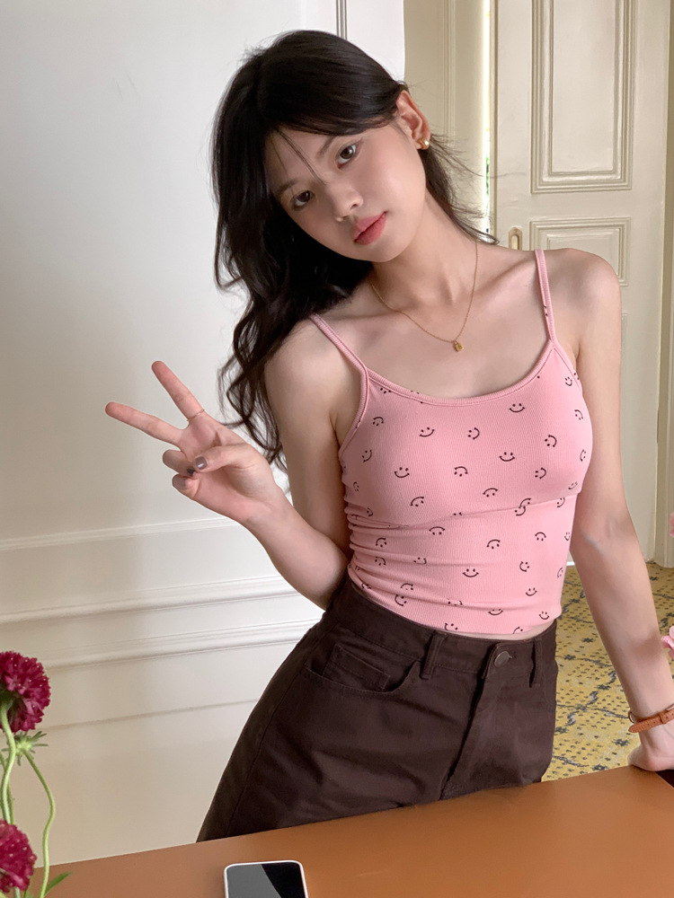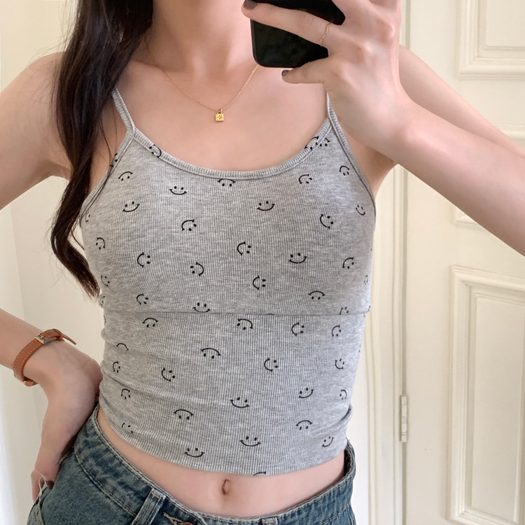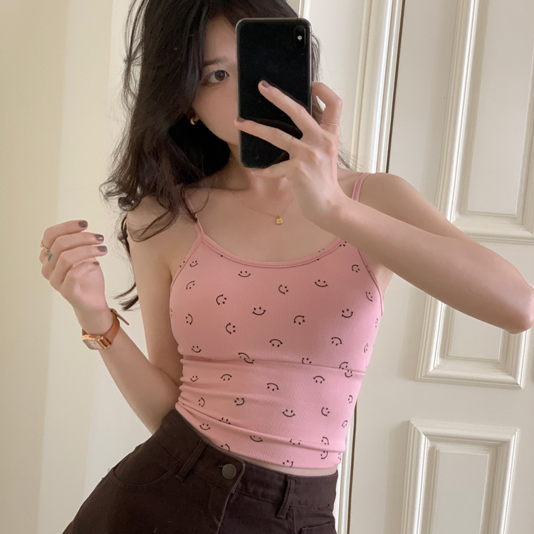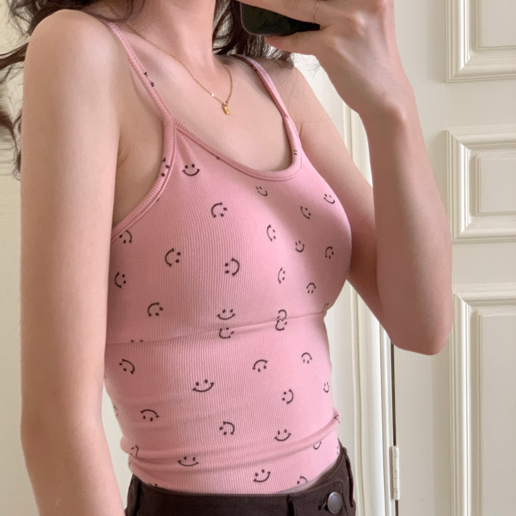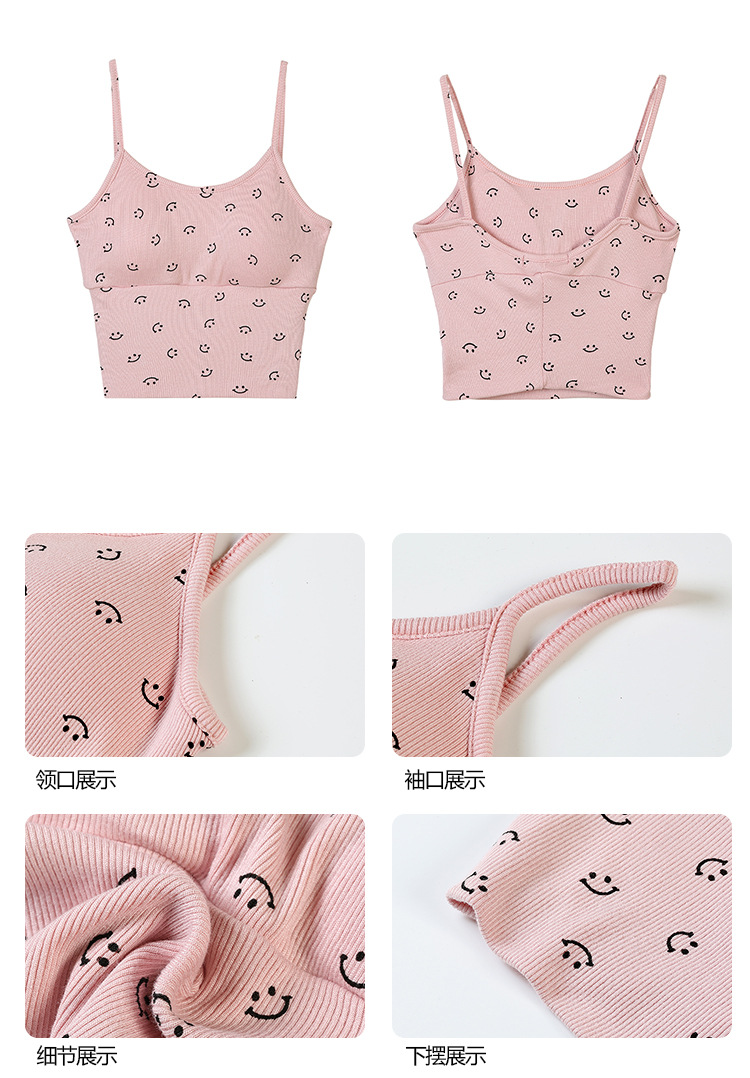 귀여운 스마일리 인쇄 스파이스 소녀 가슴 패드 포장 가슴 백리스 달콤한 섹시한 외부 착용 슬림 핏 내부 카미솔