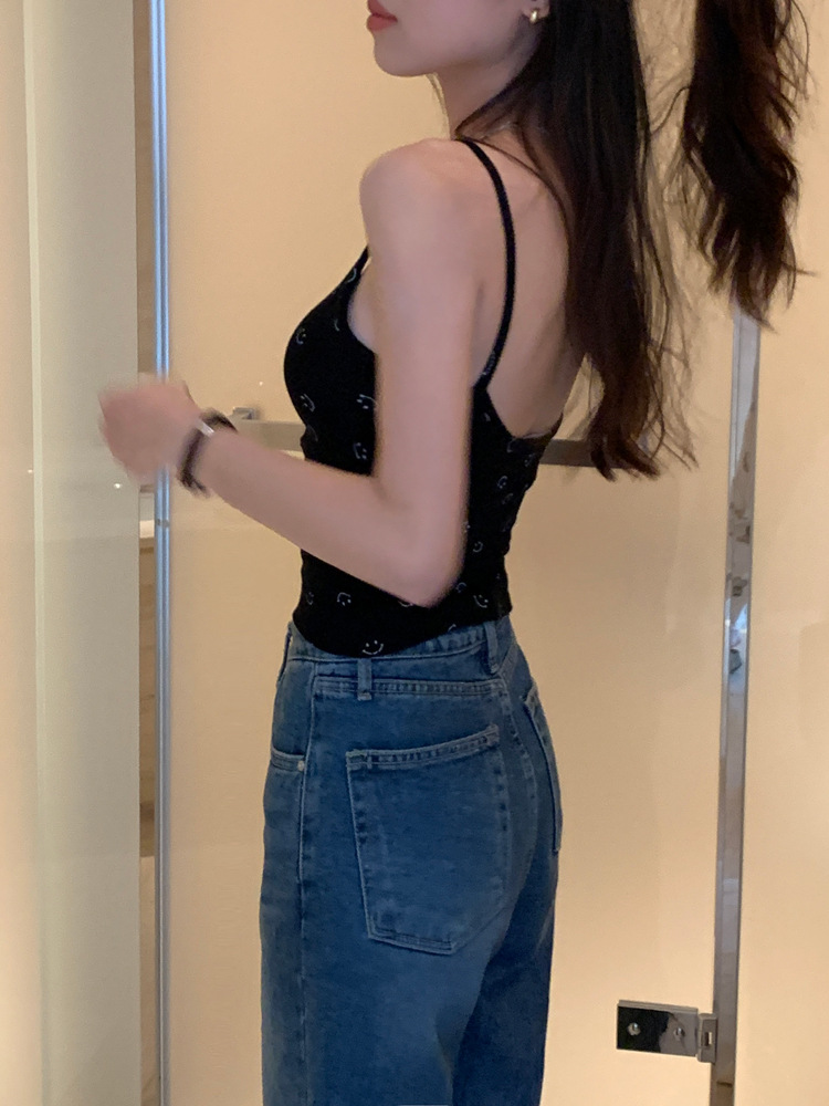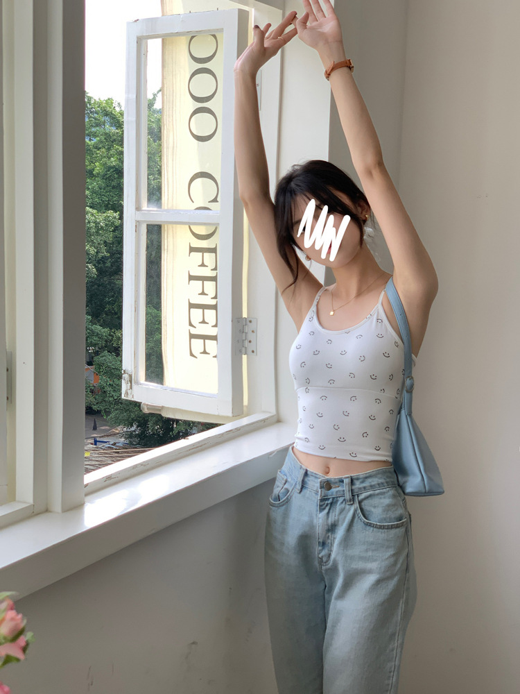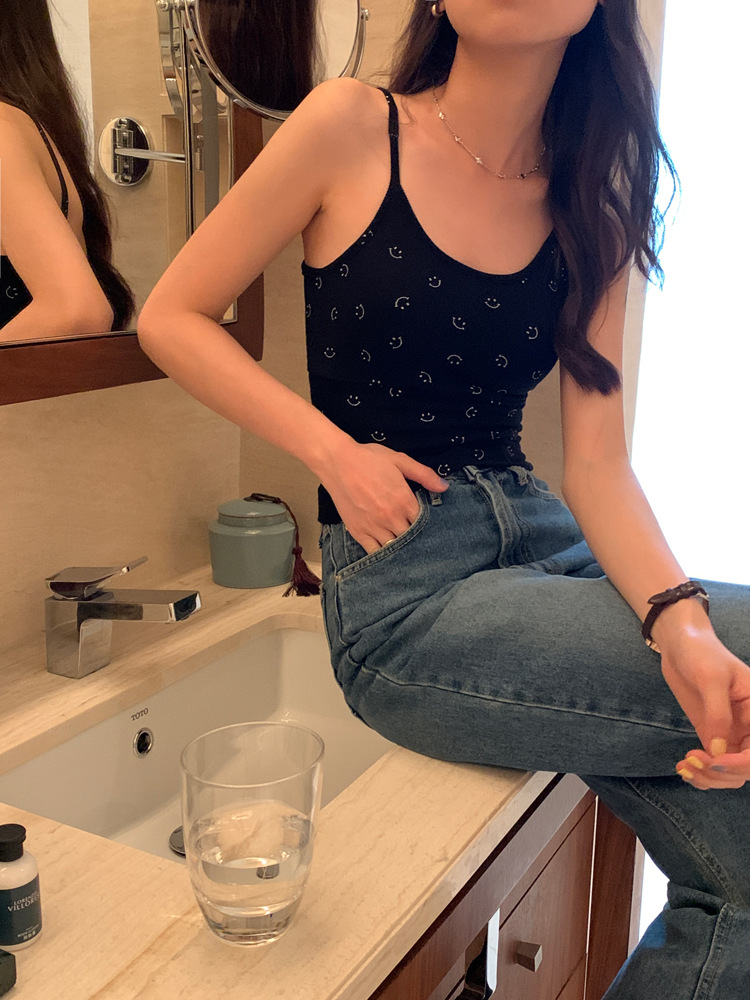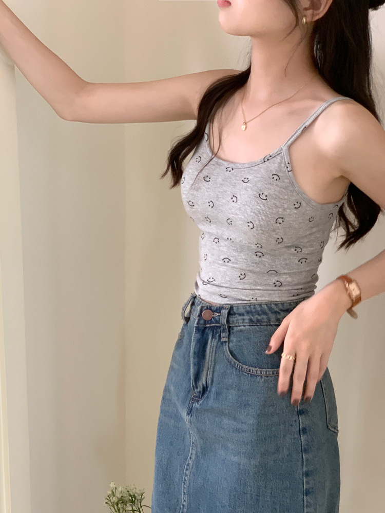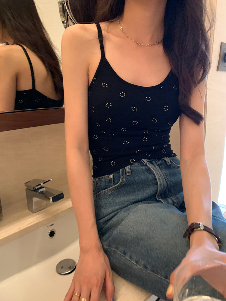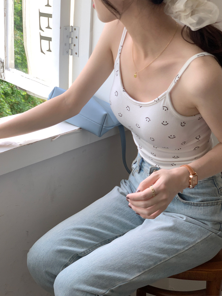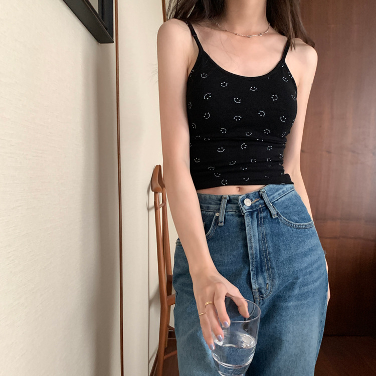 귀여운 스마일리 인쇄 스파이스 소녀 가슴 패드 포장 가슴 백리스 달콤한 섹시한 외부 착용 슬림 핏 내부 카미솔