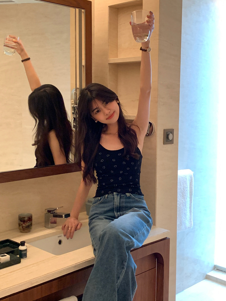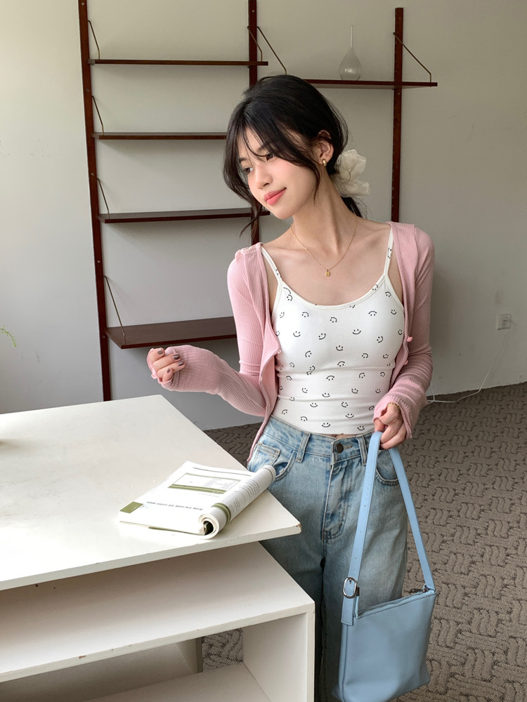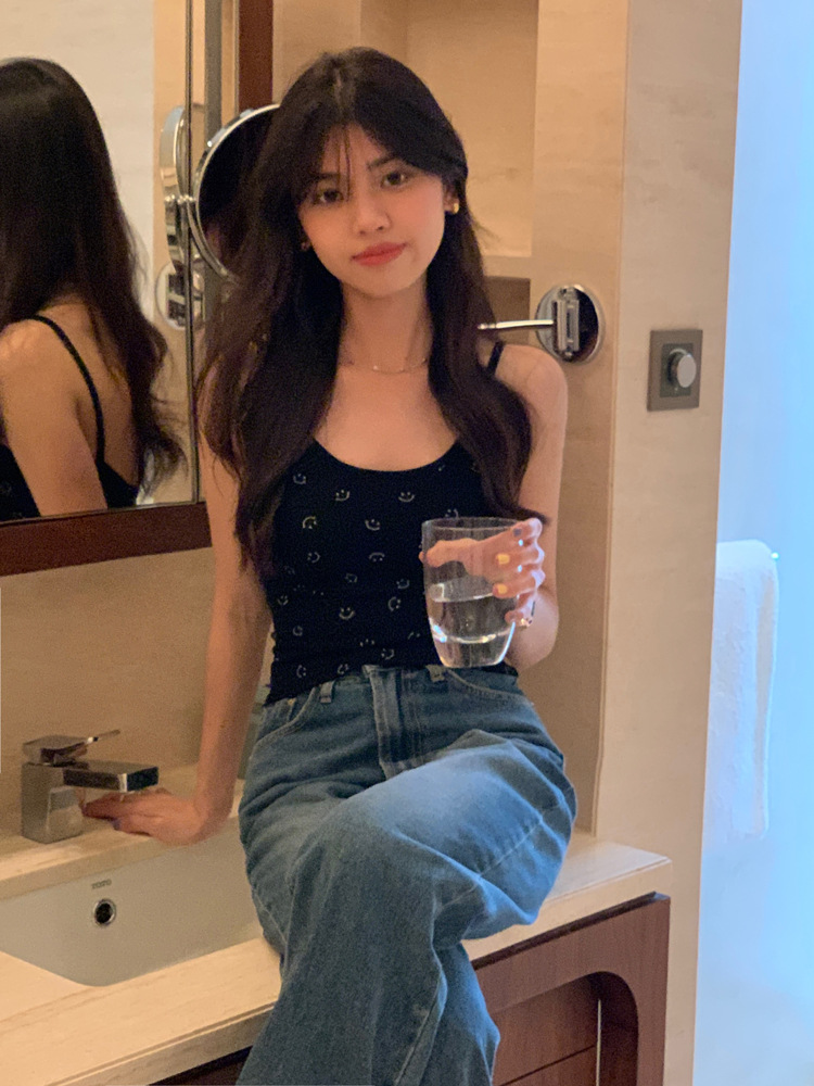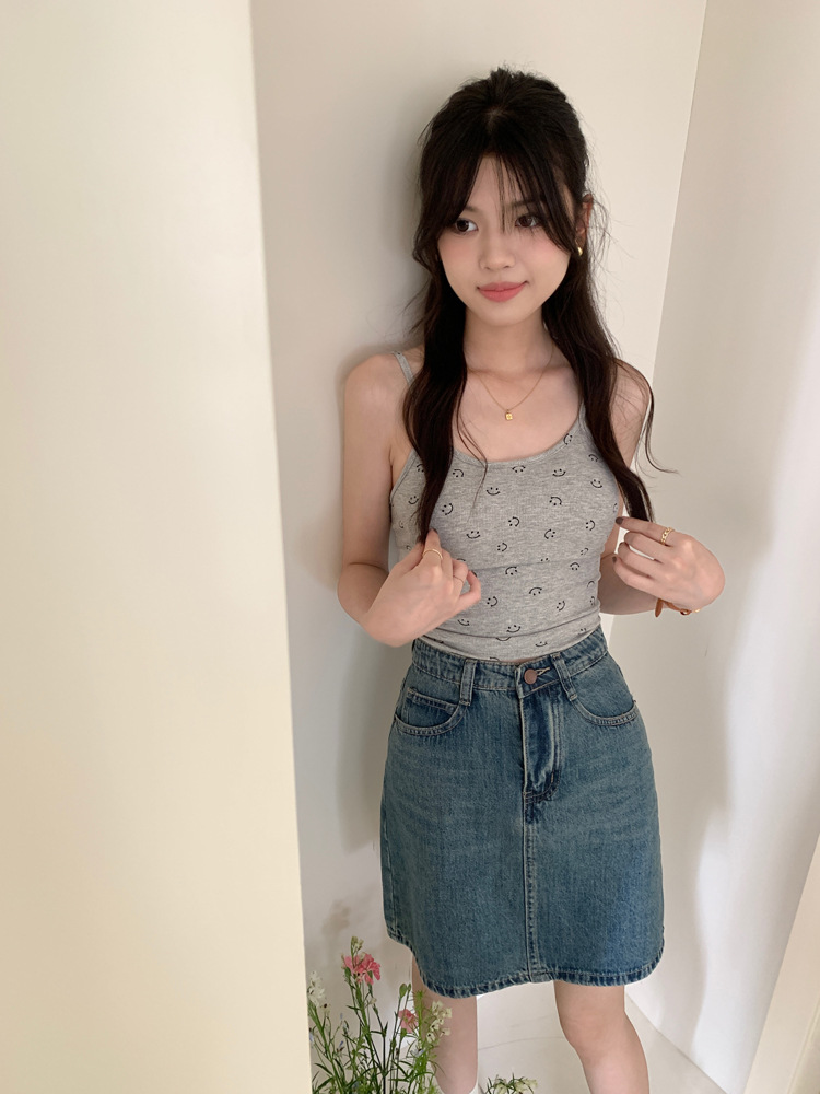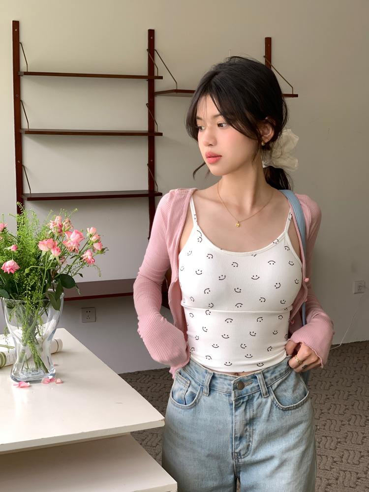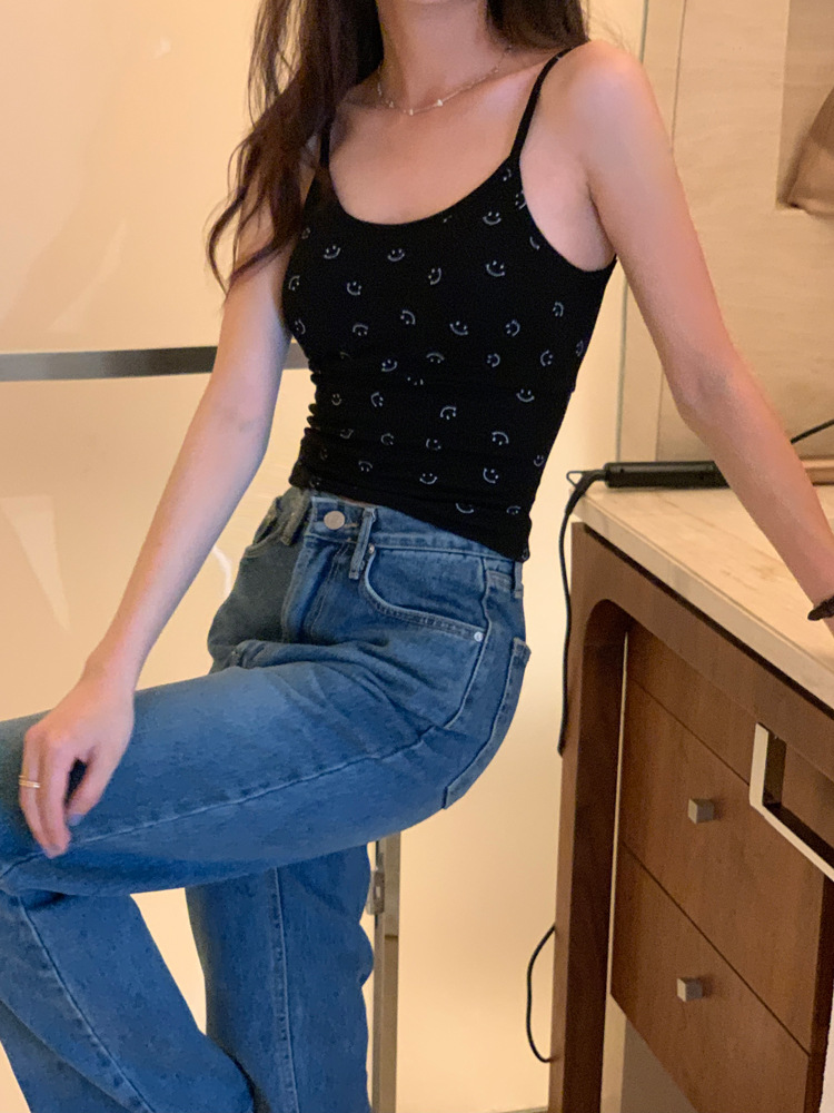 귀여운 스마일리 인쇄 스파이스 소녀 가슴 패드 포장 가슴 백리스 달콤한 섹시한 외부 착용 슬림 핏 내부 카미솔