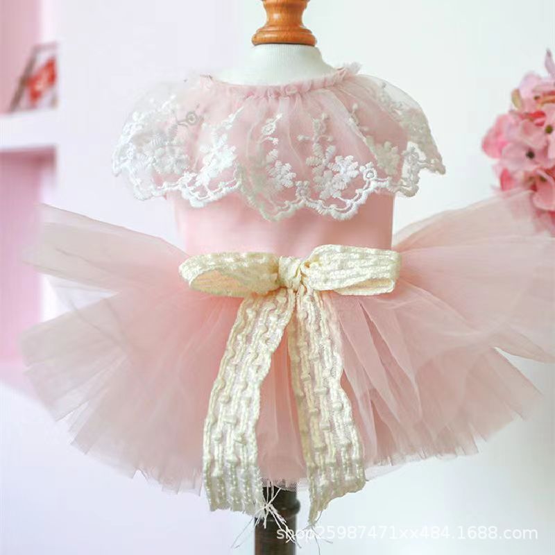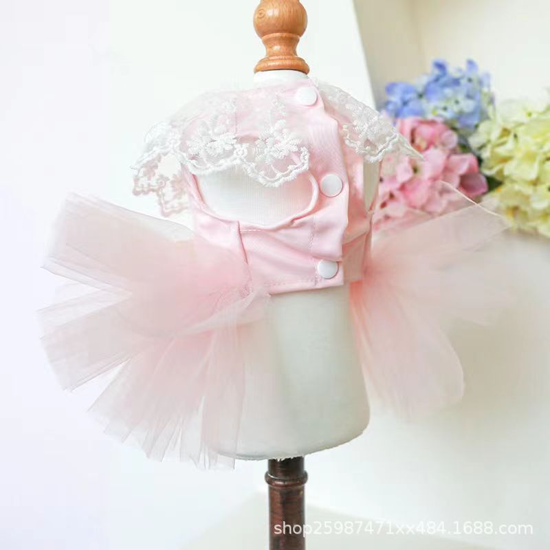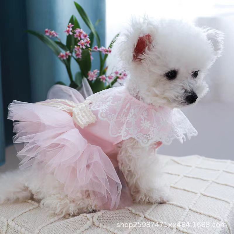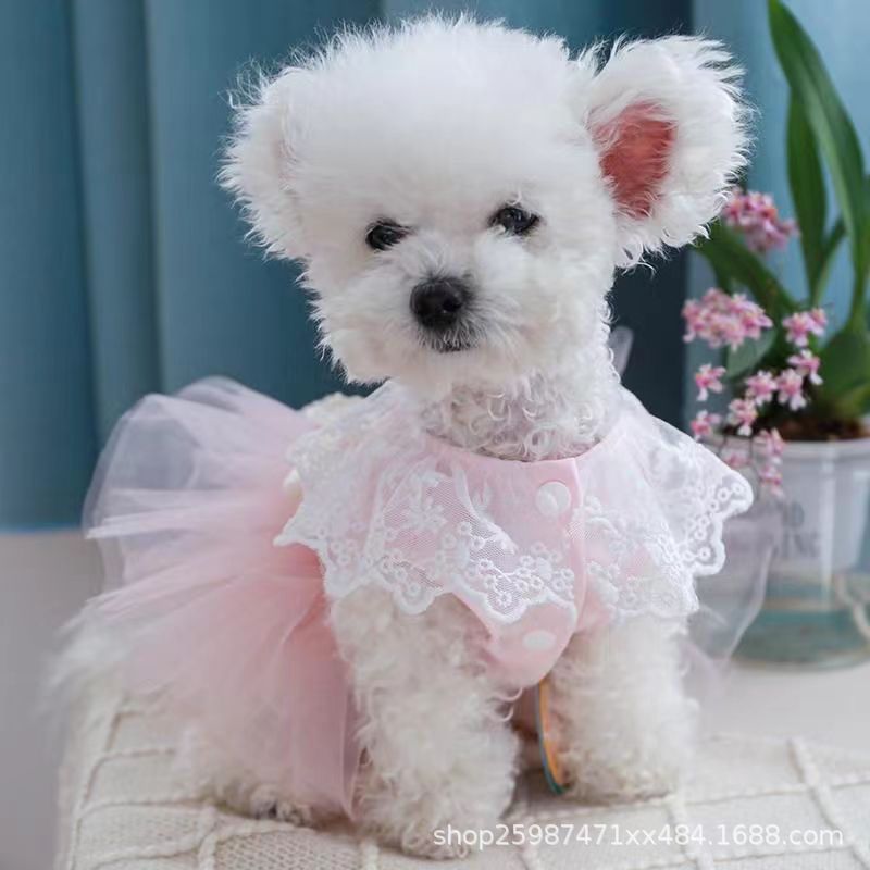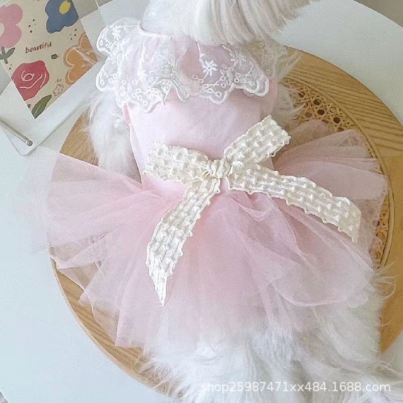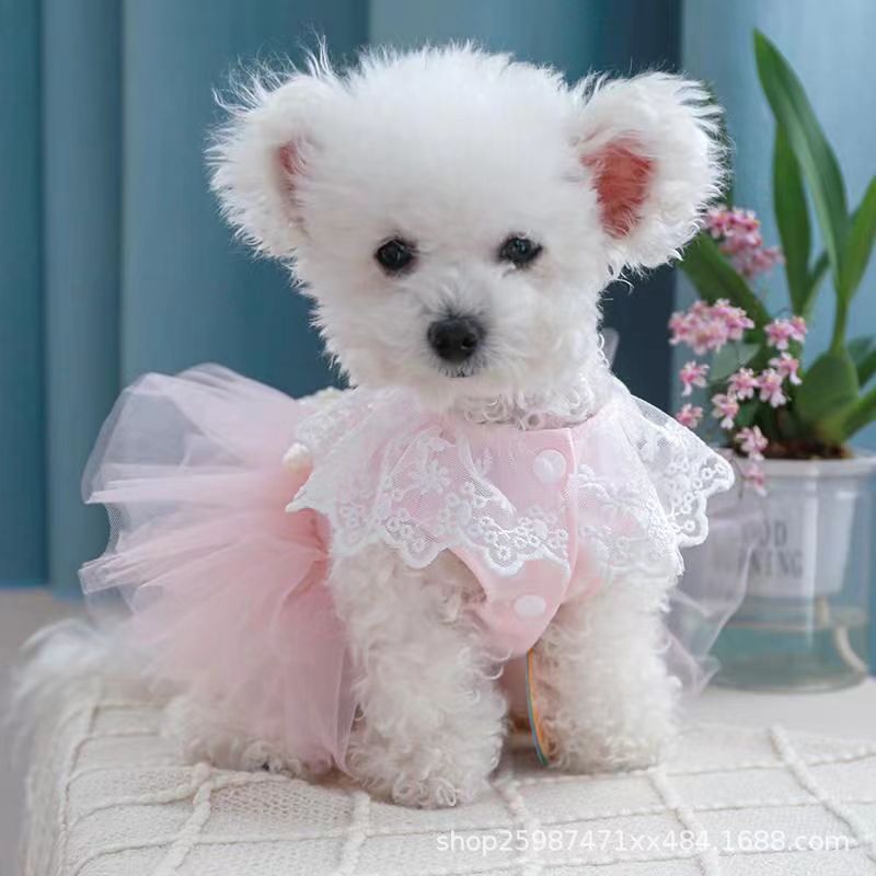 개 고양이 애완 동물 새로운 봄과 여름 테디 Beaumi Bixiong 작은 개 옷 인형 칼라 얇은 푹신한 거즈 옷스토어 가기