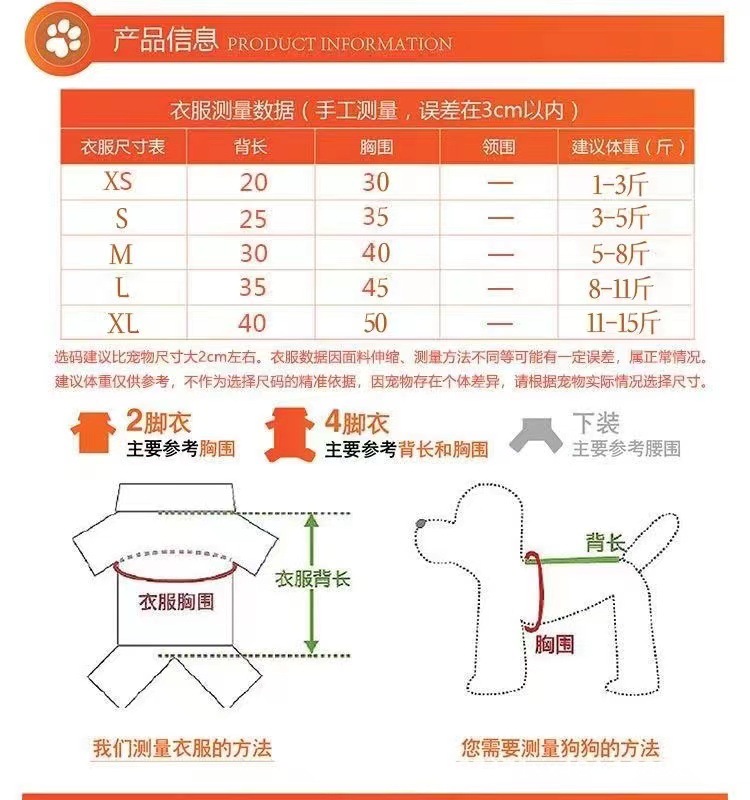 • XS 가슴 30cm 권장 0.50 kg-1.50 kg
