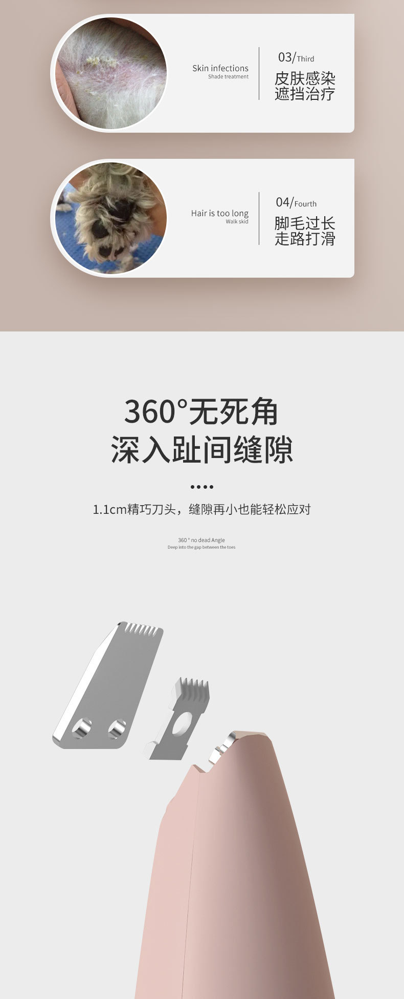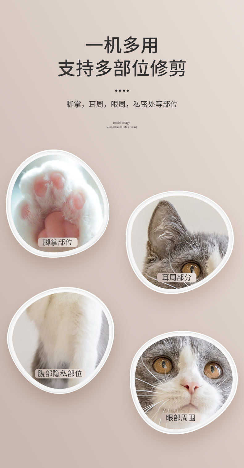 애완 동물 머리 면도 장치 고양이 충전식 발 면도 장치 전기 클리퍼 LED 조명 개 발 면도 유물스토어 가기