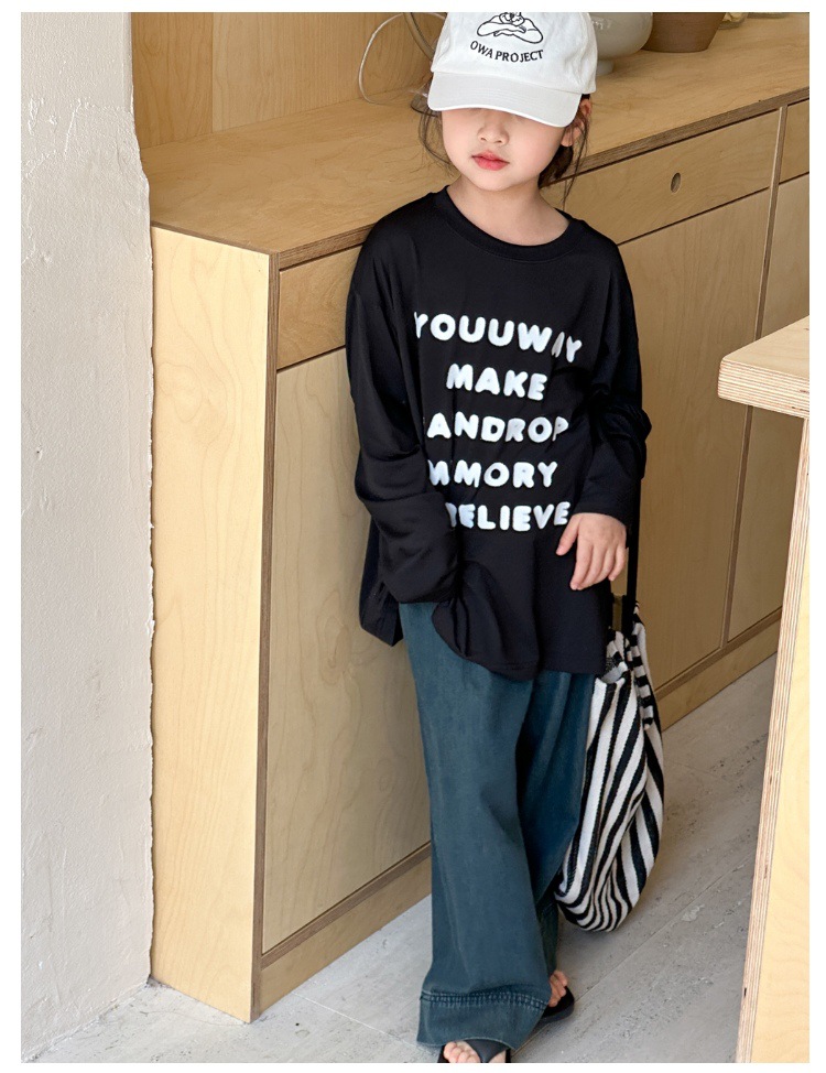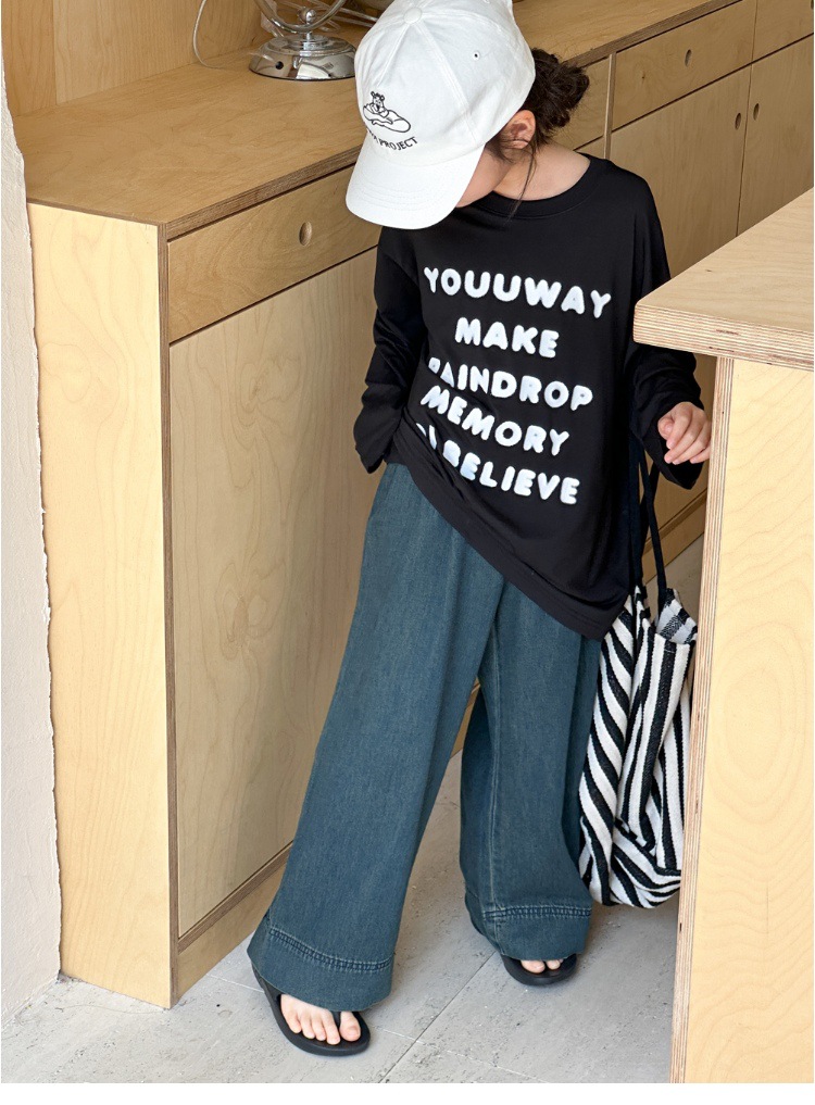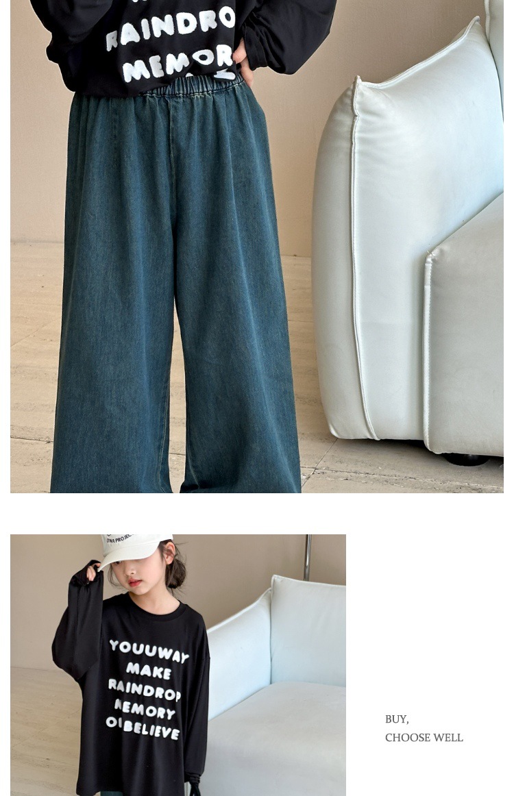 여아 바지 여름 얇은 2025 신상 중대형 아동 와이드 팬츠 여름 나팔바지 아동 스트레이트 청바지스토어 가기