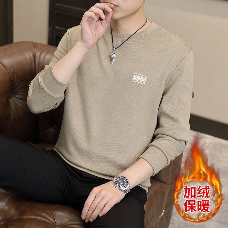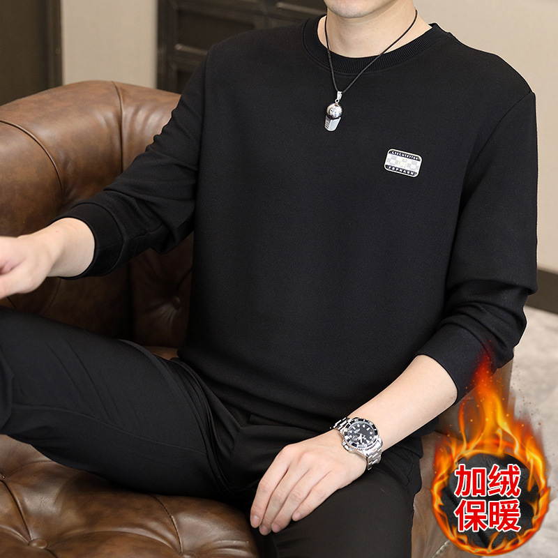 스웨터 남자의 가을 새로운 하이 엔드 패션 라운드 넥 기모 두꺼운 긴 소매 풀오버 베이스 셔츠 남자의 스웨터