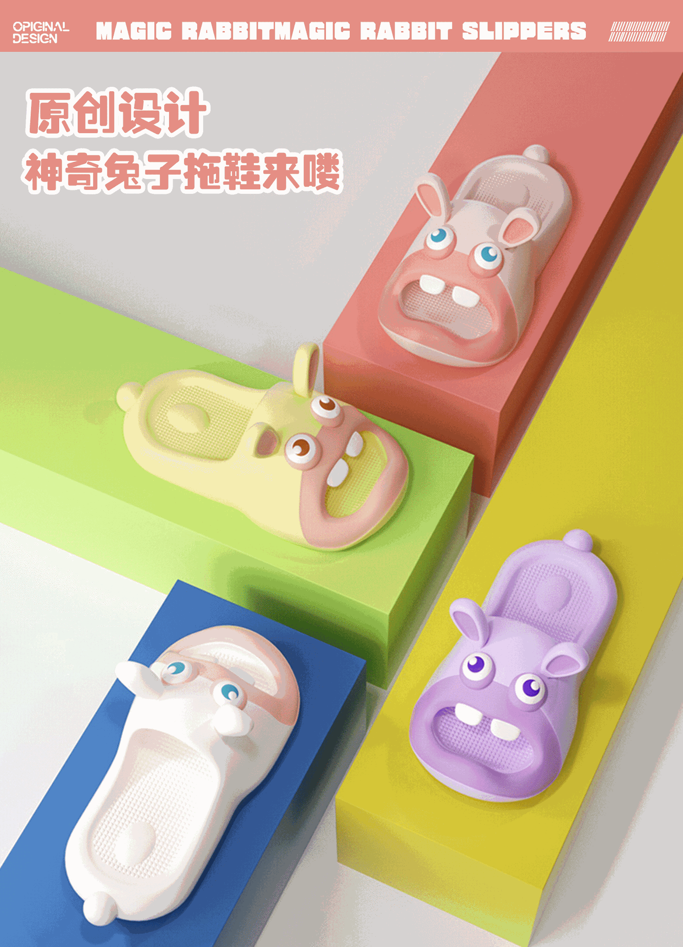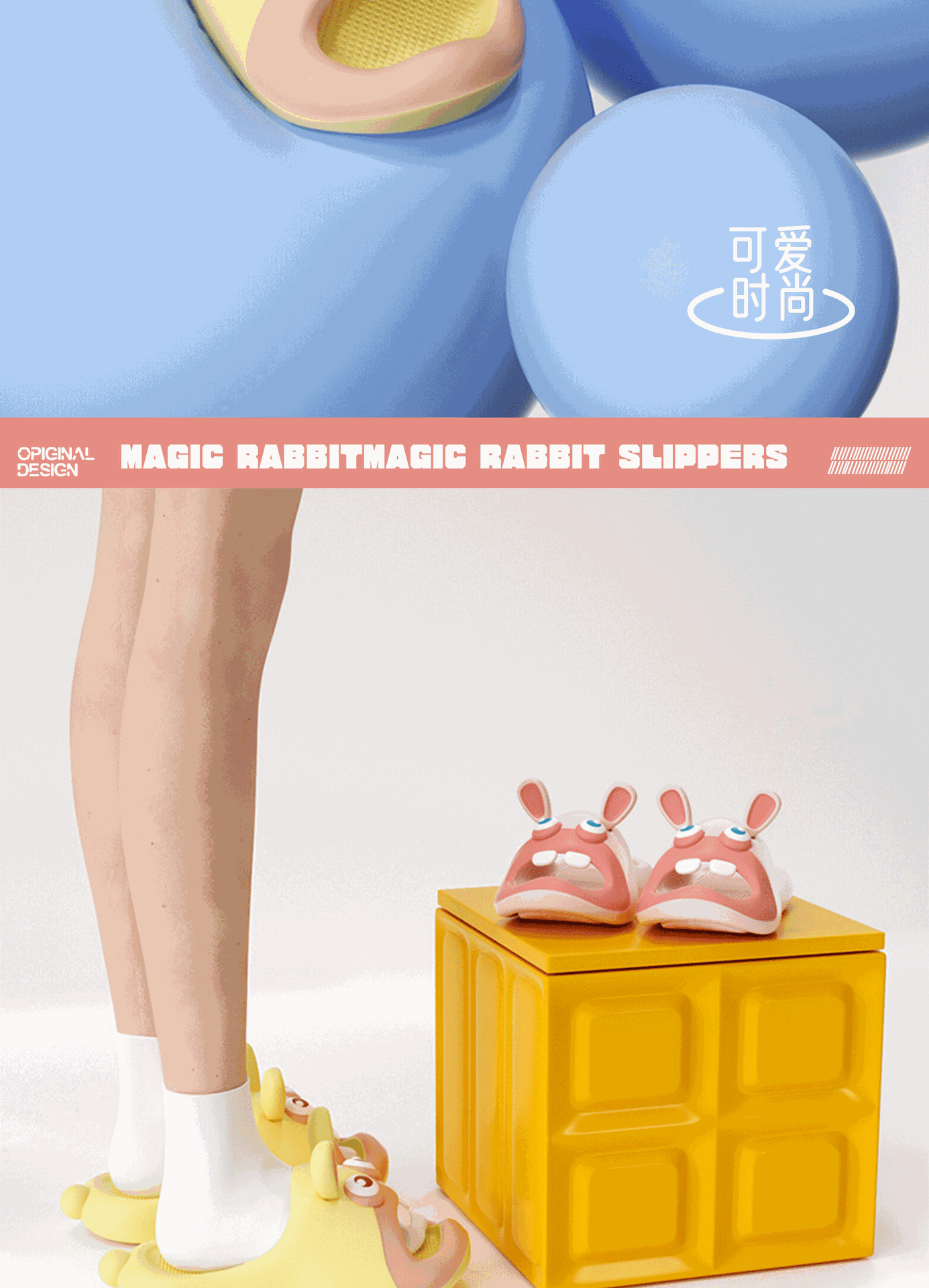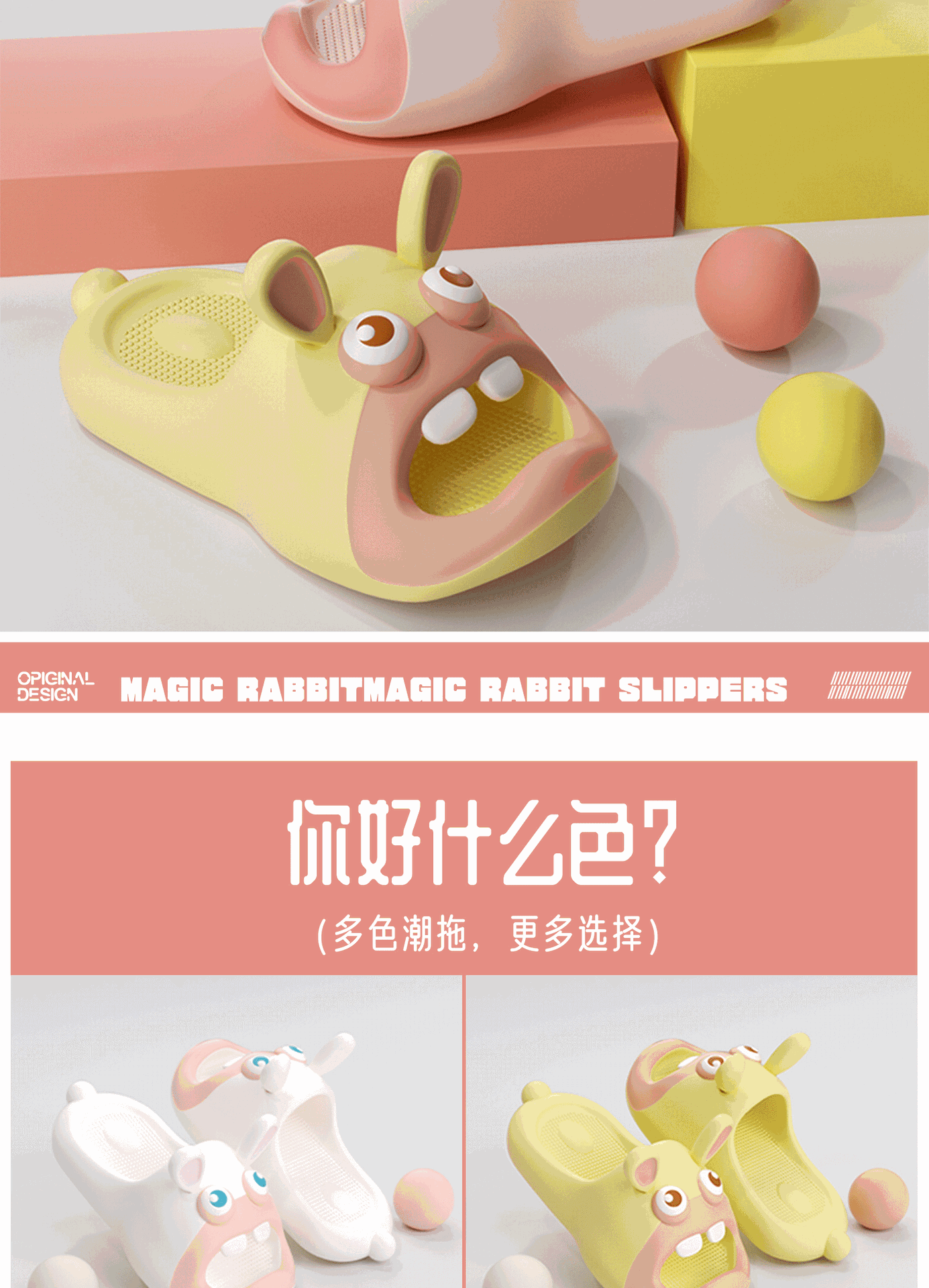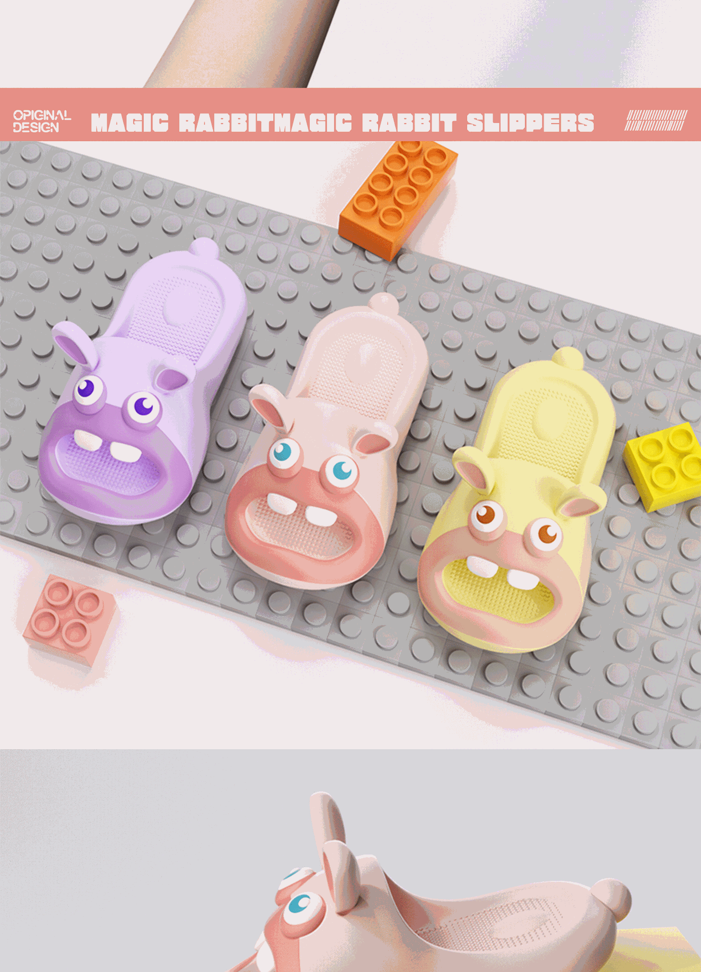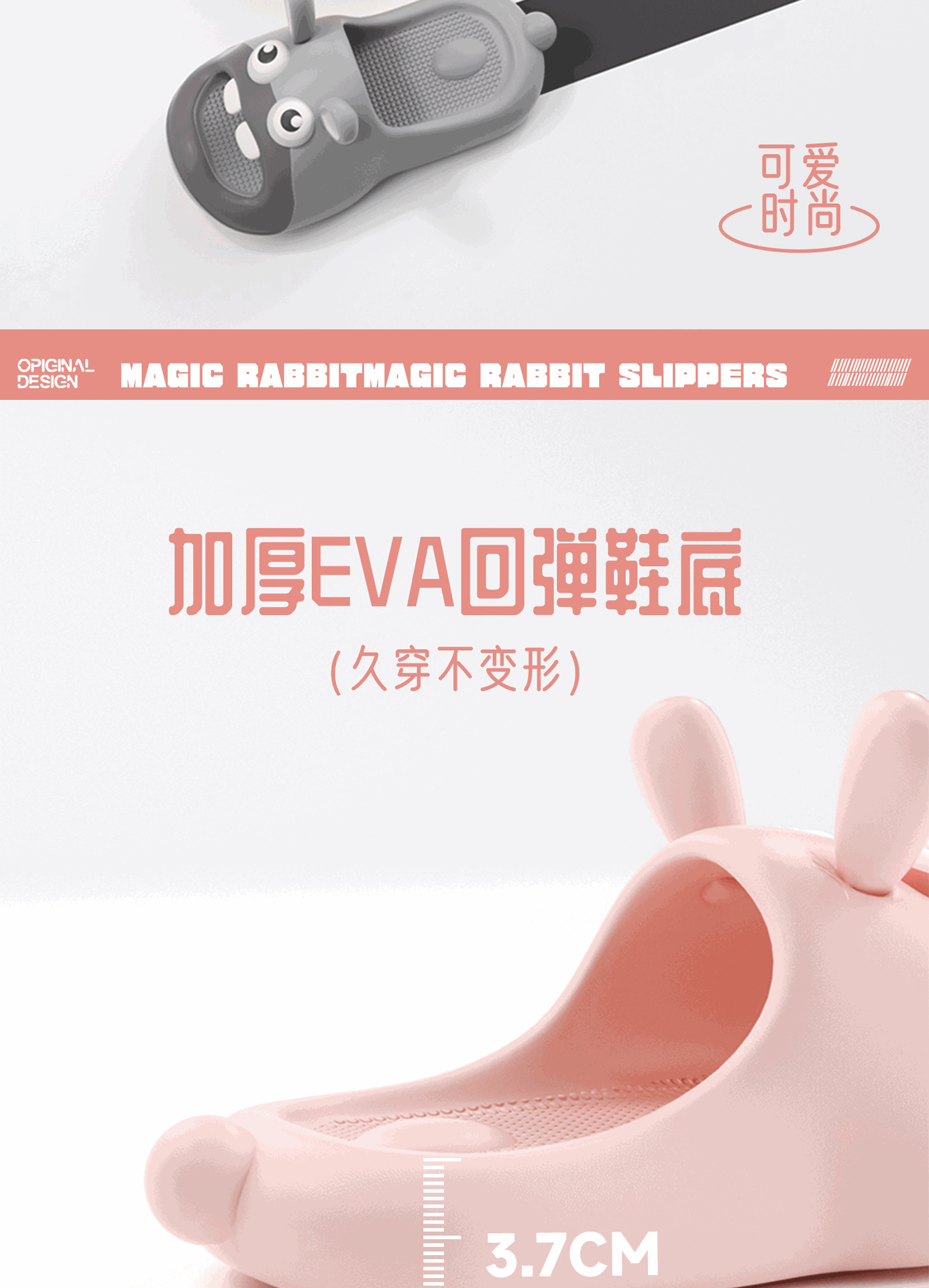 토끼 슬리퍼 여성의 여름 외부 착용 발가락 느낌 만화 홈 욕실 내부 미끄럼 방지 두꺼운 부모-자식 샌들 및 여성용 슬리퍼