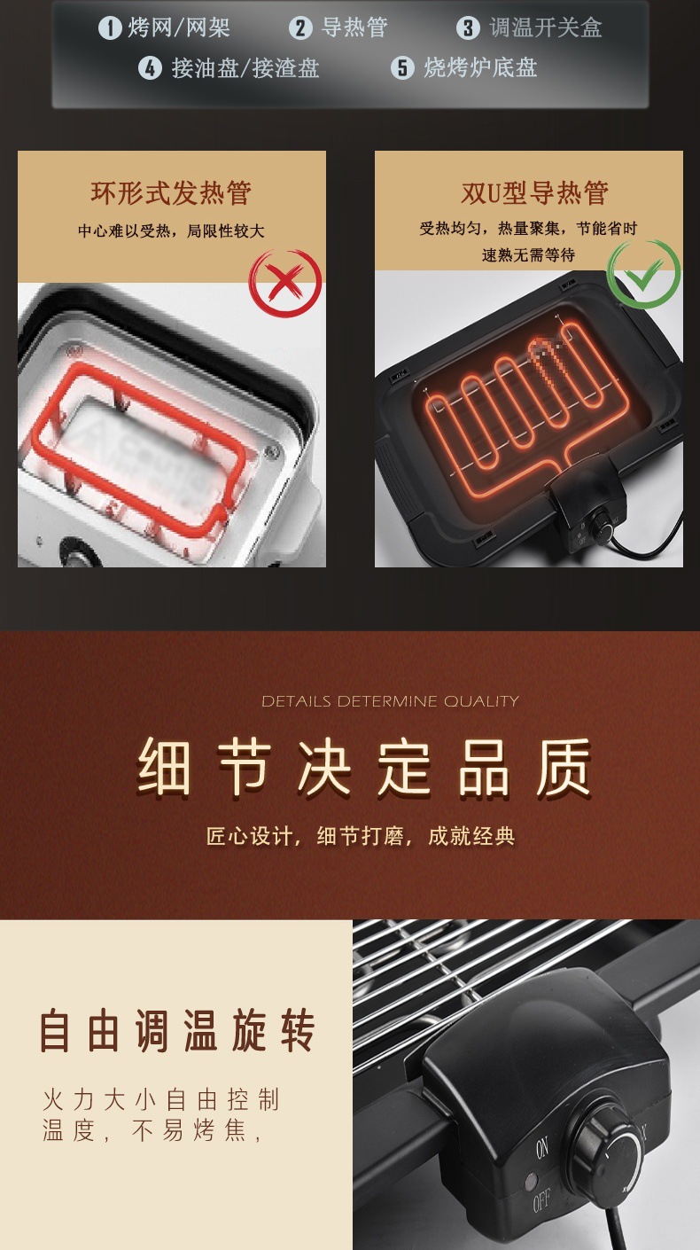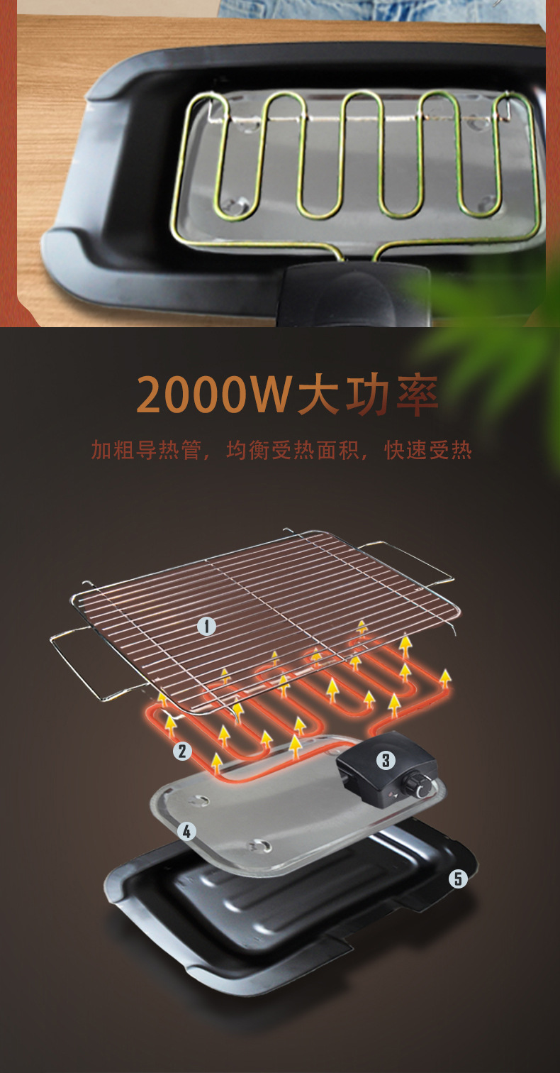 도매 Haolang 전기 그릴 가정용 무연 그릴 고출력 생선 그릴 유럽 전기 그릴 꼬치 그릴