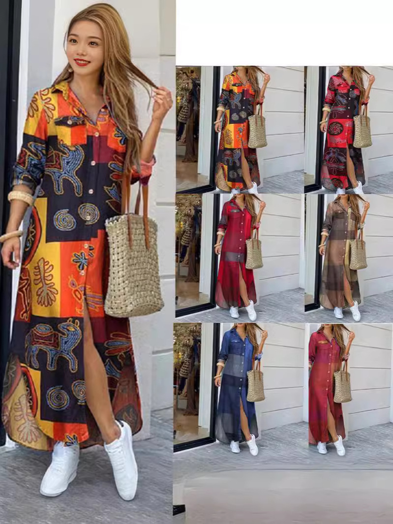 2026eBay AliExpress 가을 신상 패션 긴팔 셔츠 드레스 롱 드레스 S-5XL 대량 재고 있음