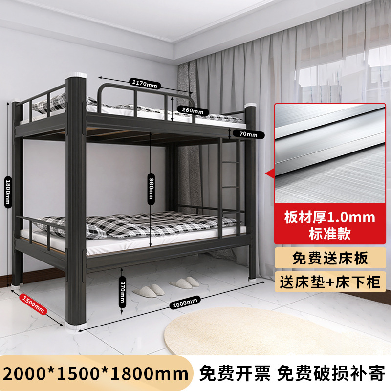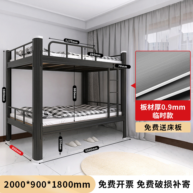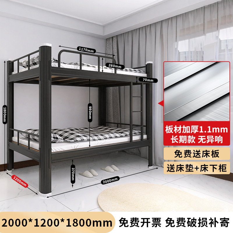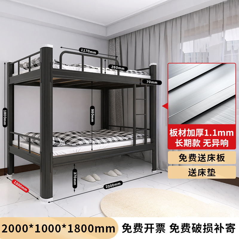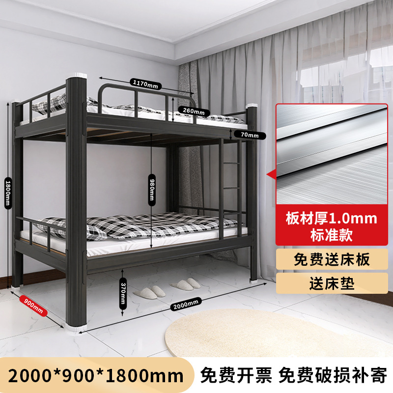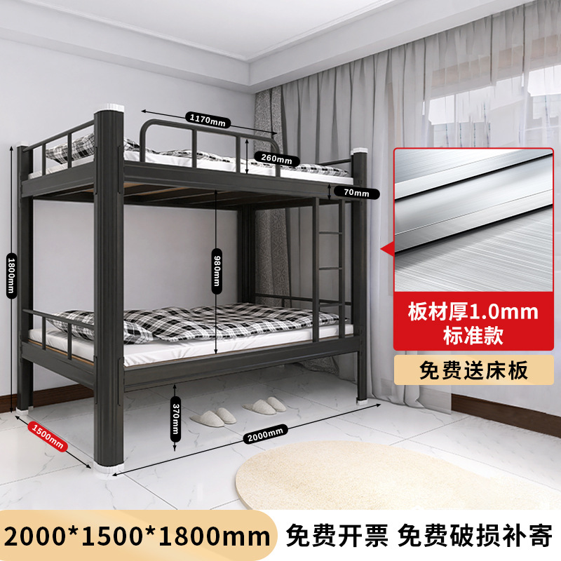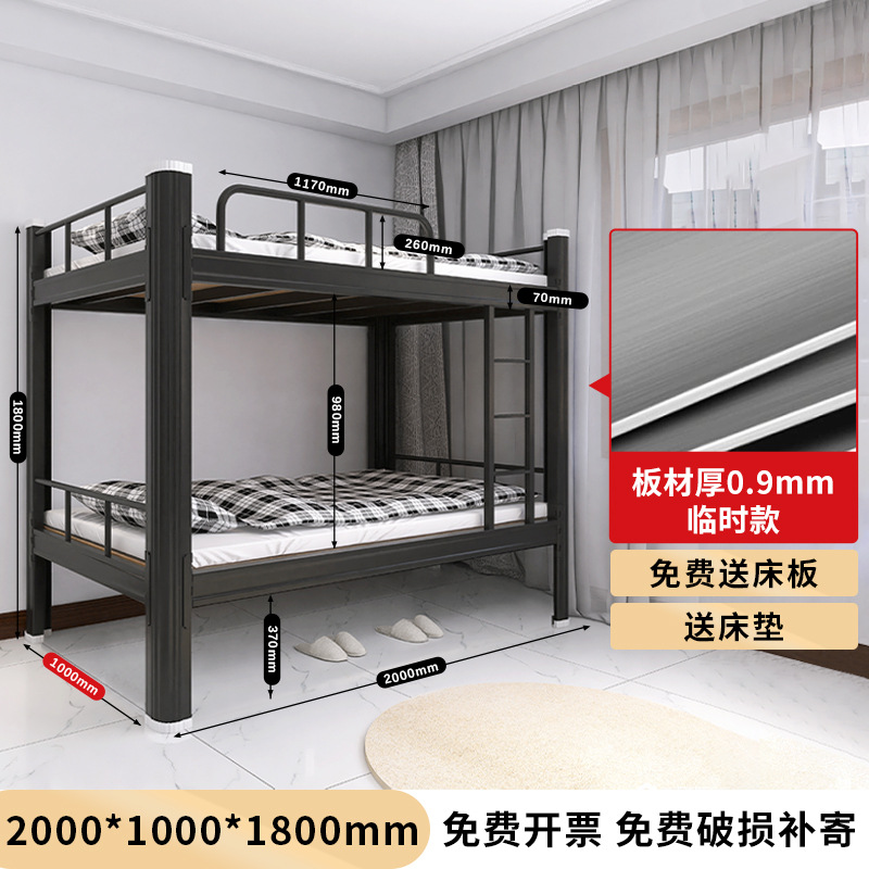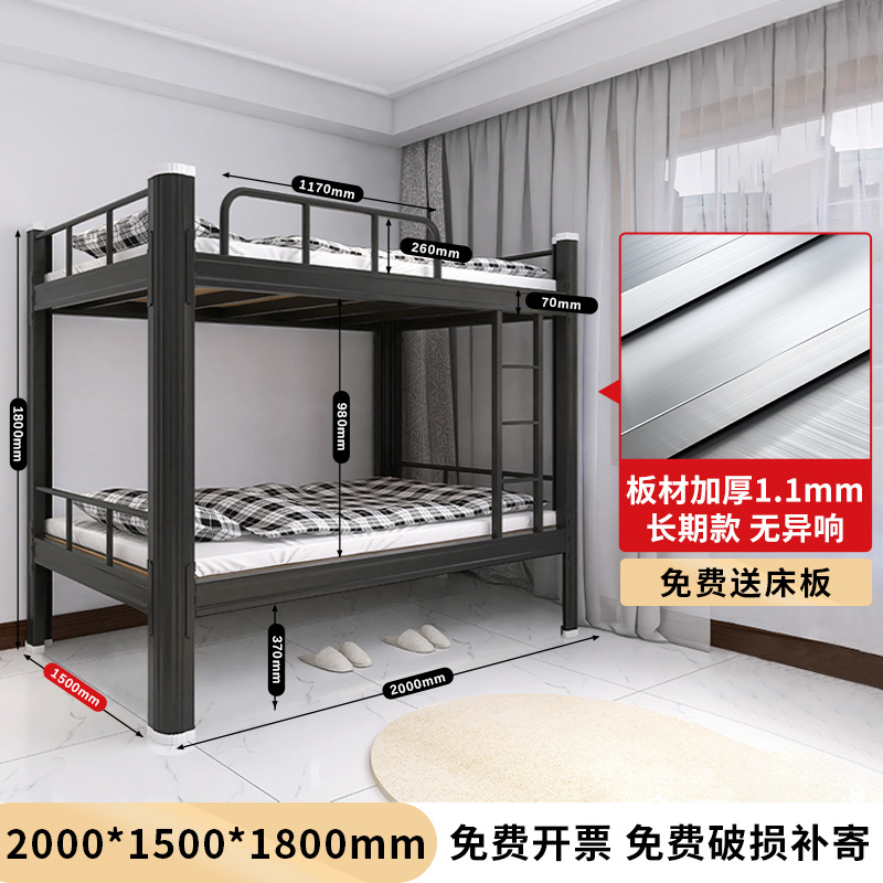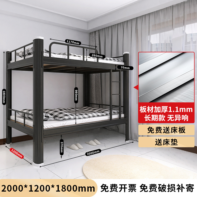 두꺼운 이층 이층 침대 철제 프레임 철제 침대 학생 직원 기숙사 더블 아파트 침실 2 층 높고 낮은 침대