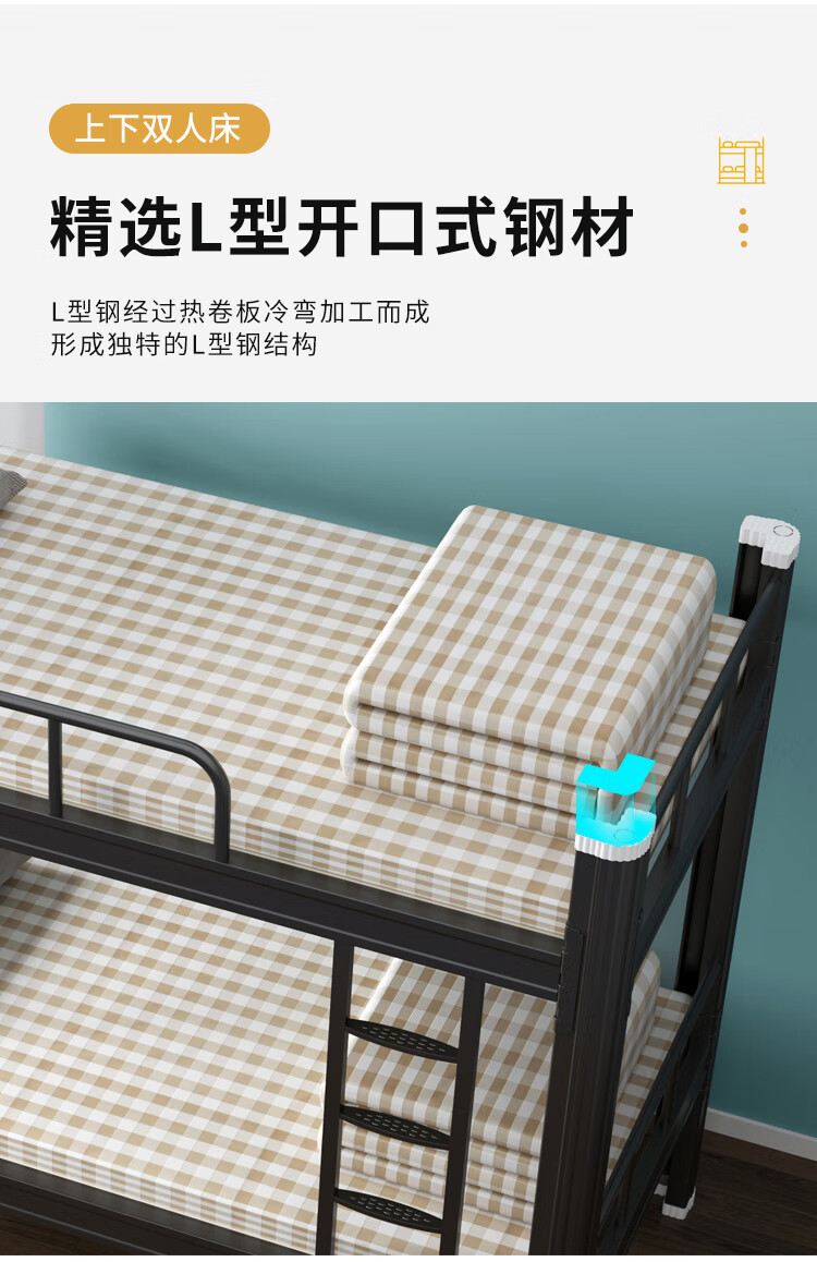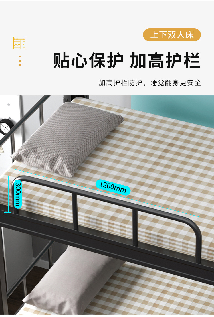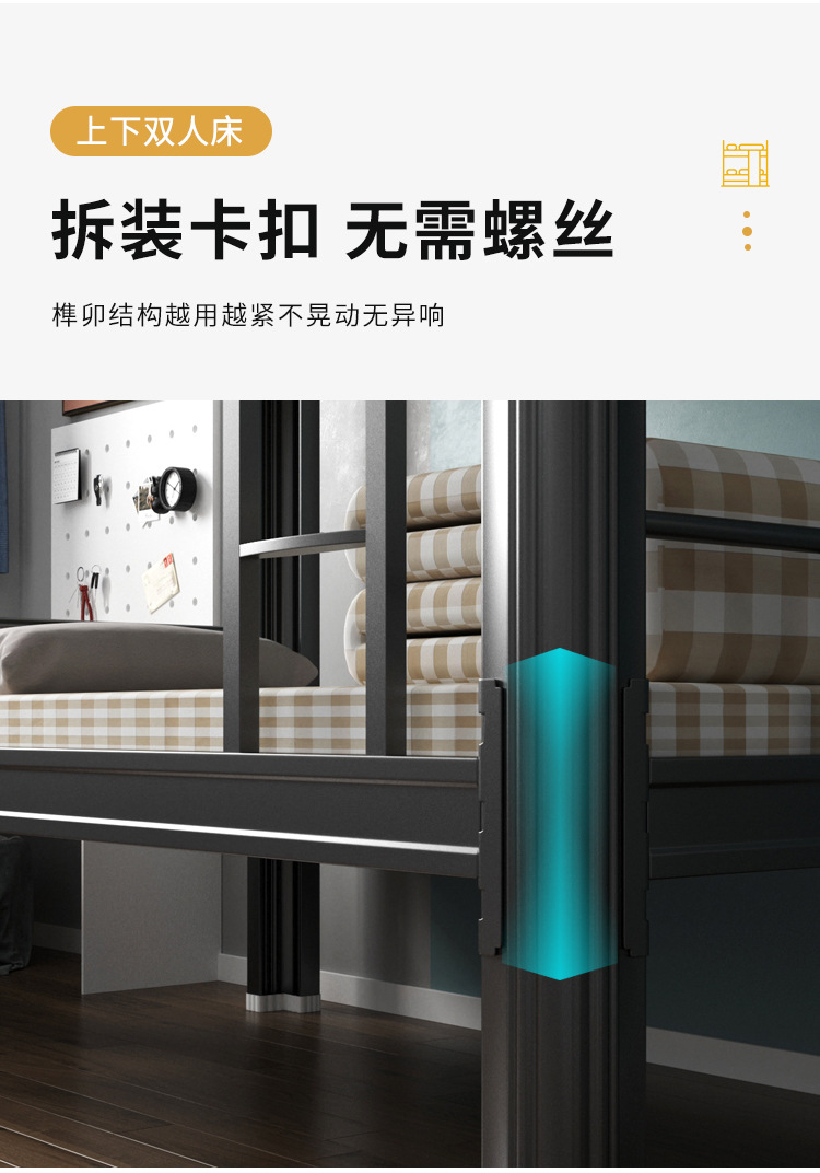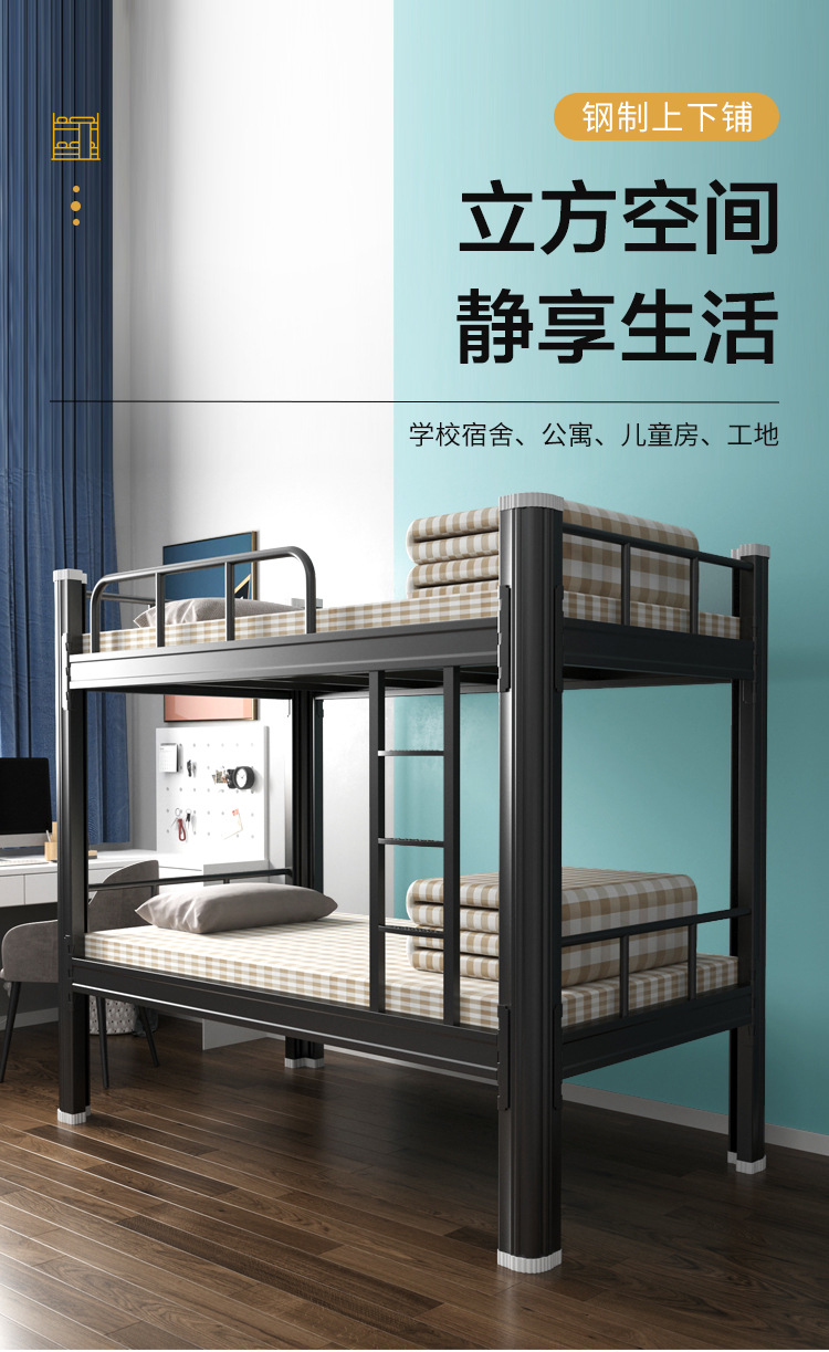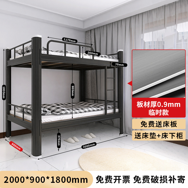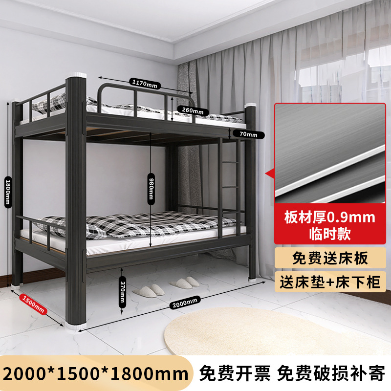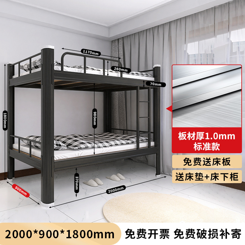 두꺼운 이층 이층 침대 철제 프레임 철제 침대 학생 직원 기숙사 더블 아파트 침실 2 층 높고 낮은 침대