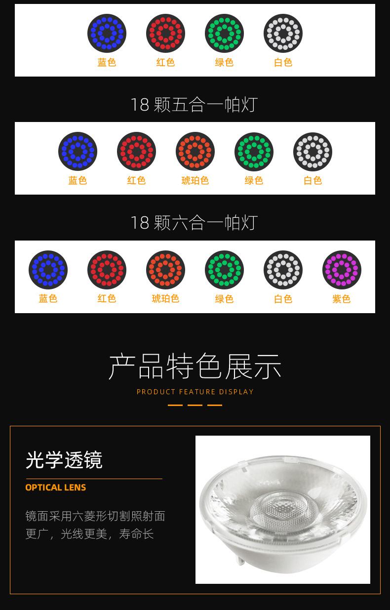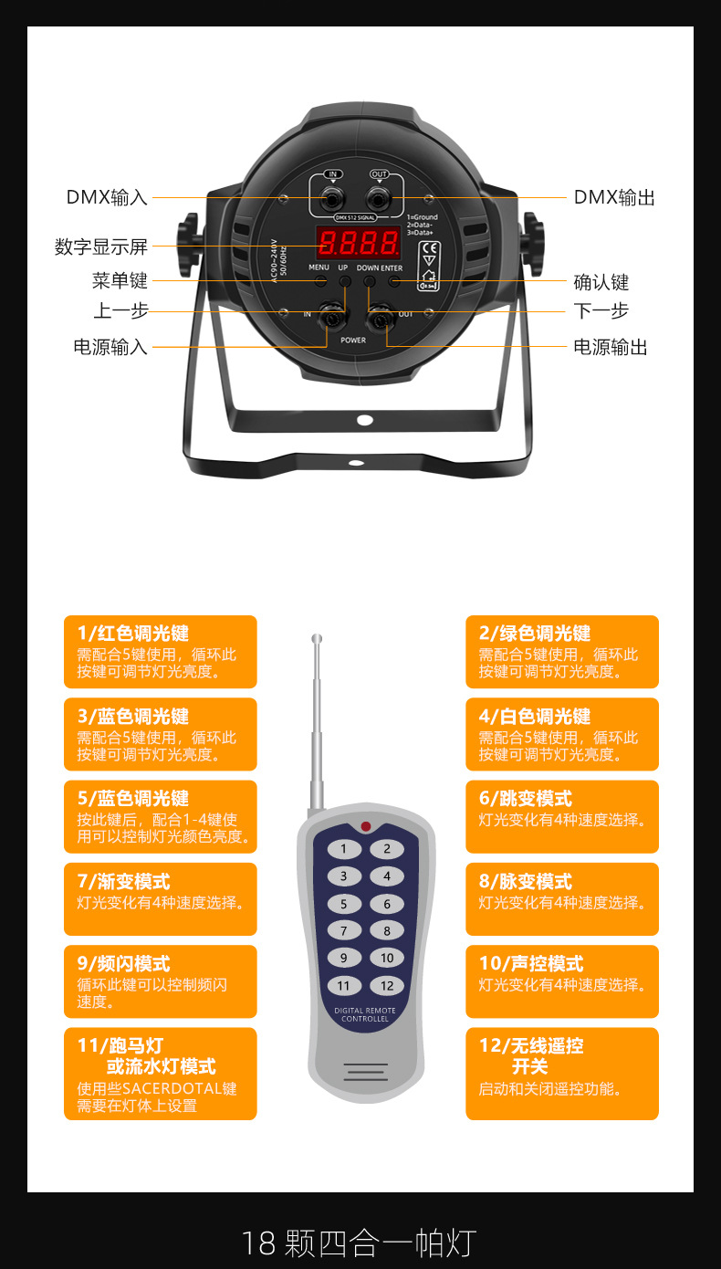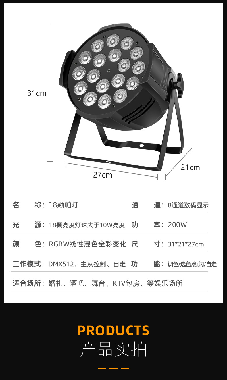 고휘도 18개 6-in-1 파 조명 다채로운 풀 컬러 무대 조명 분위기 표면 조명 LED 염색 파 스포트라이트