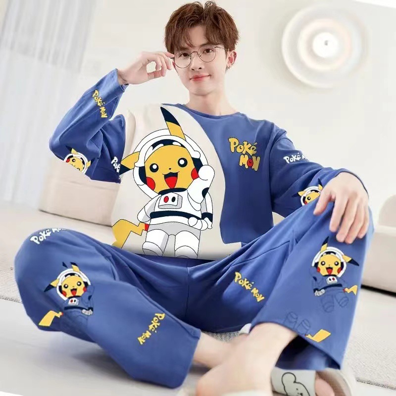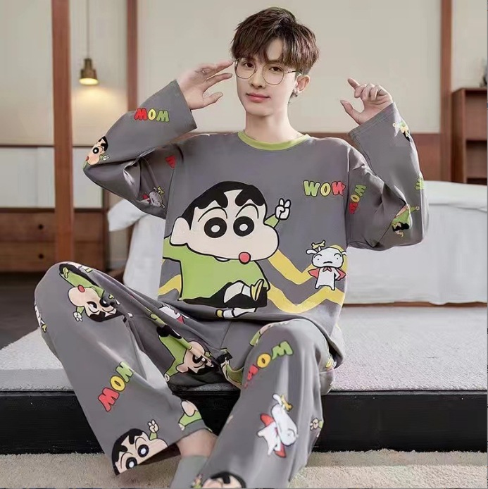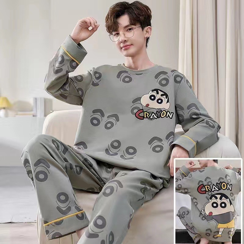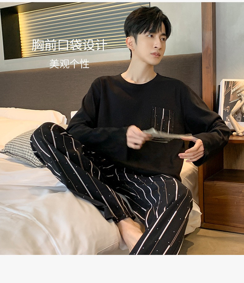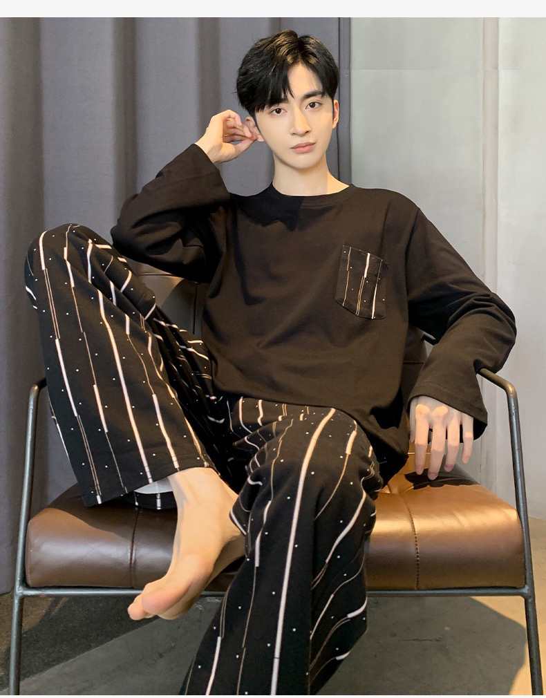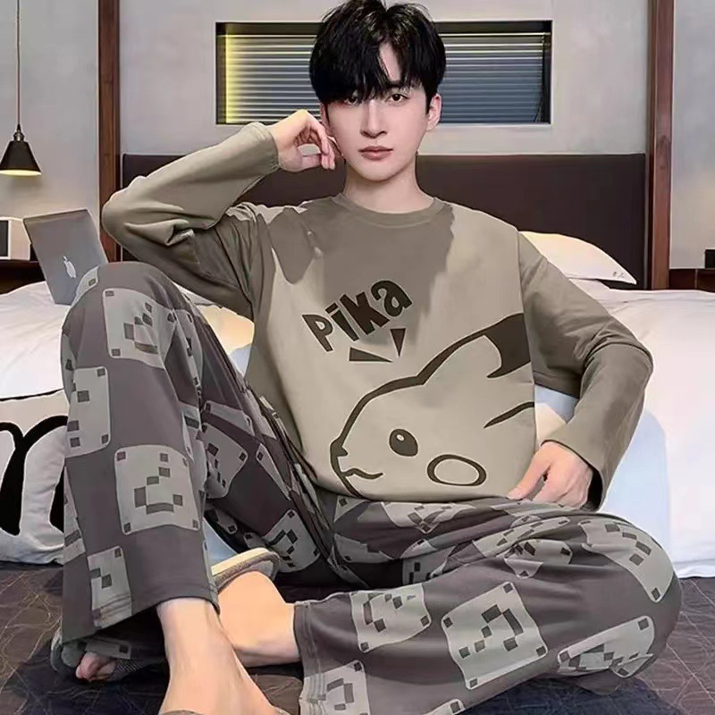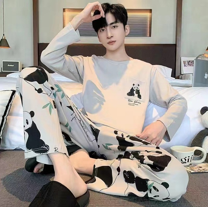 남자 잠옷 봄과 가을 긴 소매 2024 새로운 캐주얼 스포츠 플러스 사이즈 느슨한 외부 착용 여름 홈 옷스토어 가기