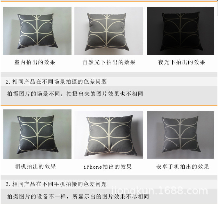 色差:关于色差,图片均为实物实拍,因个人显示器不同,可能会存在略微色差。每款抱枕细节图里会详细说明,请留意。