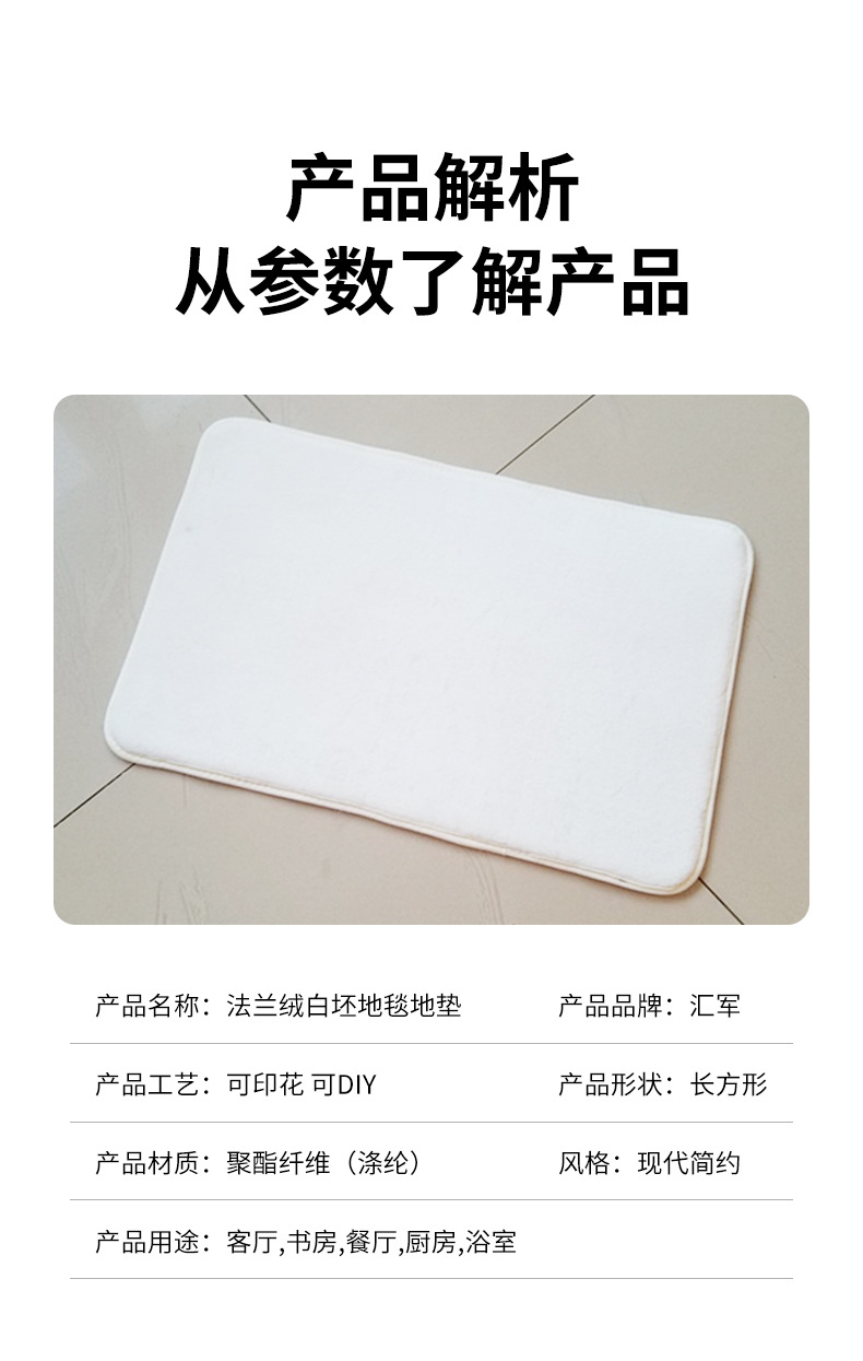 크로스-국경 플란넬 화이트 블랭크 열 전달 인쇄 카펫 베이 창 담요 바닥 매트 화이트 도어 매트 욕실 풋 매트 인쇄 그림
