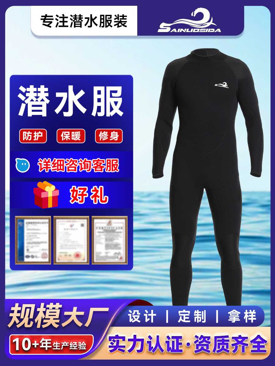 새 스타일 원피스 다이빙 세트 두껍게 긴 소매 냉방한 따뜻한 해파리 세트 긴팔 수영 세트 겨울 젖은 의류 낚시 및 사냥 세트스토어 가기