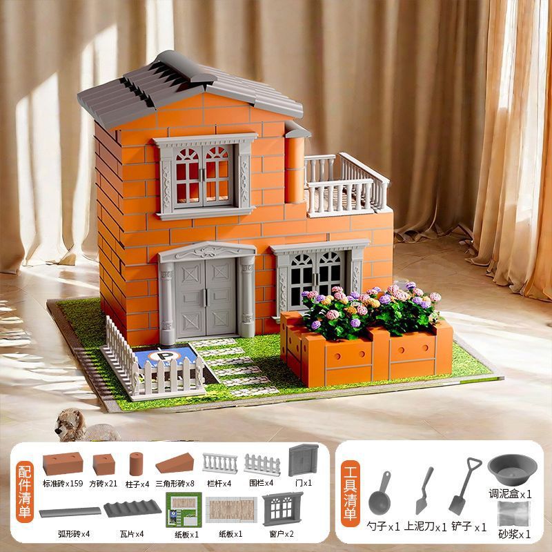 수제 DIY 메이슨 벽돌 건물 집 어린이 시뮬레이션 건물 시멘트 건물 미니 하우스 장난감