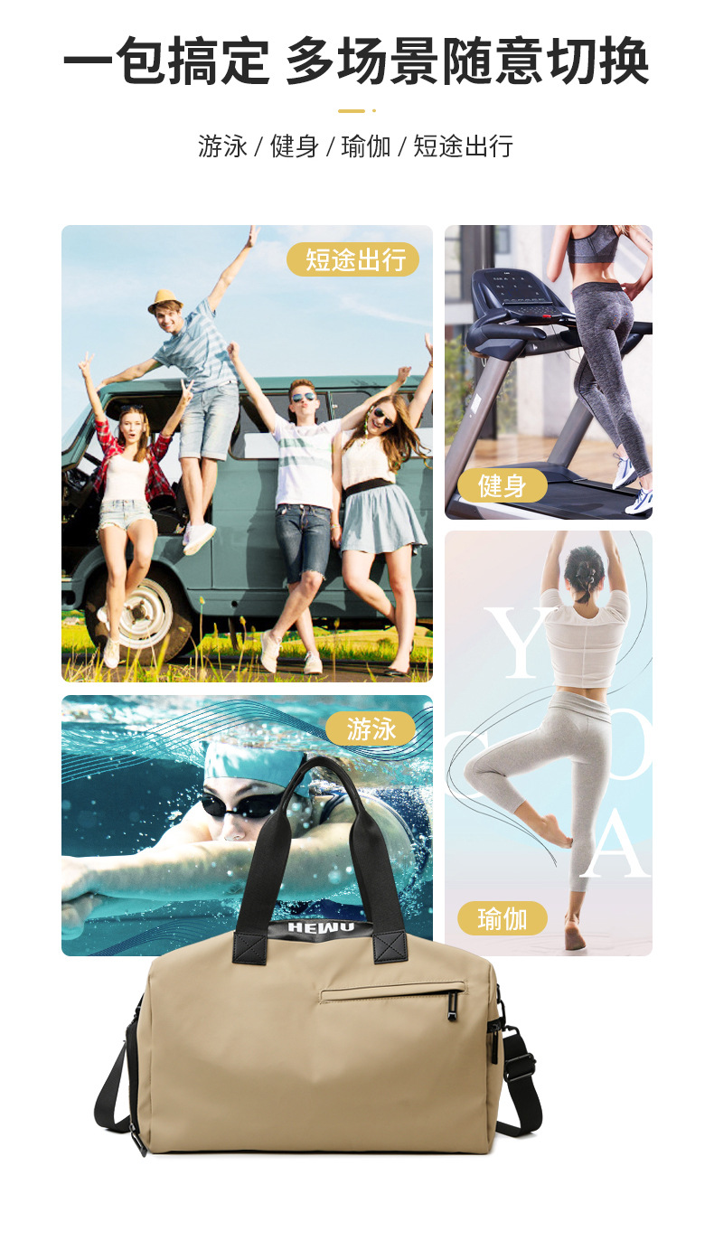 수영 피트니스 가방 건식 및 습식 분리 신발 칸 훈련 스포츠 가방 단거리 휴대용 여행 가방 대용량 및 고급 감각스토어 가기