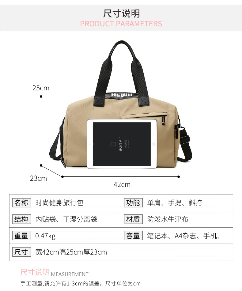 수영 피트니스 가방 건식 및 습식 분리 신발 칸 훈련 스포츠 가방 단거리 휴대용 여행 가방 대용량 및 고급 감각