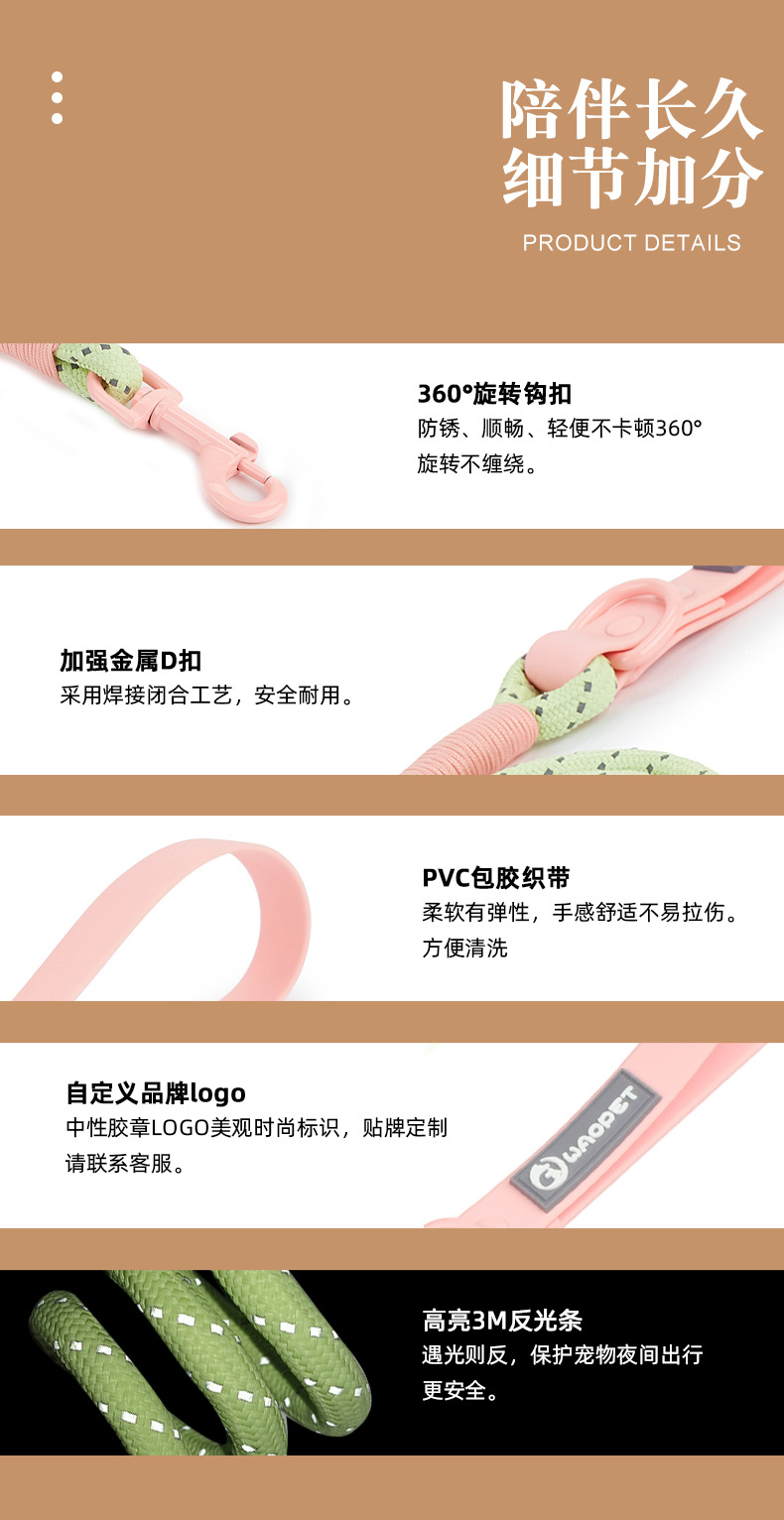 국경 새로운 단색 패션 개 가죽 끈 야외 개 걷는 로프 PVC 애완 동물 가죽 끈 재고 도매