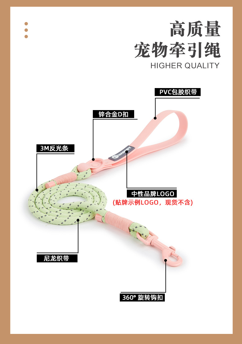 국경 새로운 단색 패션 개 가죽 끈 야외 개 걷는 로프 PVC 애완 동물 가죽 끈 재고 도매스토어 가기