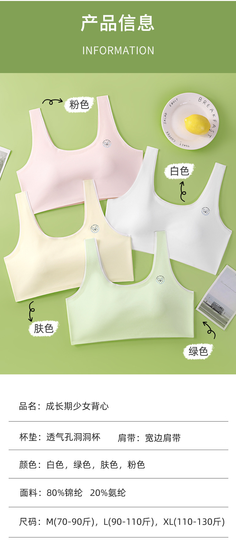 발달 여아 속옷 원활한 중학생 2 ~ 3 단계 여아의 통기성 브래지어 사춘기 학생 작은 조끼스토어 가기